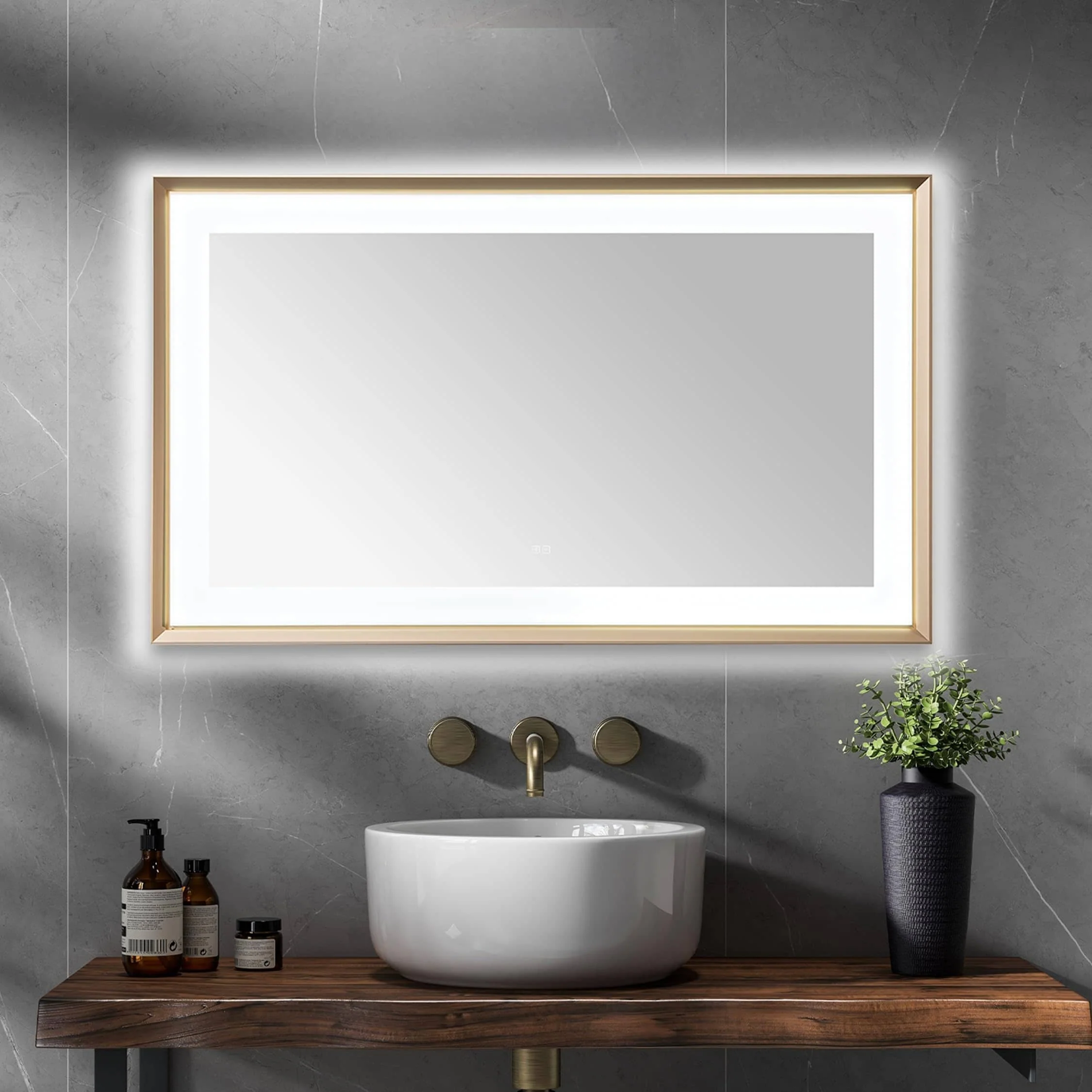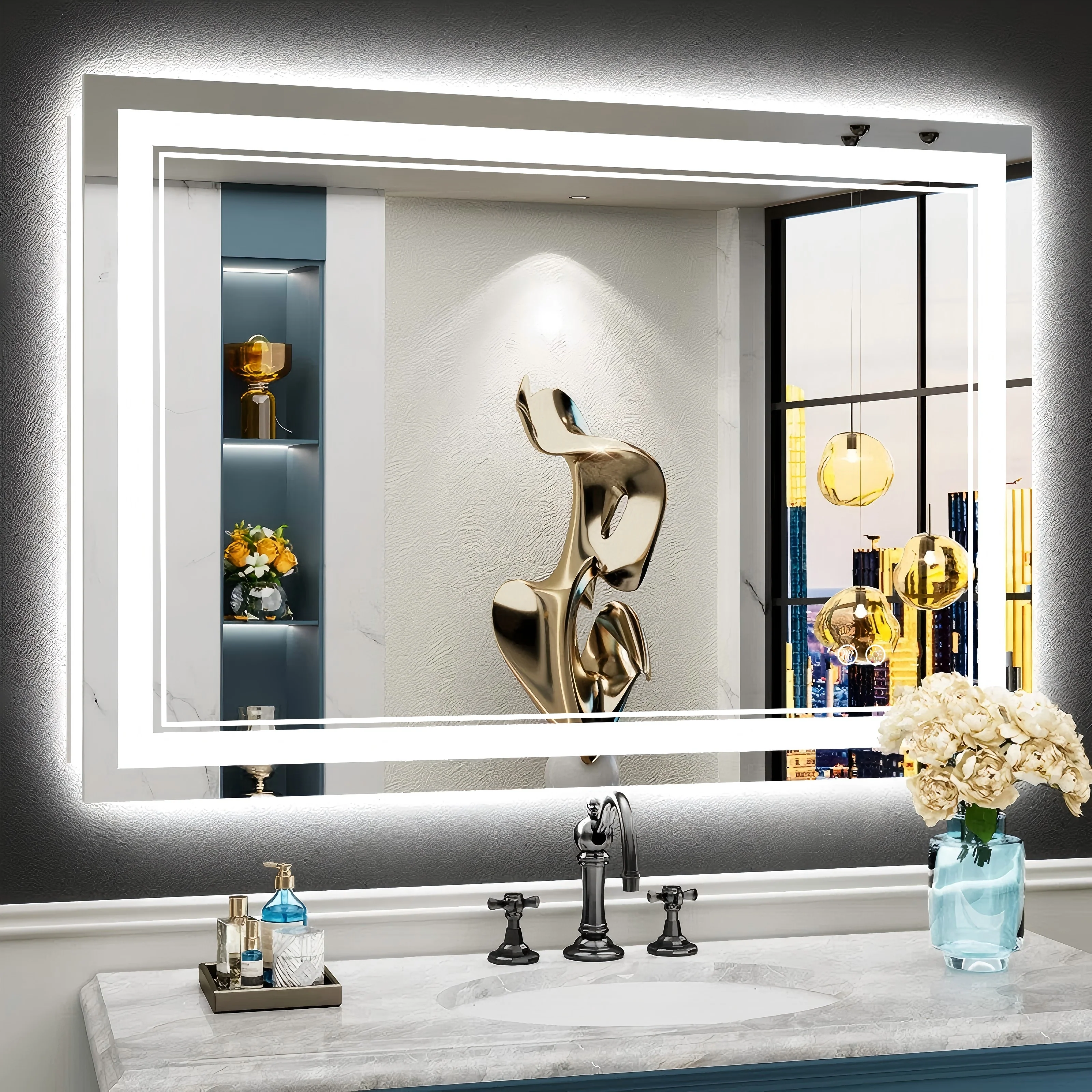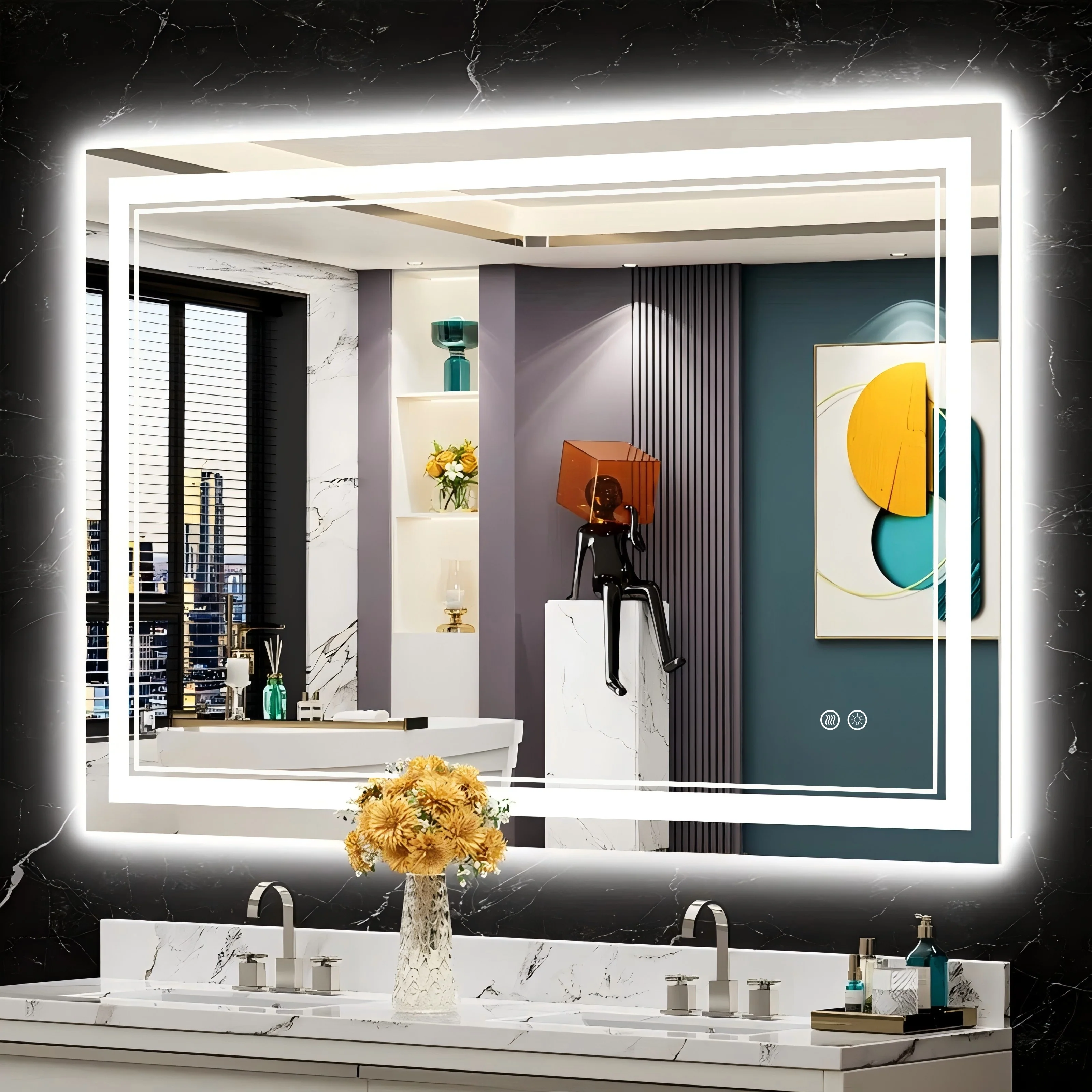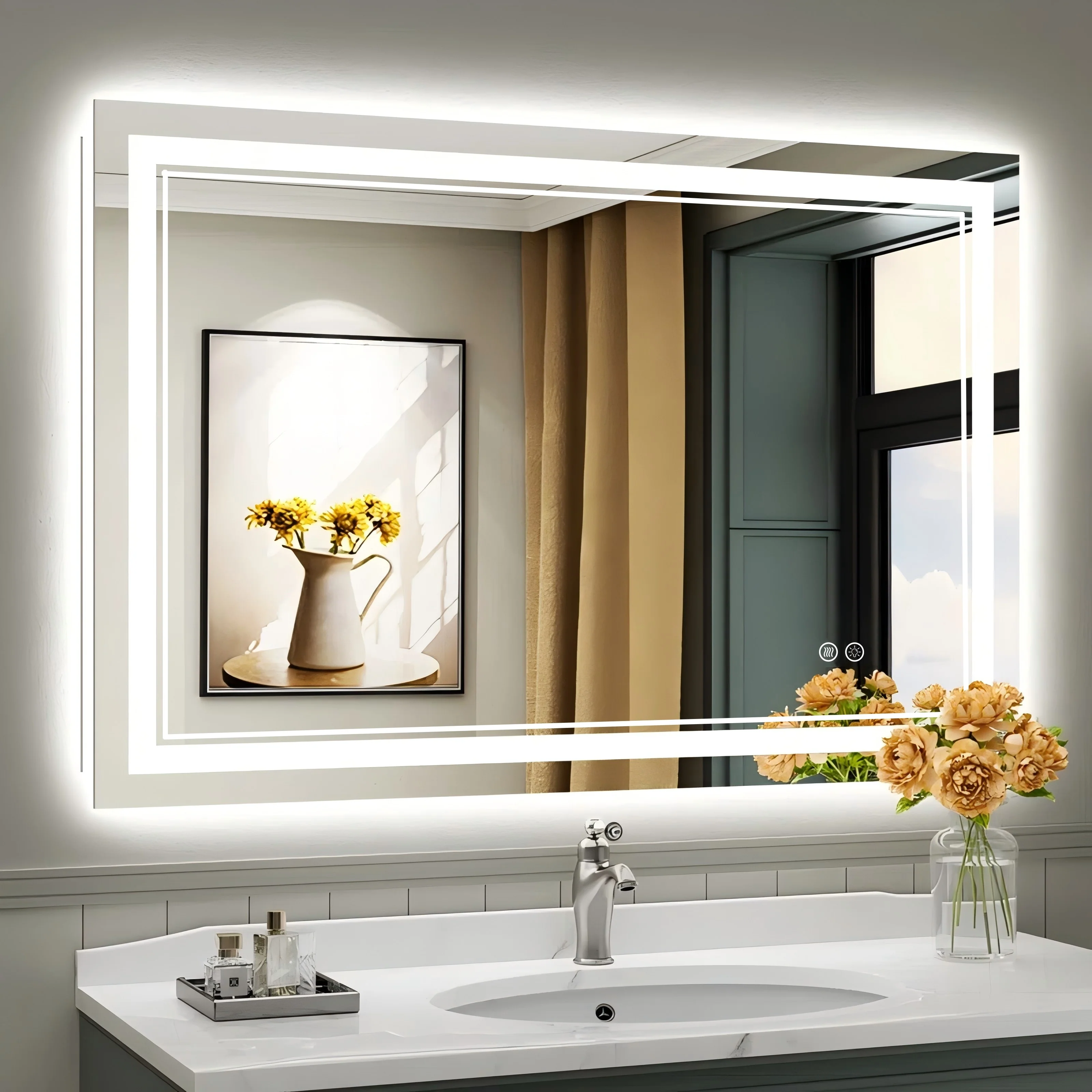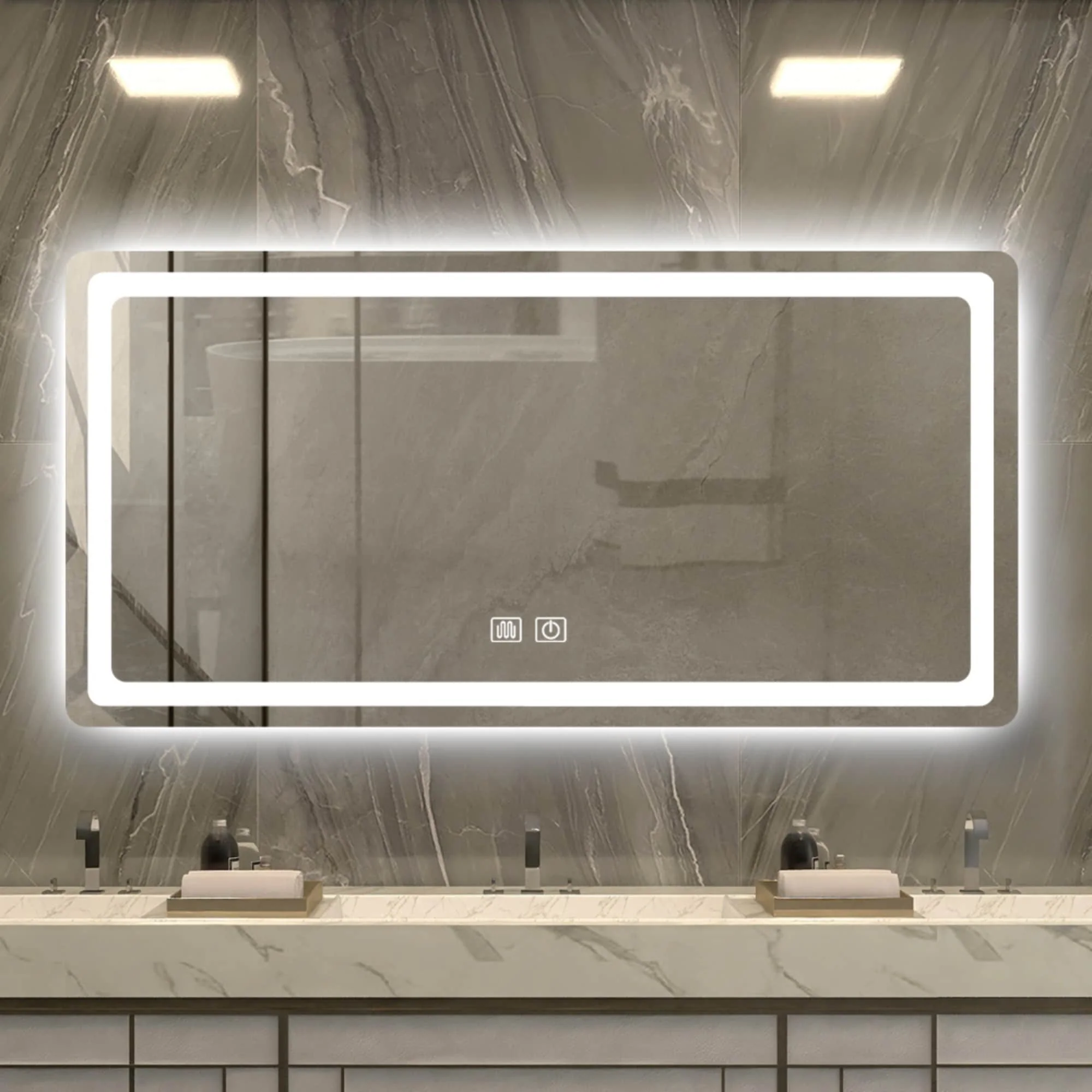LED Bathroom Mirror with Lights,Bathroom Wall with 3 Colors Dimmable - 60"L x 36"W