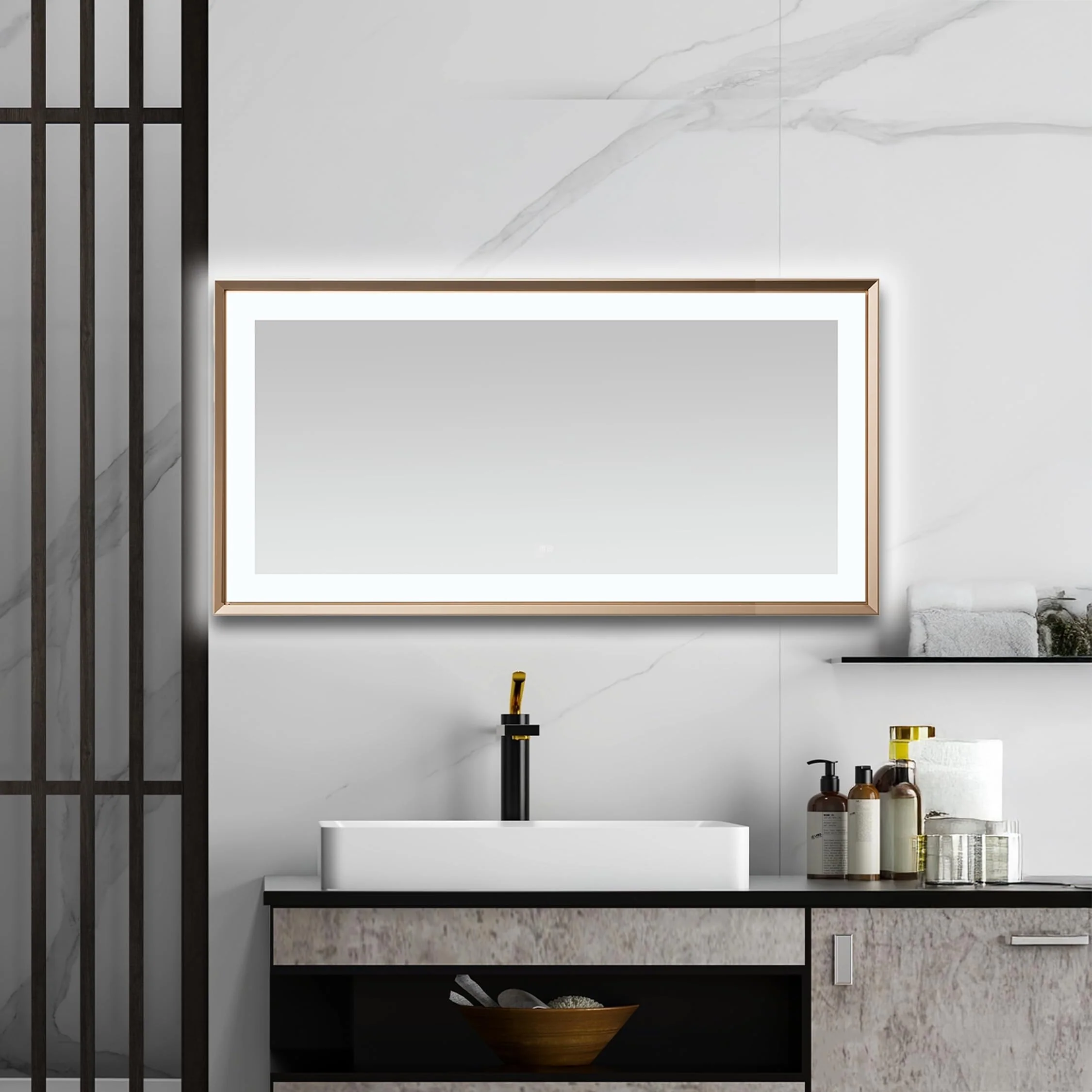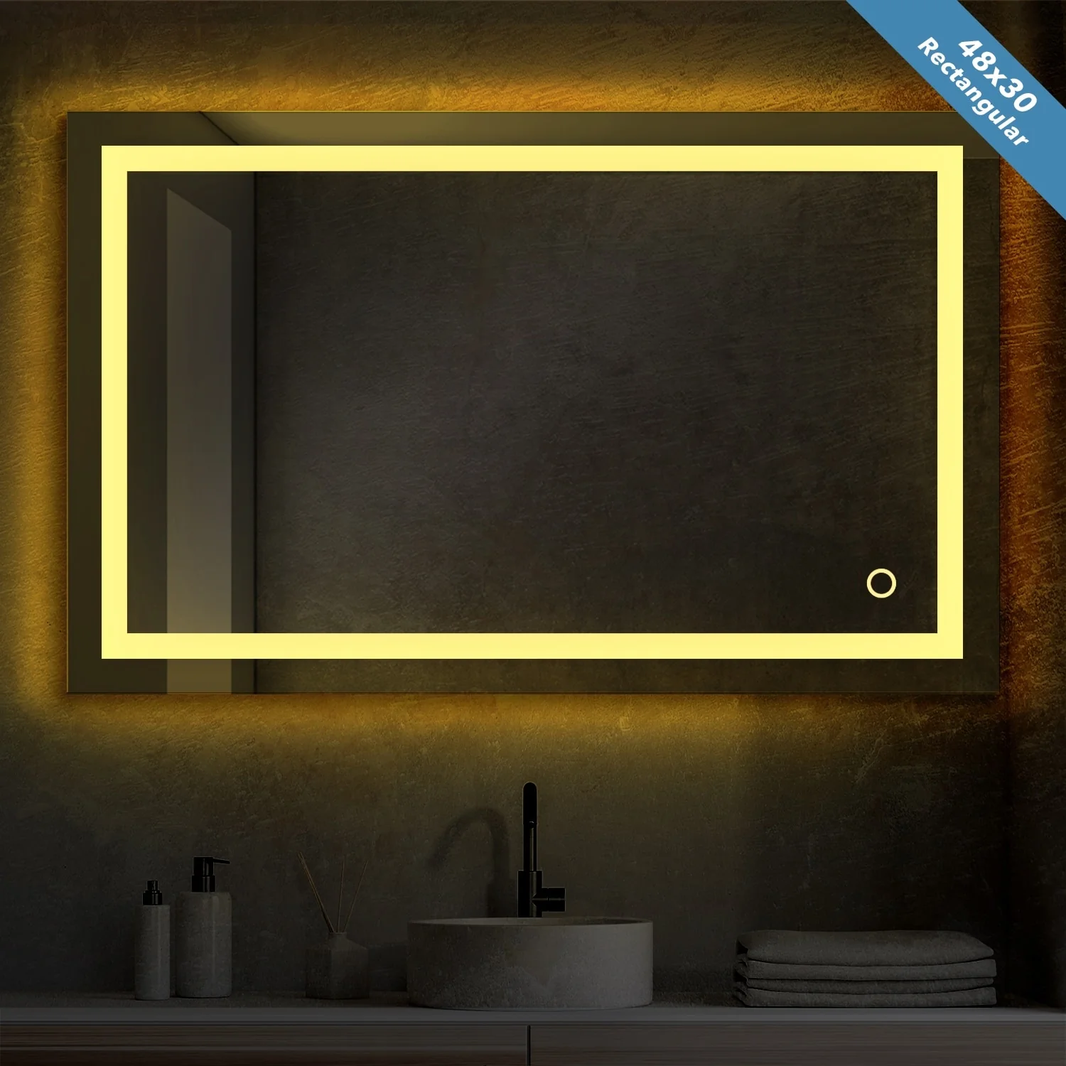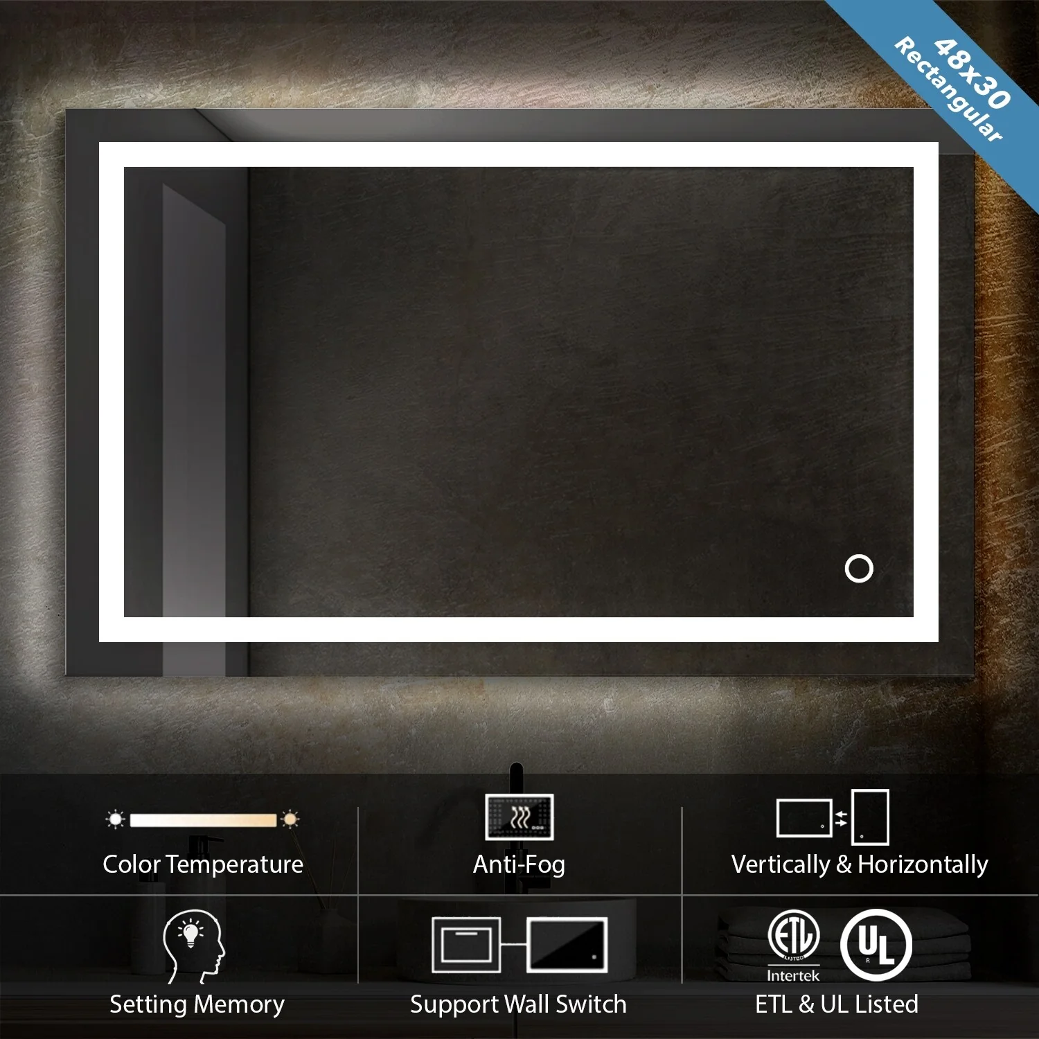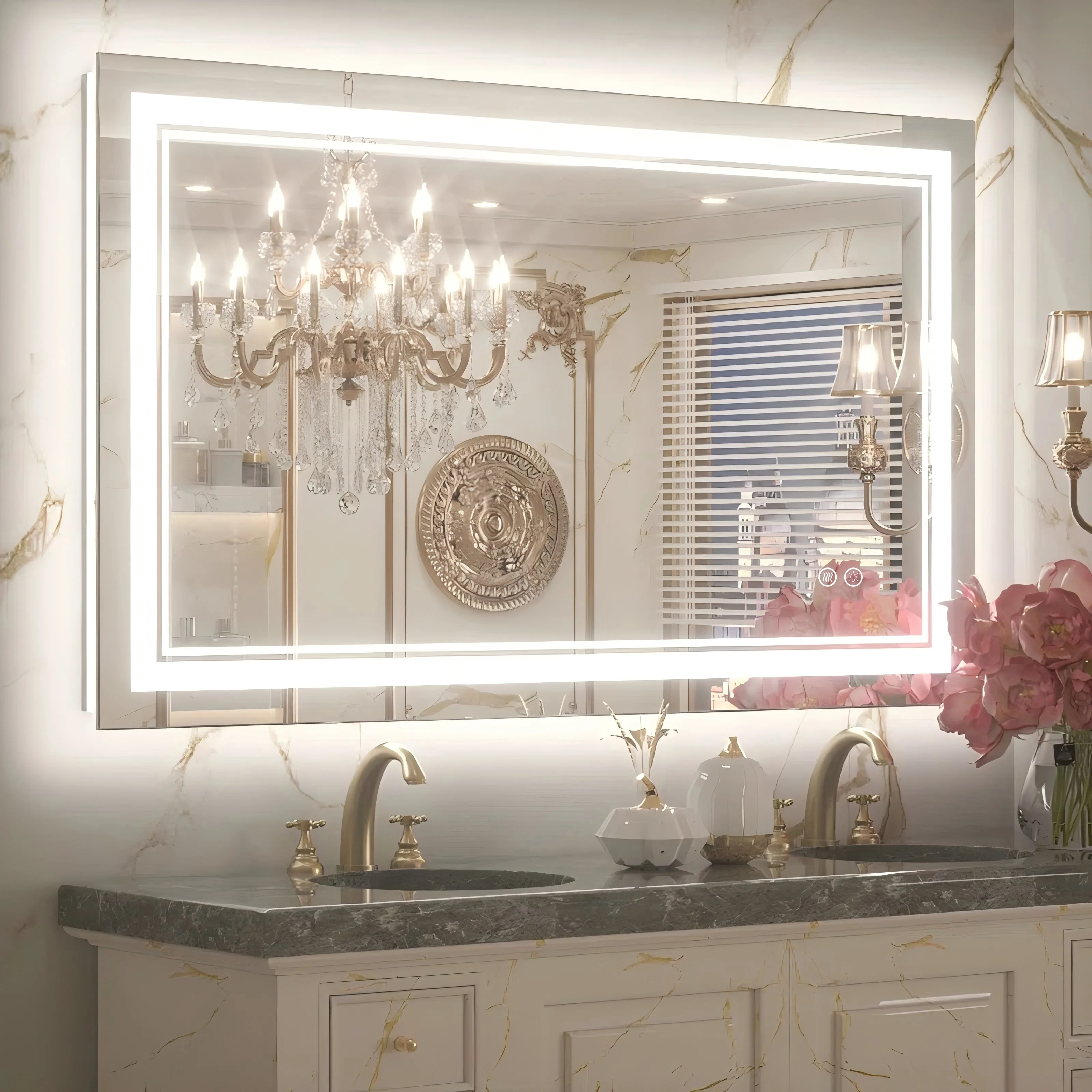 LED Bathroom Mirror with Lights,Bathroom Wall with 3 Colors Dimmable - 60"L x 36"W
