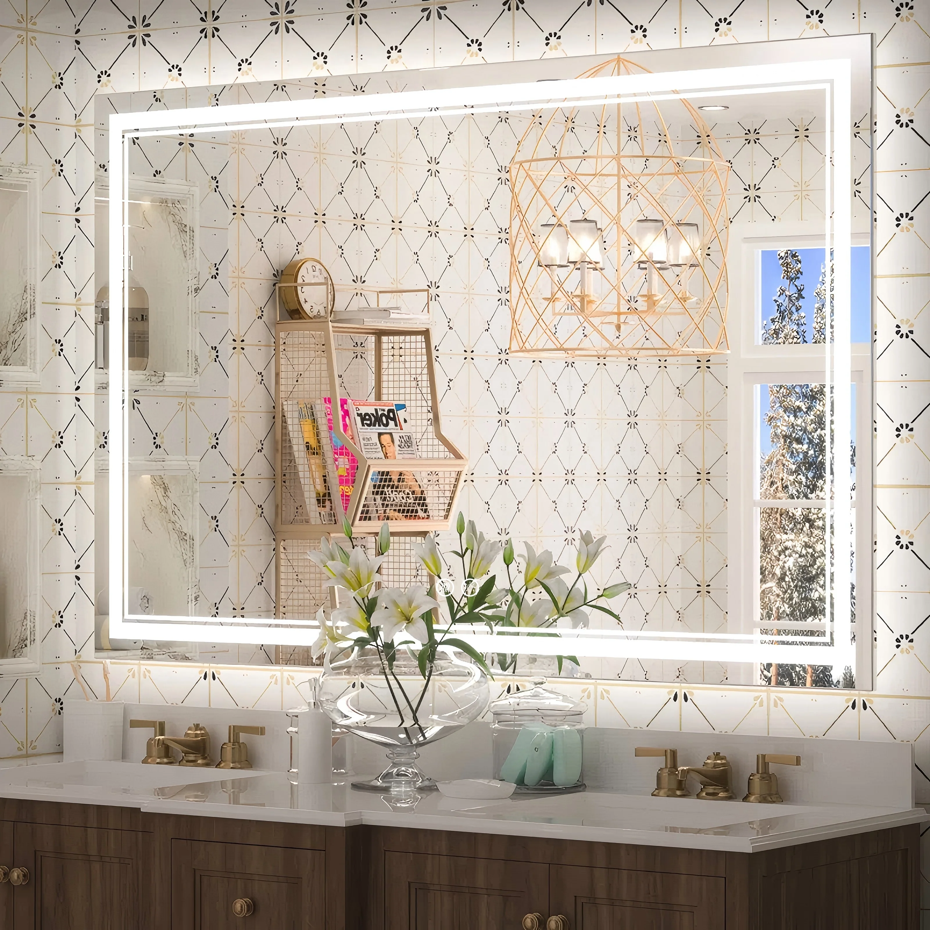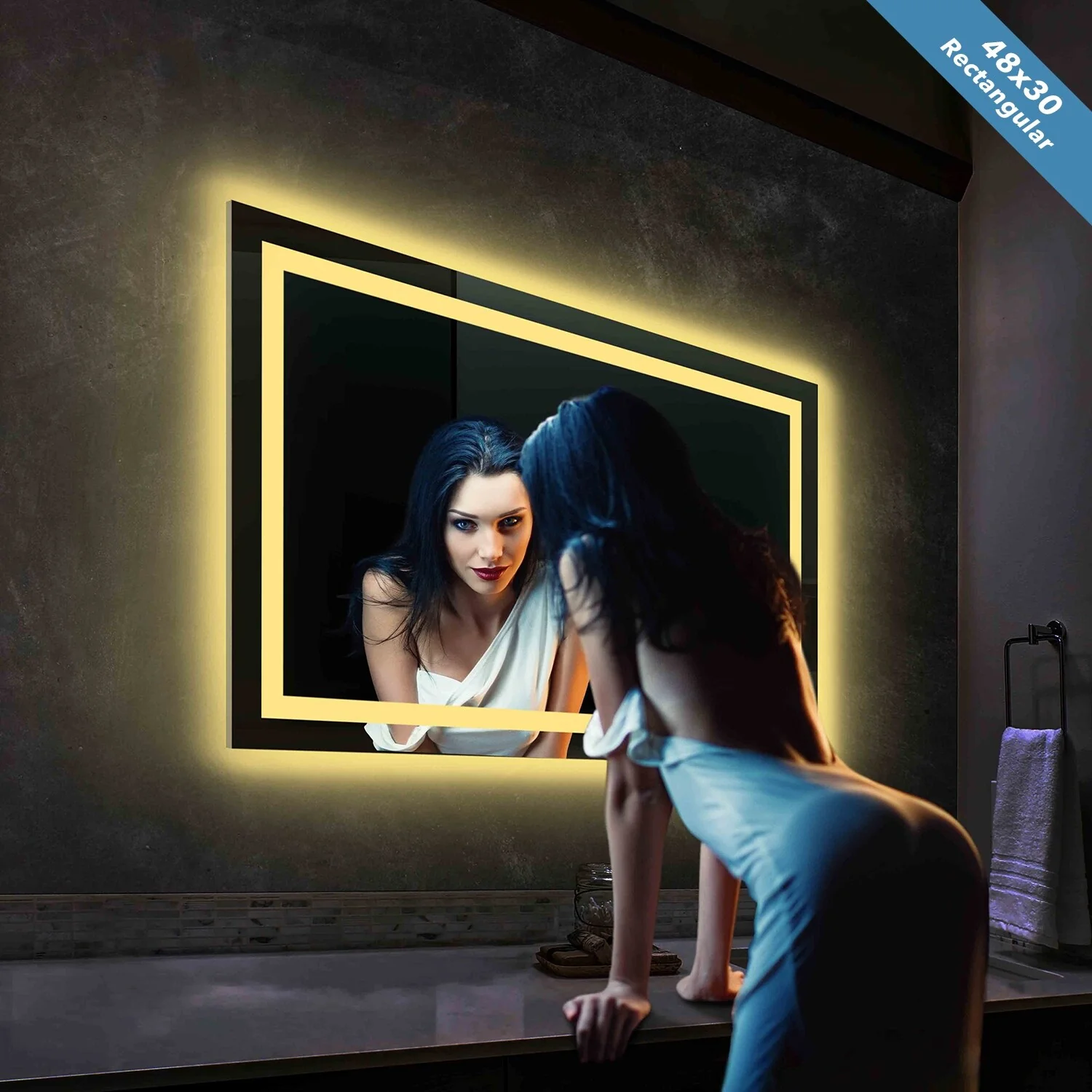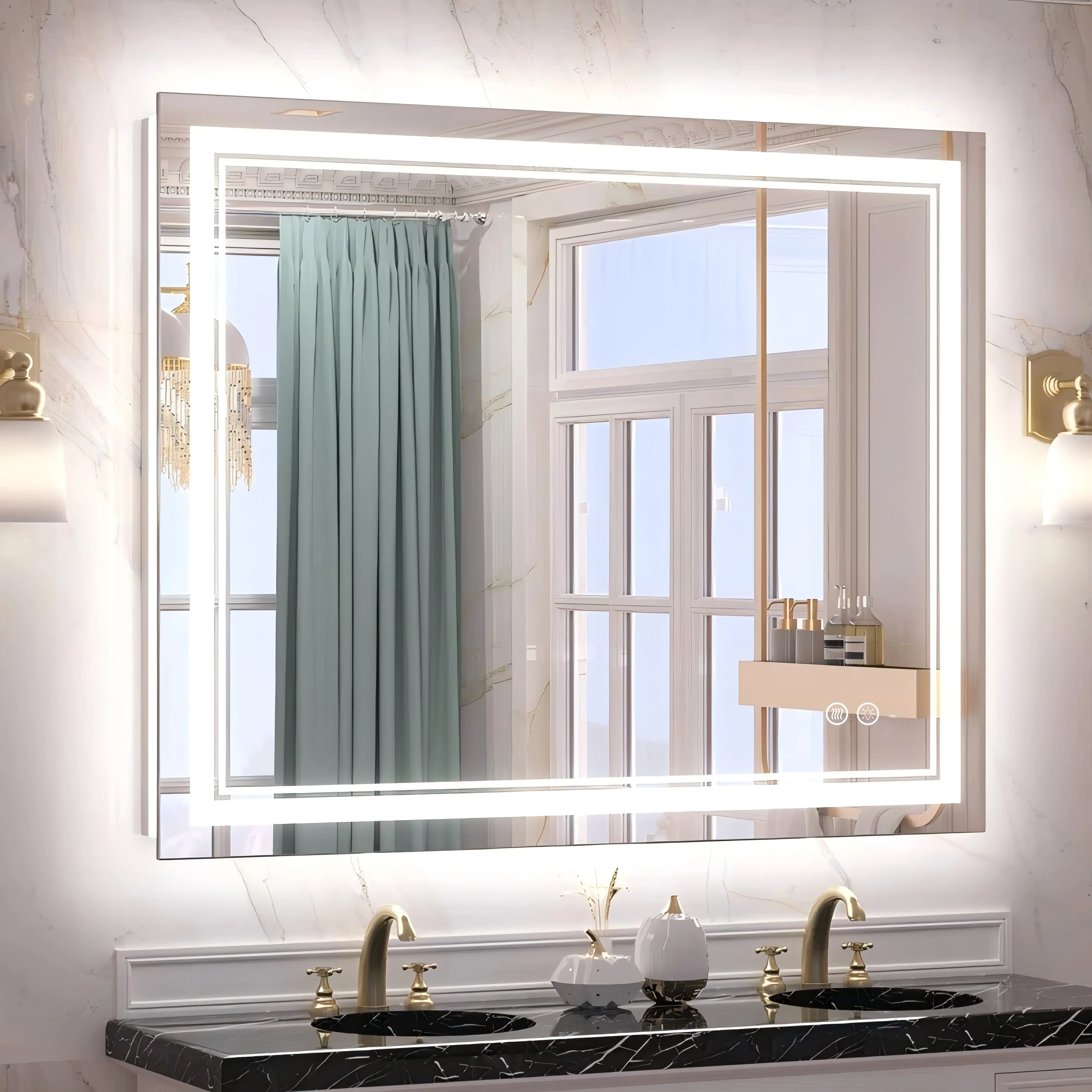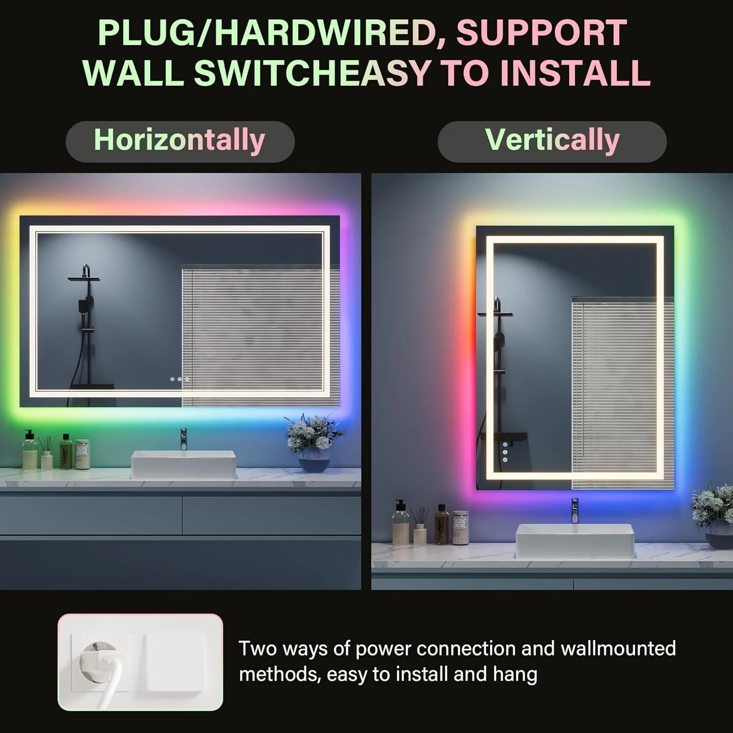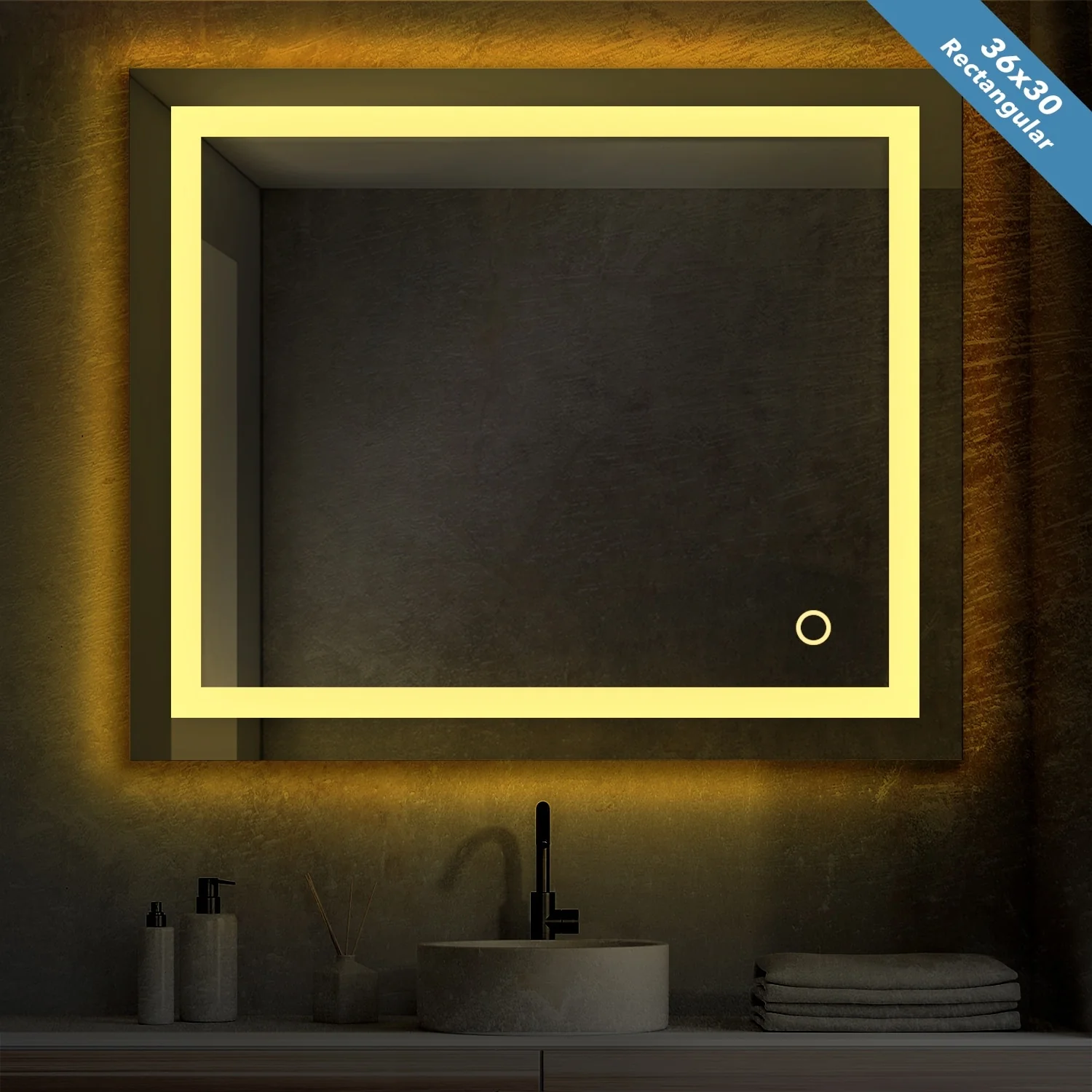 LED Bathroom Mirror with Lights,Bathroom Wall with 3 Colors Dimmable - 60"L x 36"W