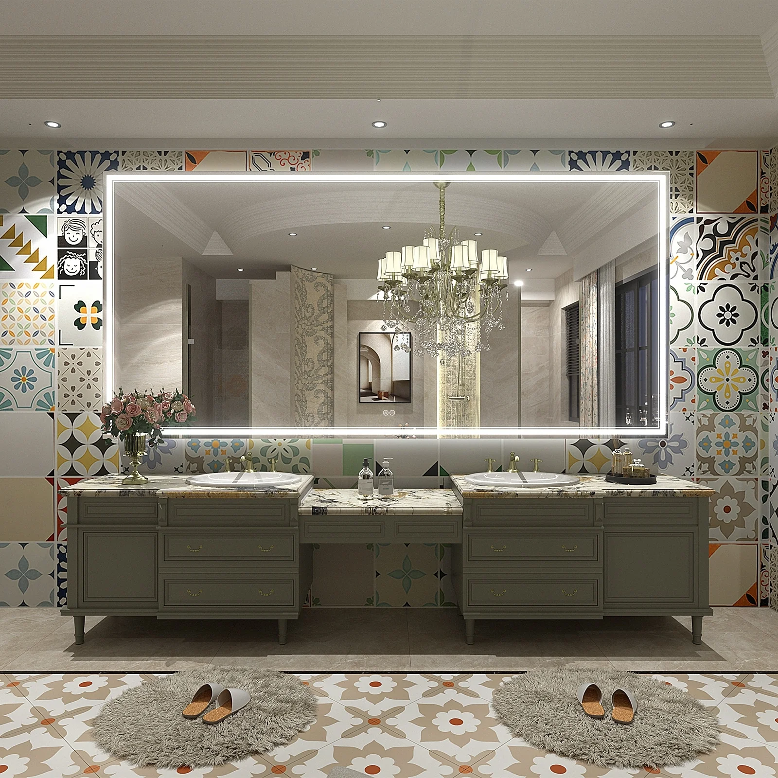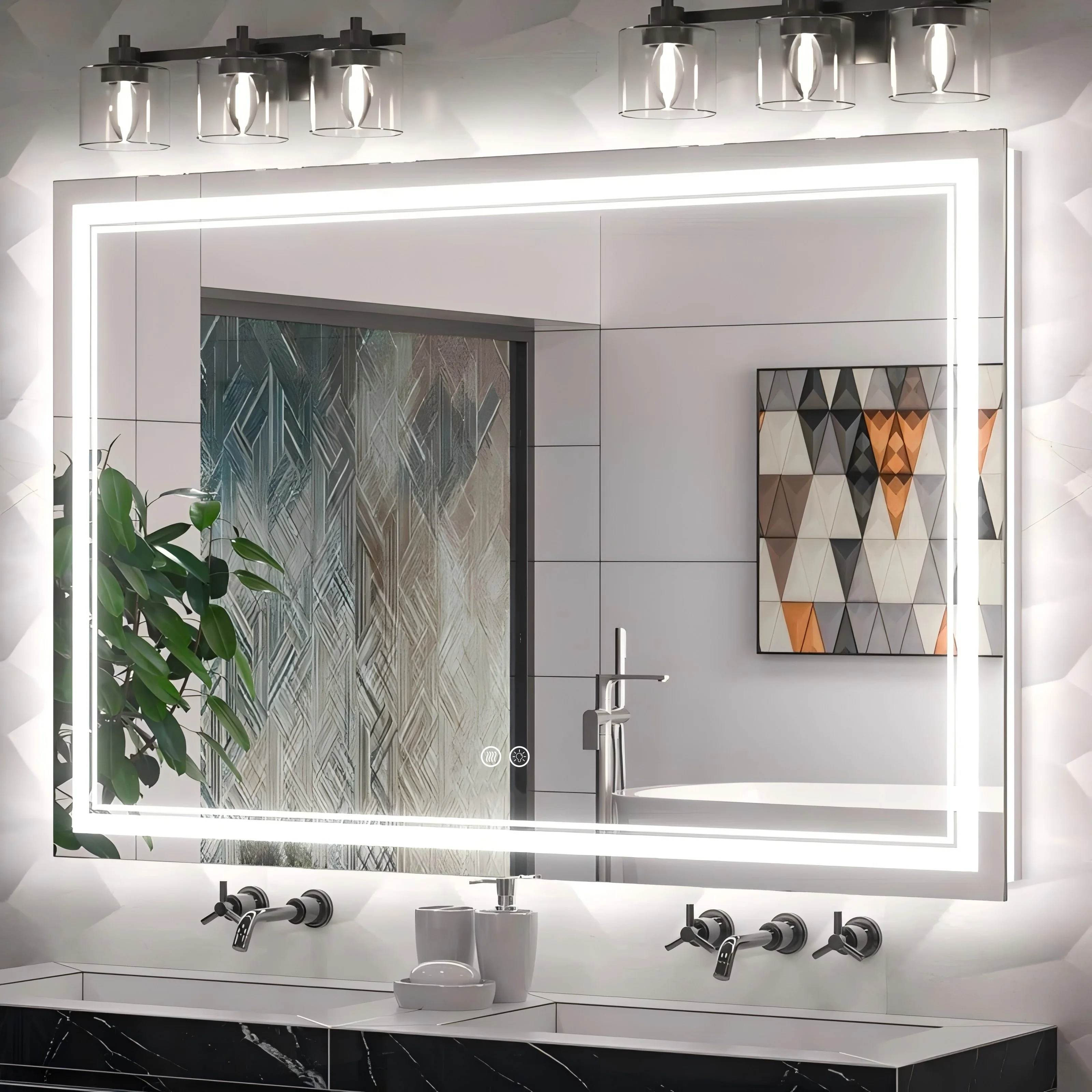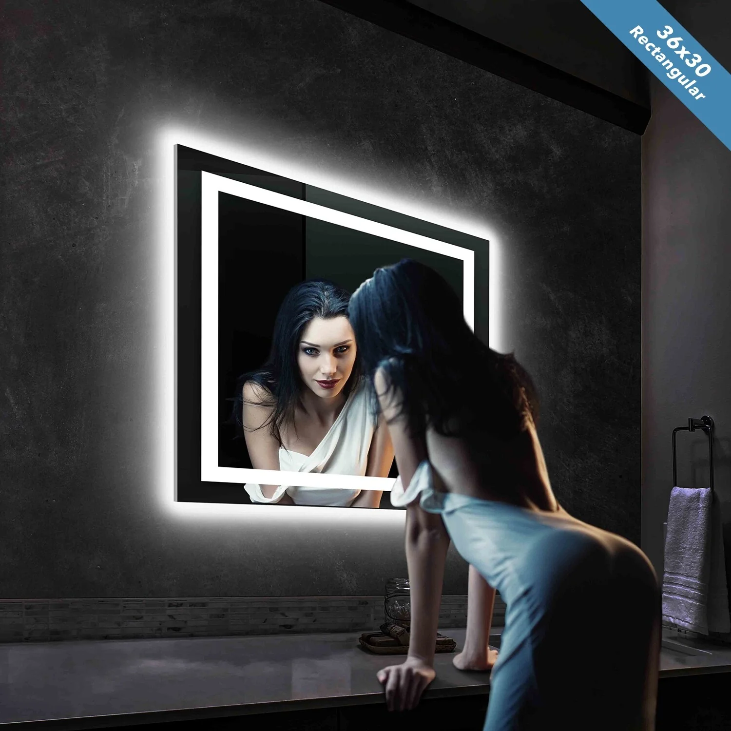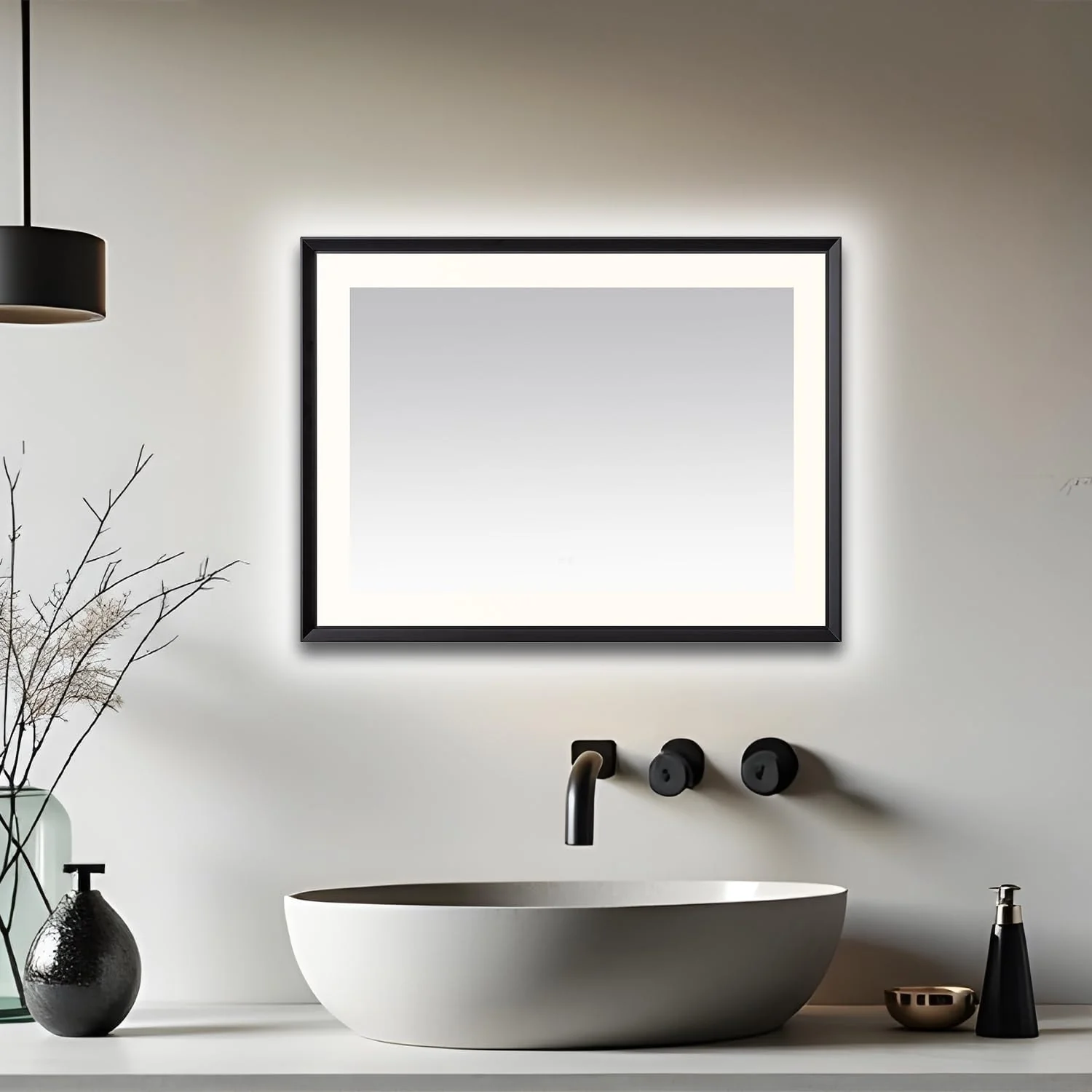 LED Bathroom Mirror with Lights,Bathroom Wall with 3 Colors Dimmable - 60"L x 36"W