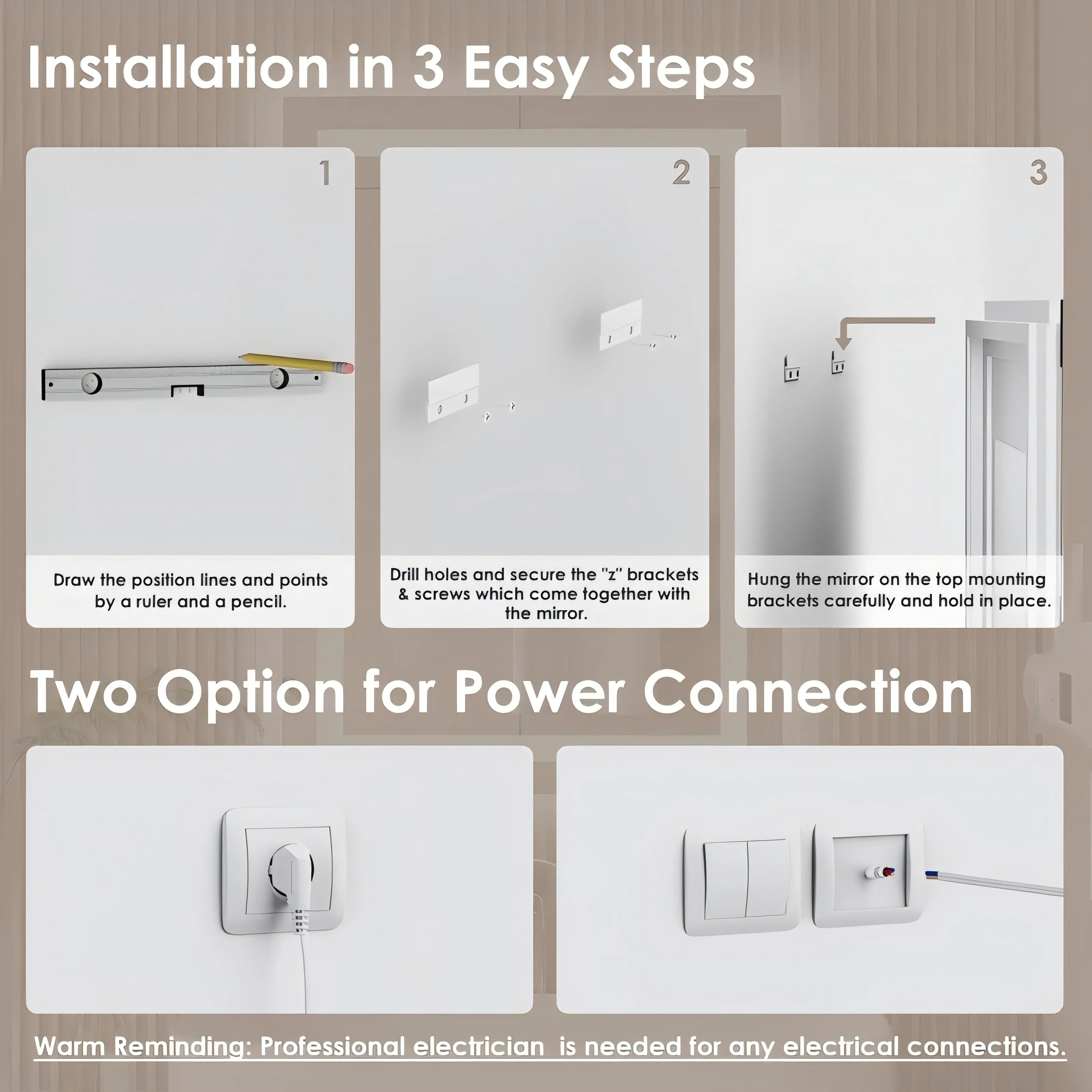 Modern 40"x24" LED Bathroom Vanity Mirror - Copper-Free Silver Mirror with Adjustable Brightness and Anti-Fog Function