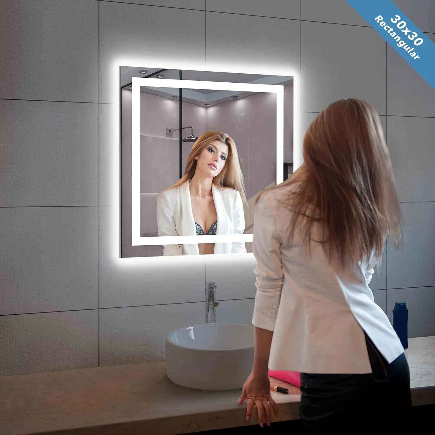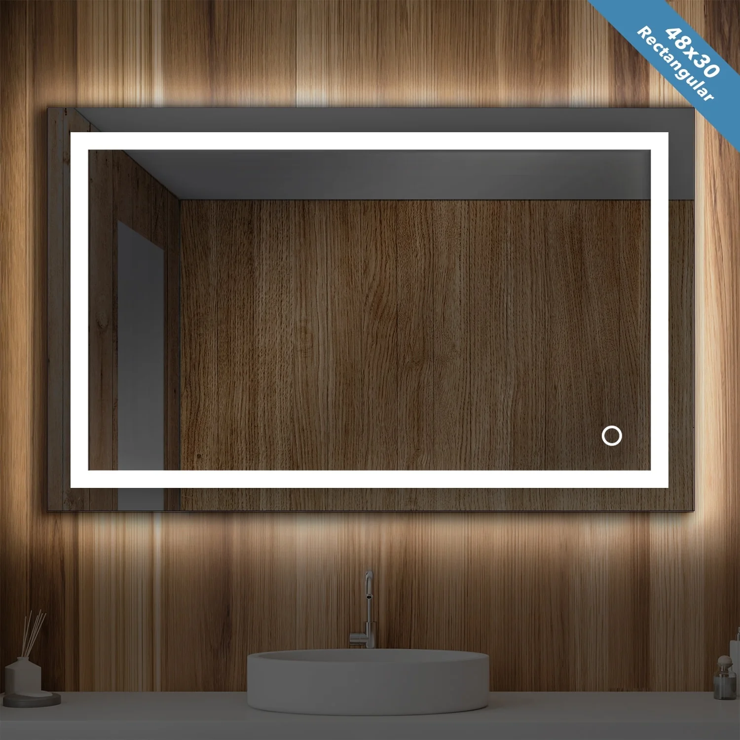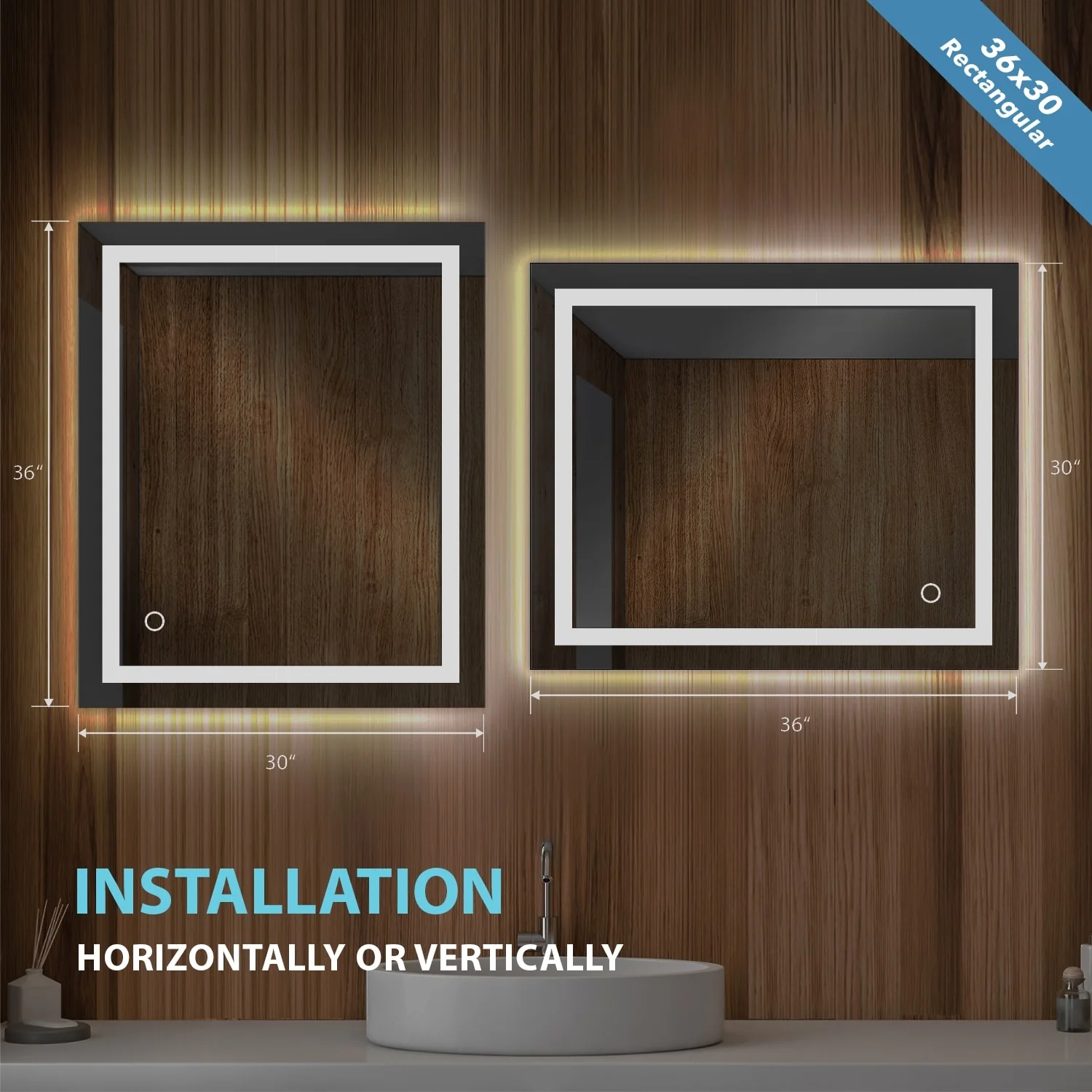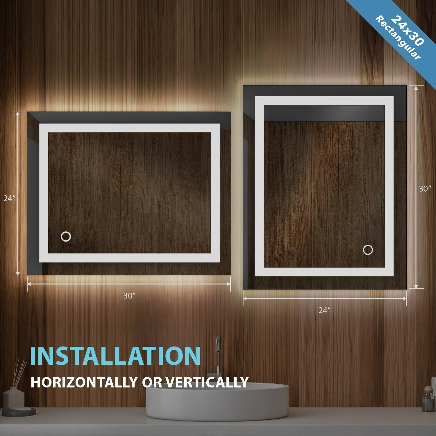 Apmir Frameless LED Anti-fog Bathroom Vanity Mirror in Tempered Glass