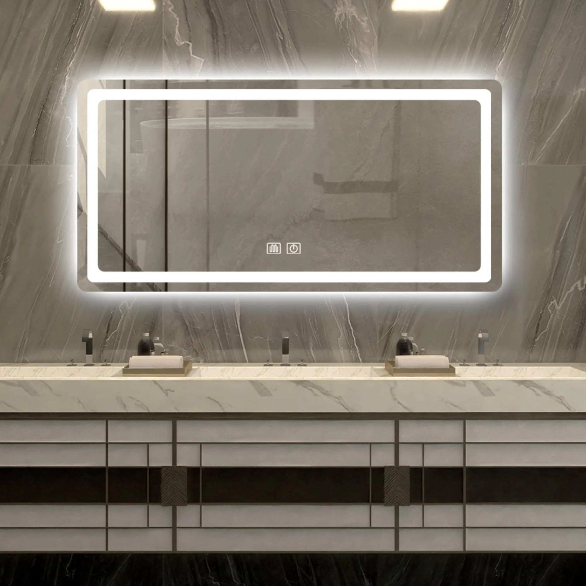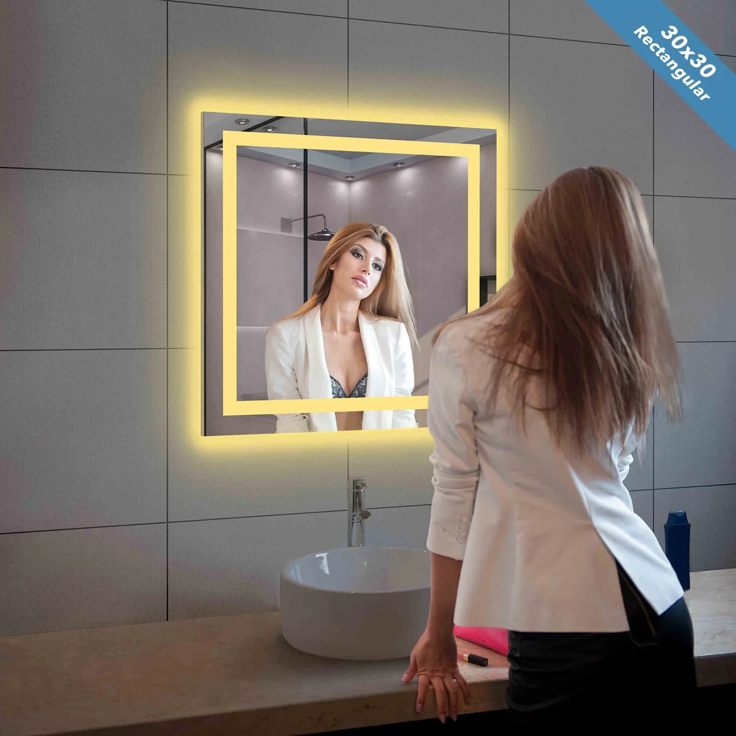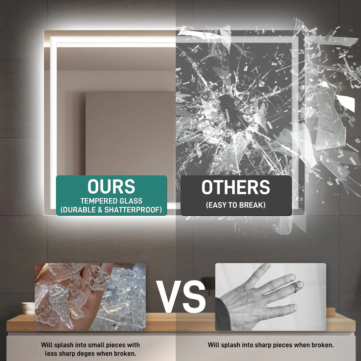 Apmir Frameless LED Anti-fog Bathroom Vanity Mirror in Tempered Glass