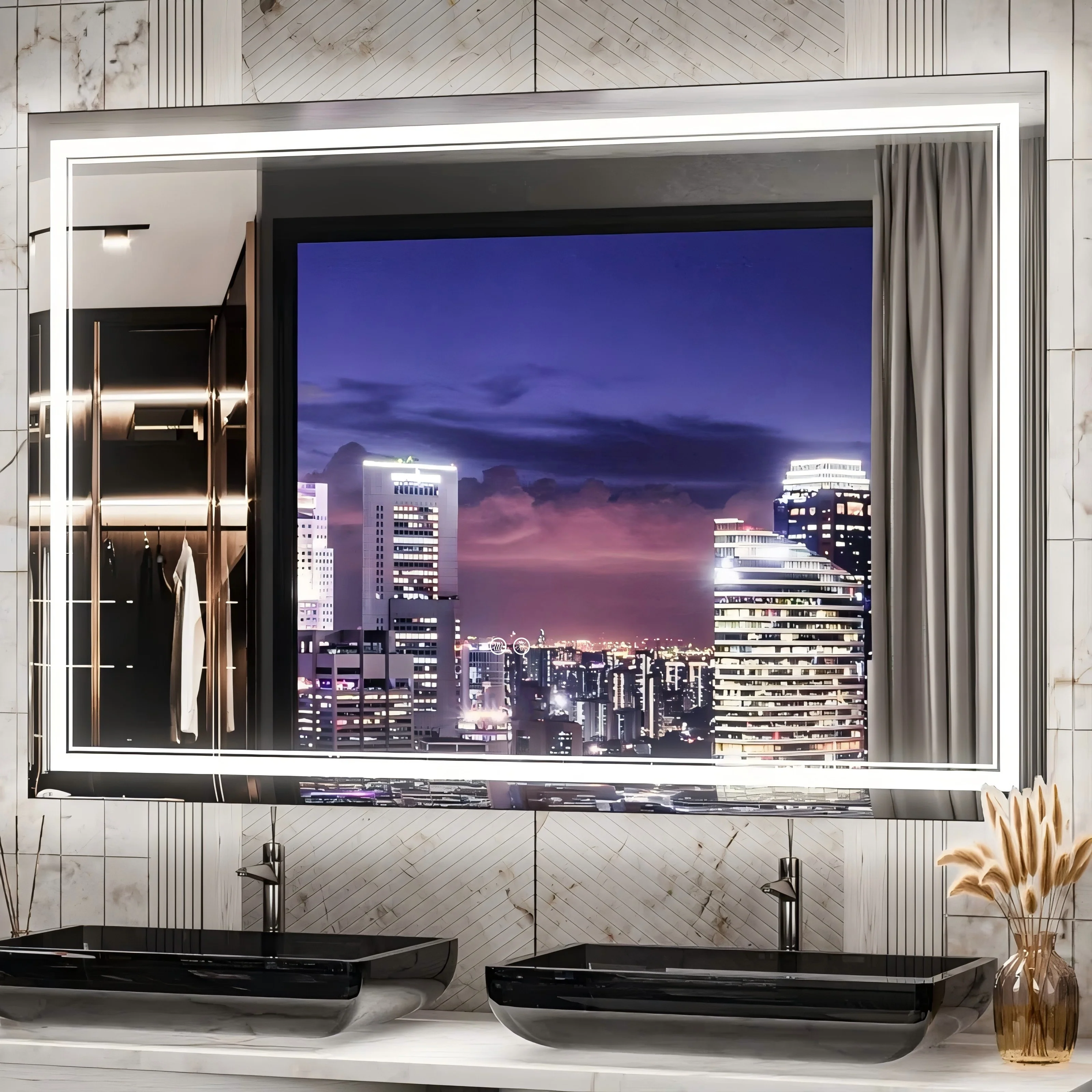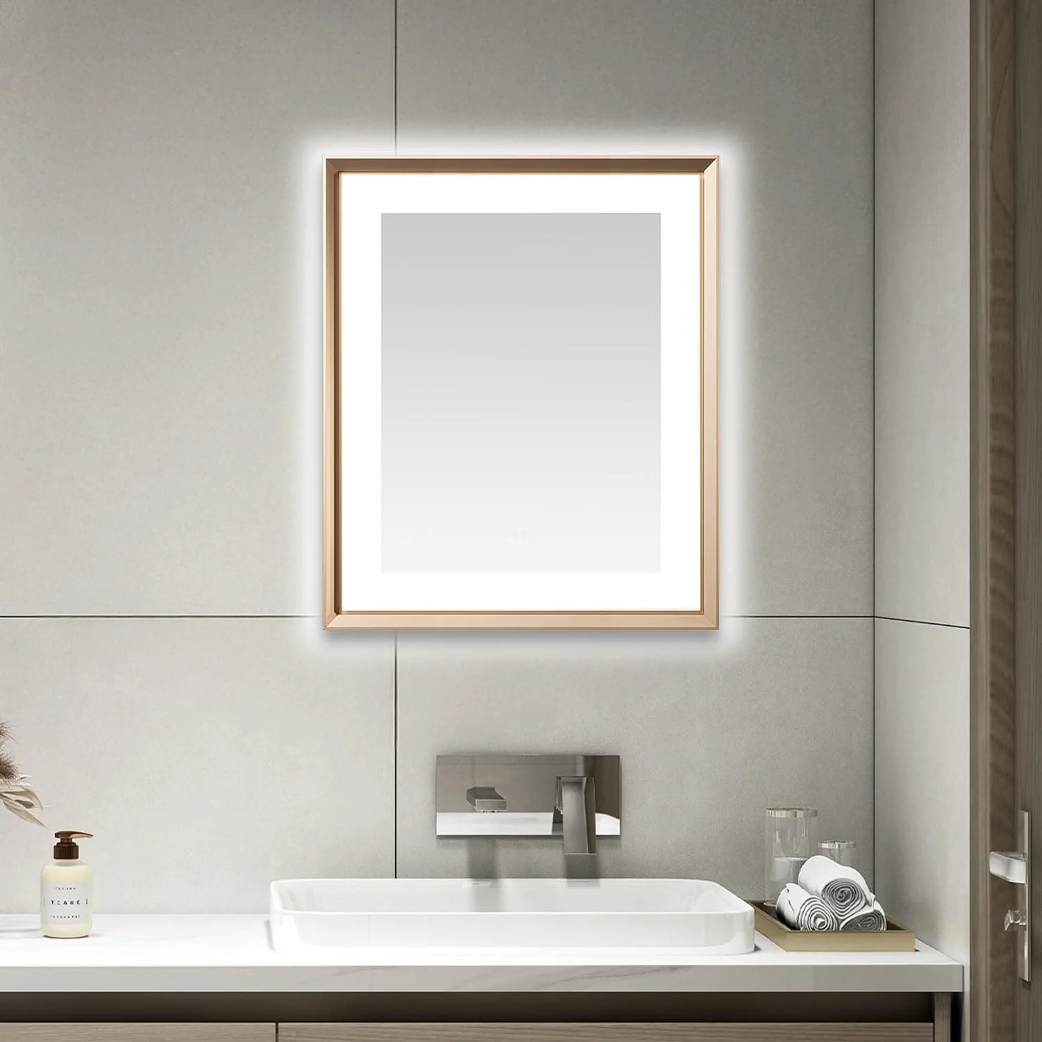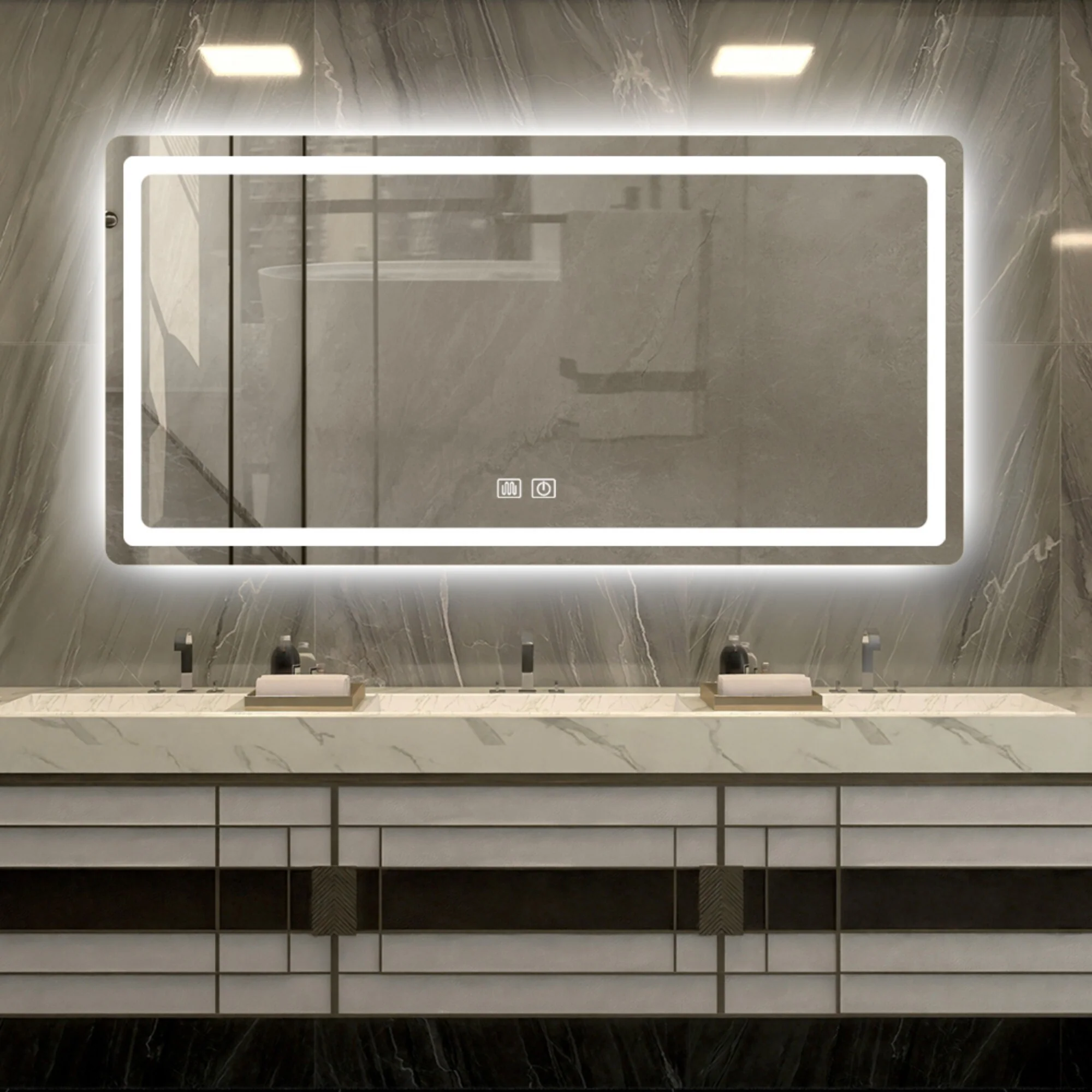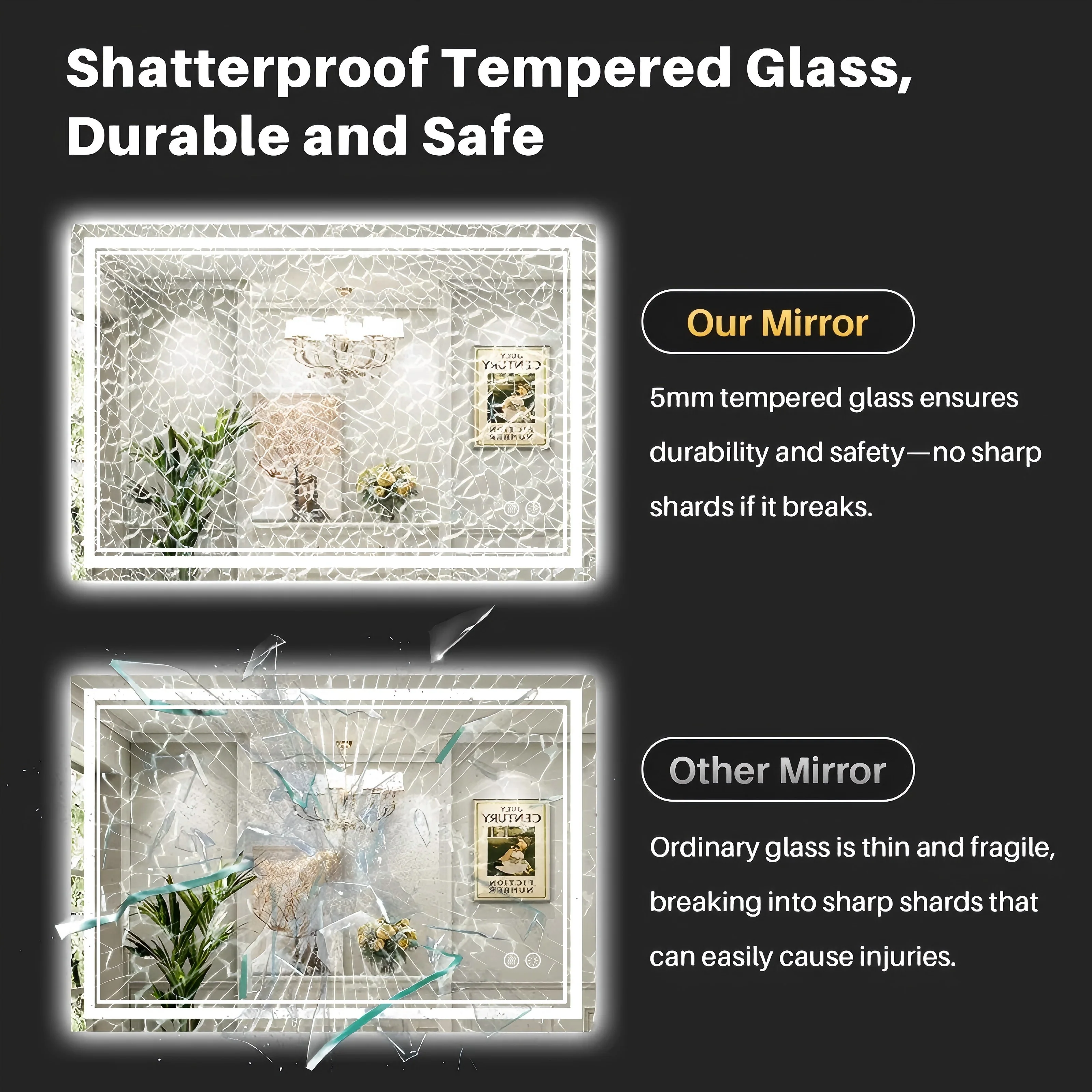 Apmir Frameless LED Anti-fog Bathroom Vanity Mirror in Tempered Glass