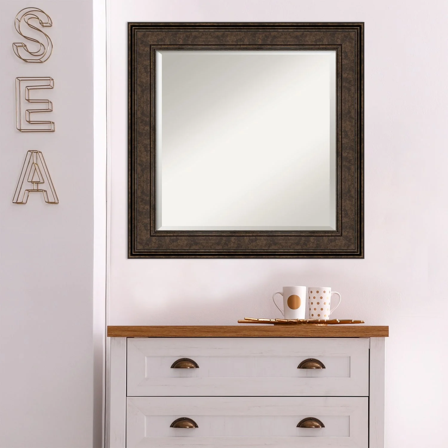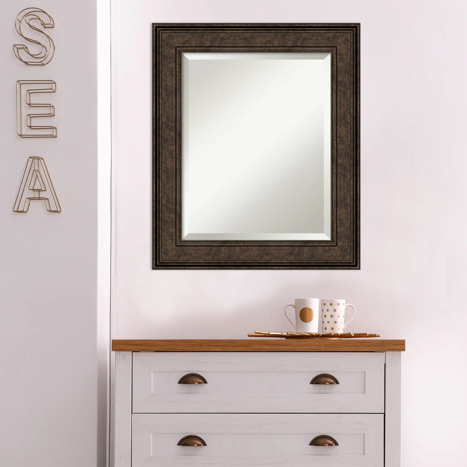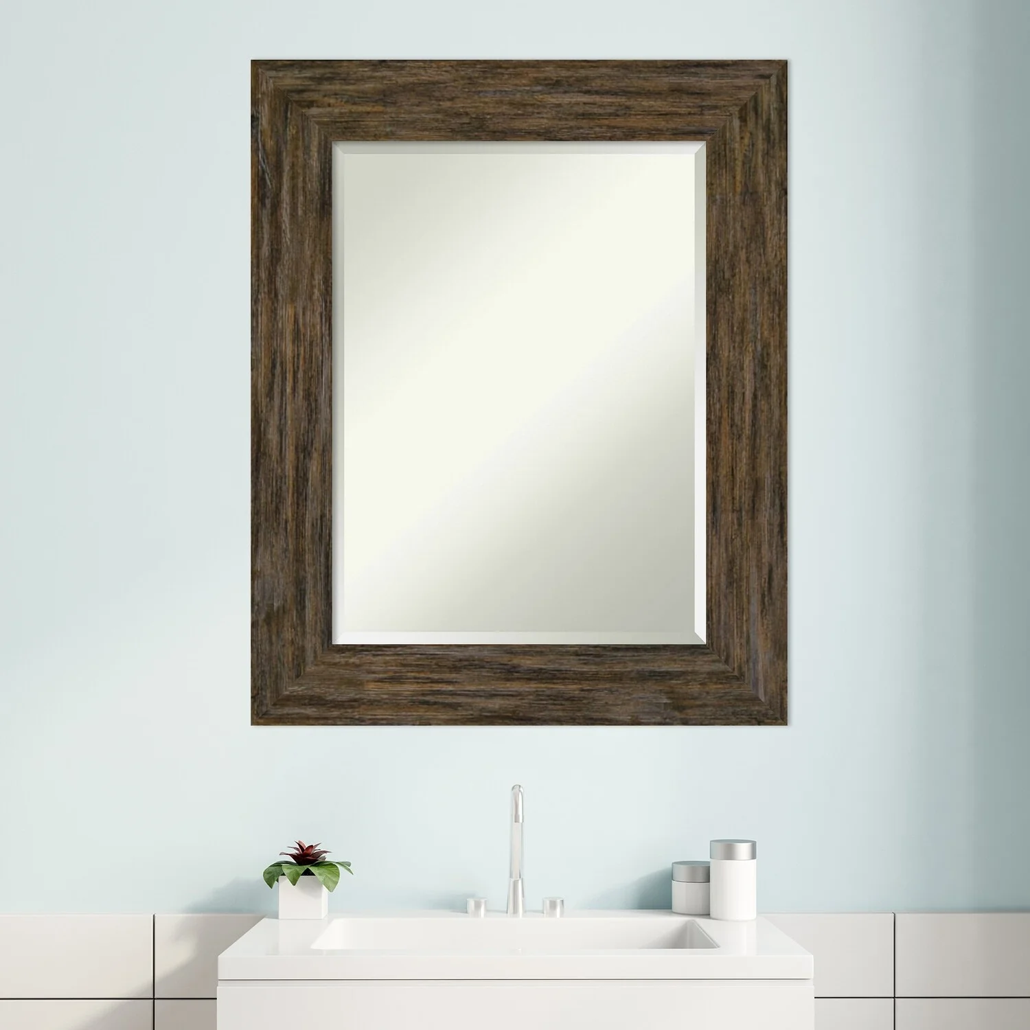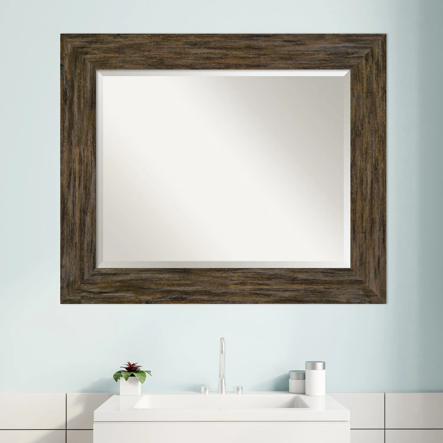 Beveled Bathroom Wall Mirror - Ridge Bronze Frame