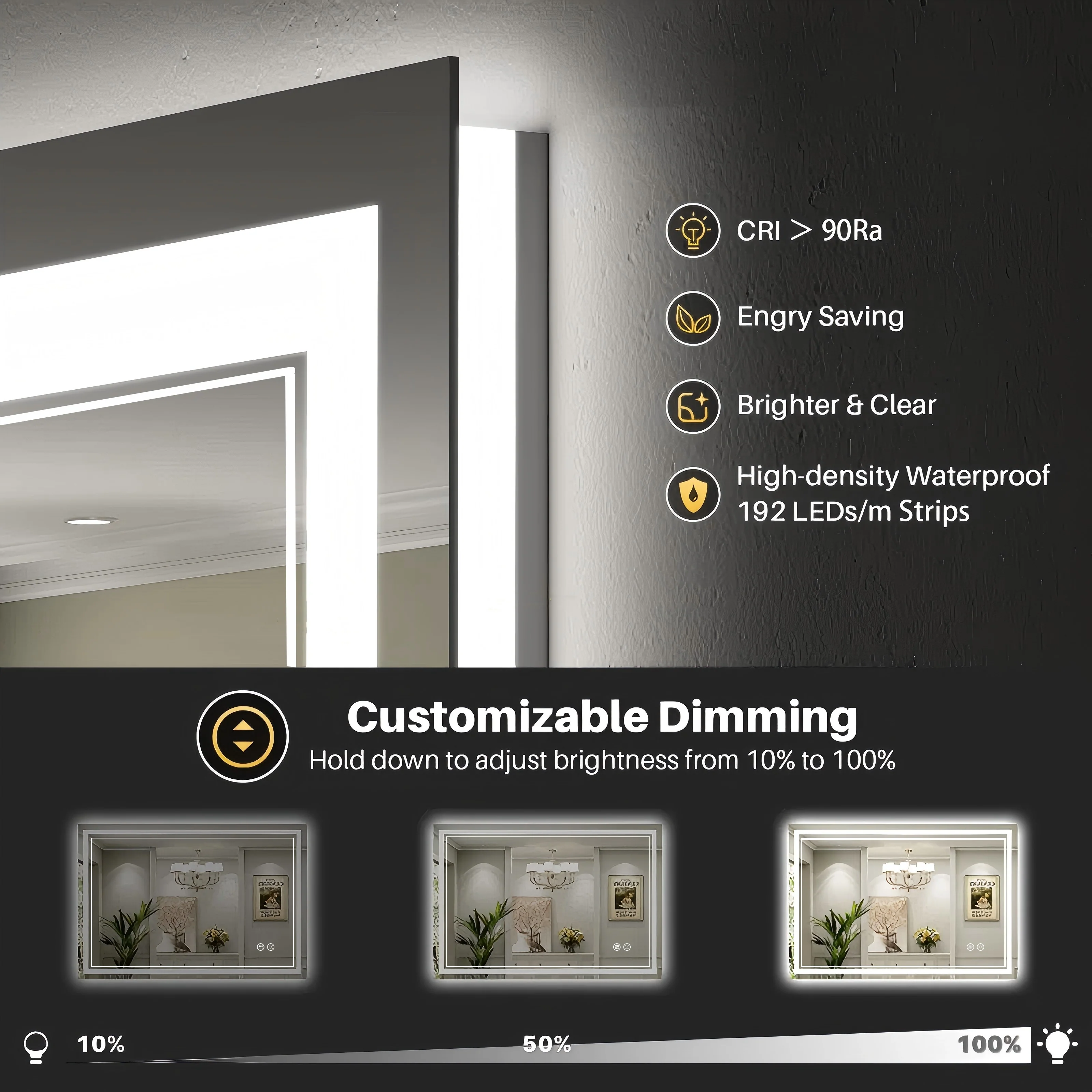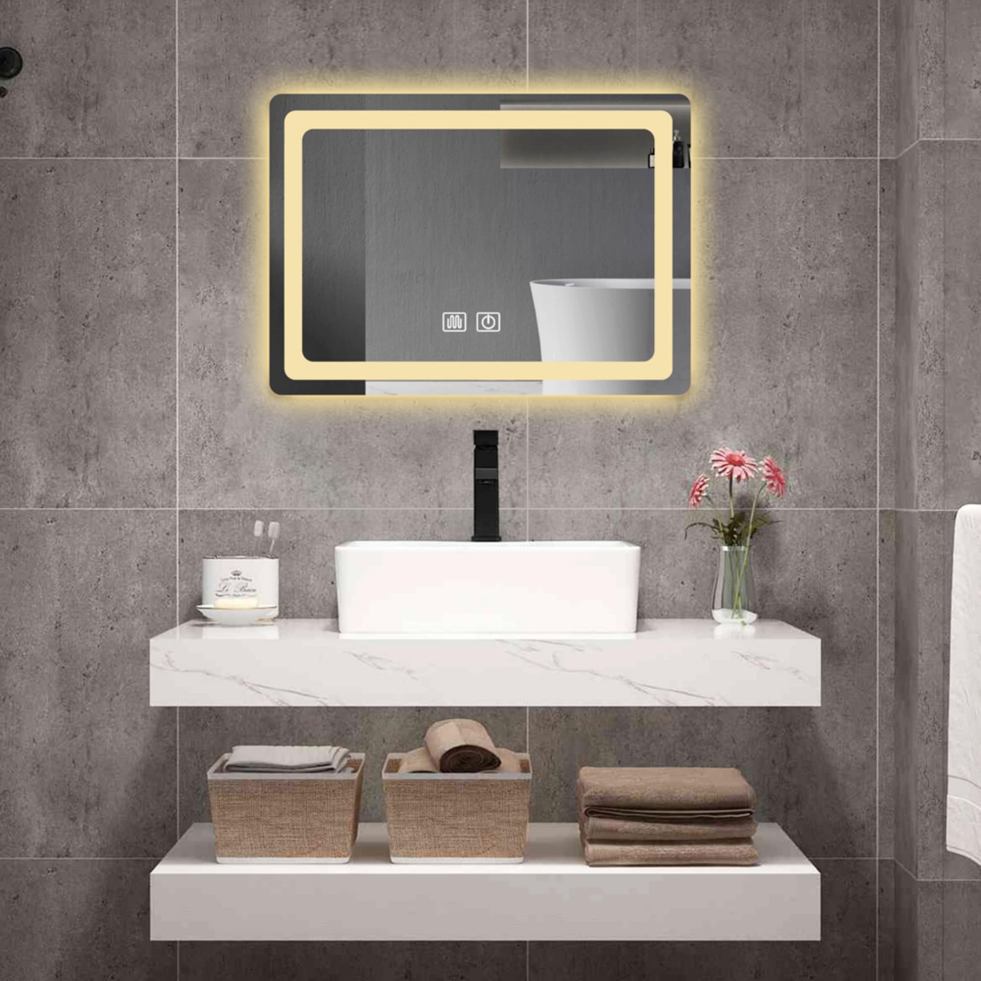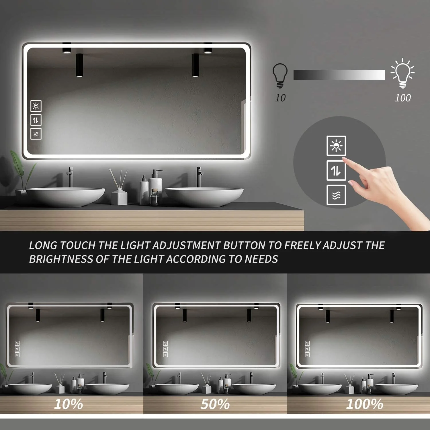 Waterproof LED Touch Light Bathroom Mirror Anti fog Vanity Dimmable