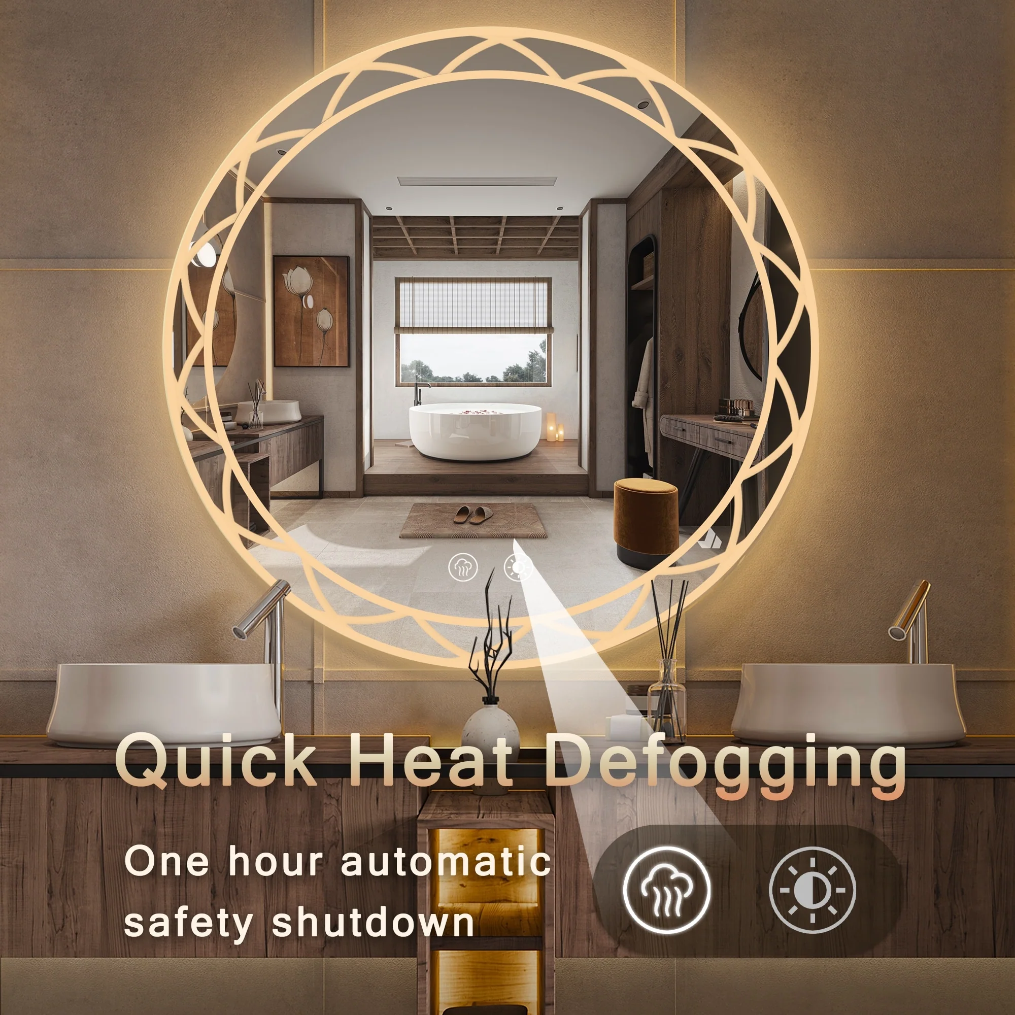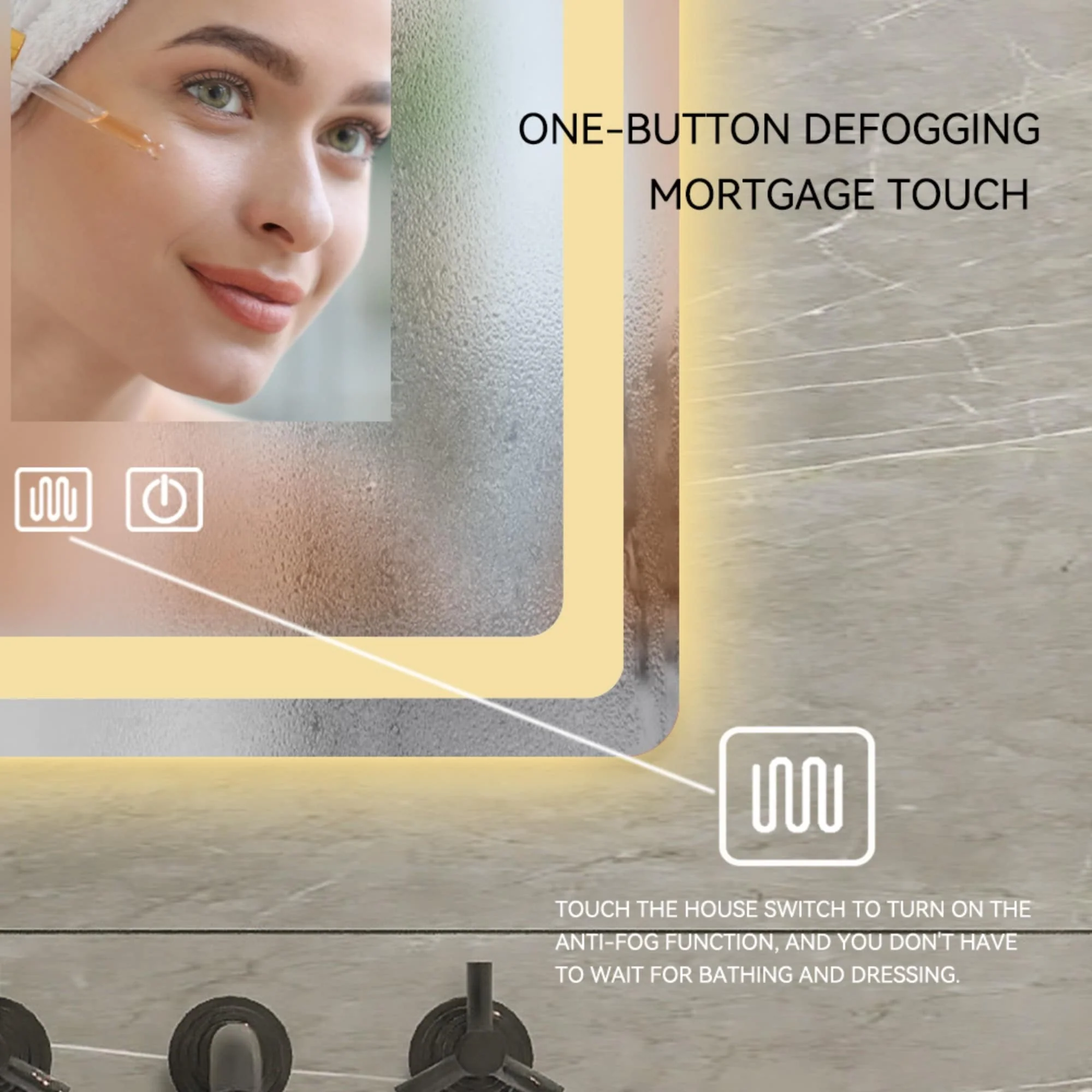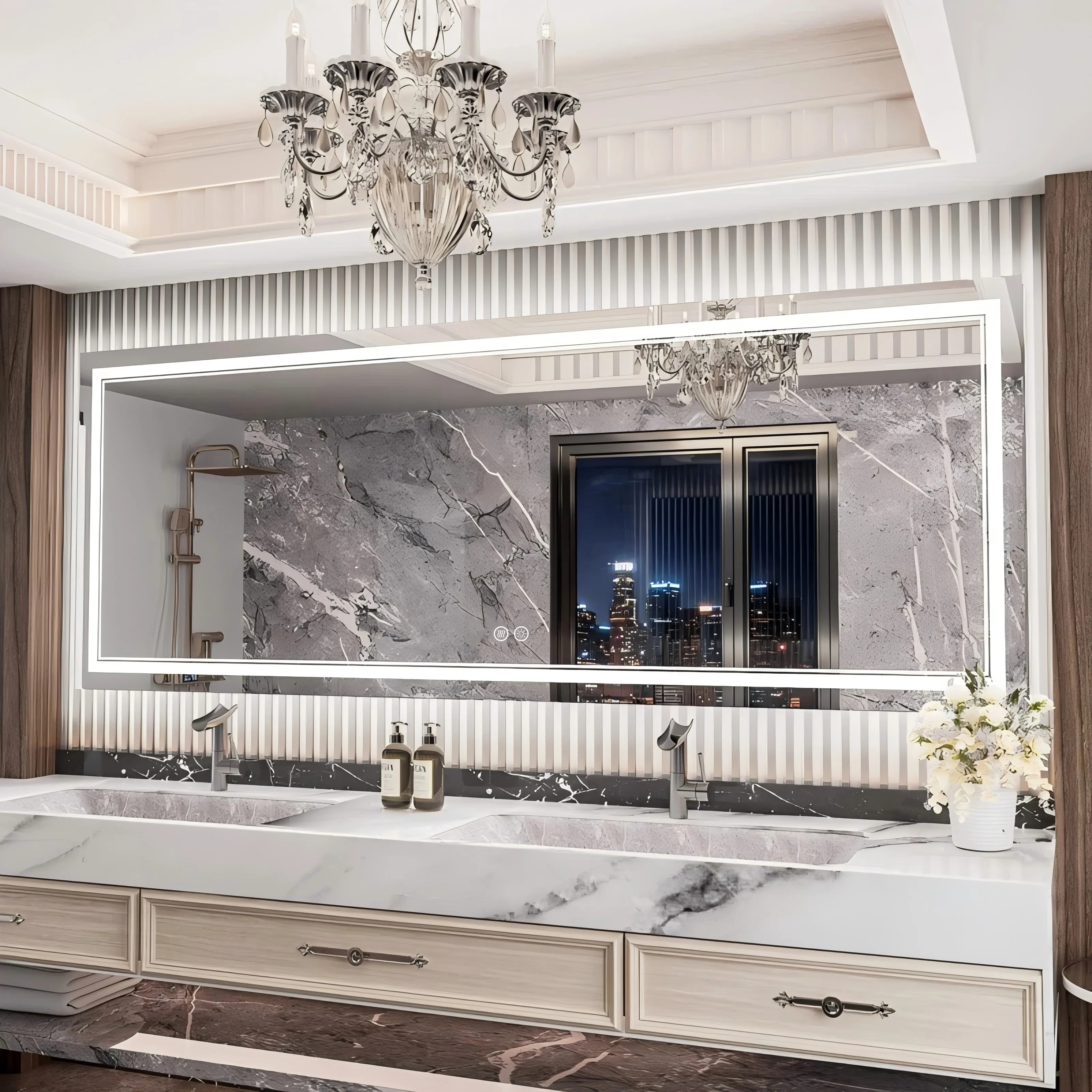 Waterproof LED Touch Light Bathroom Mirror Anti fog Vanity Dimmable