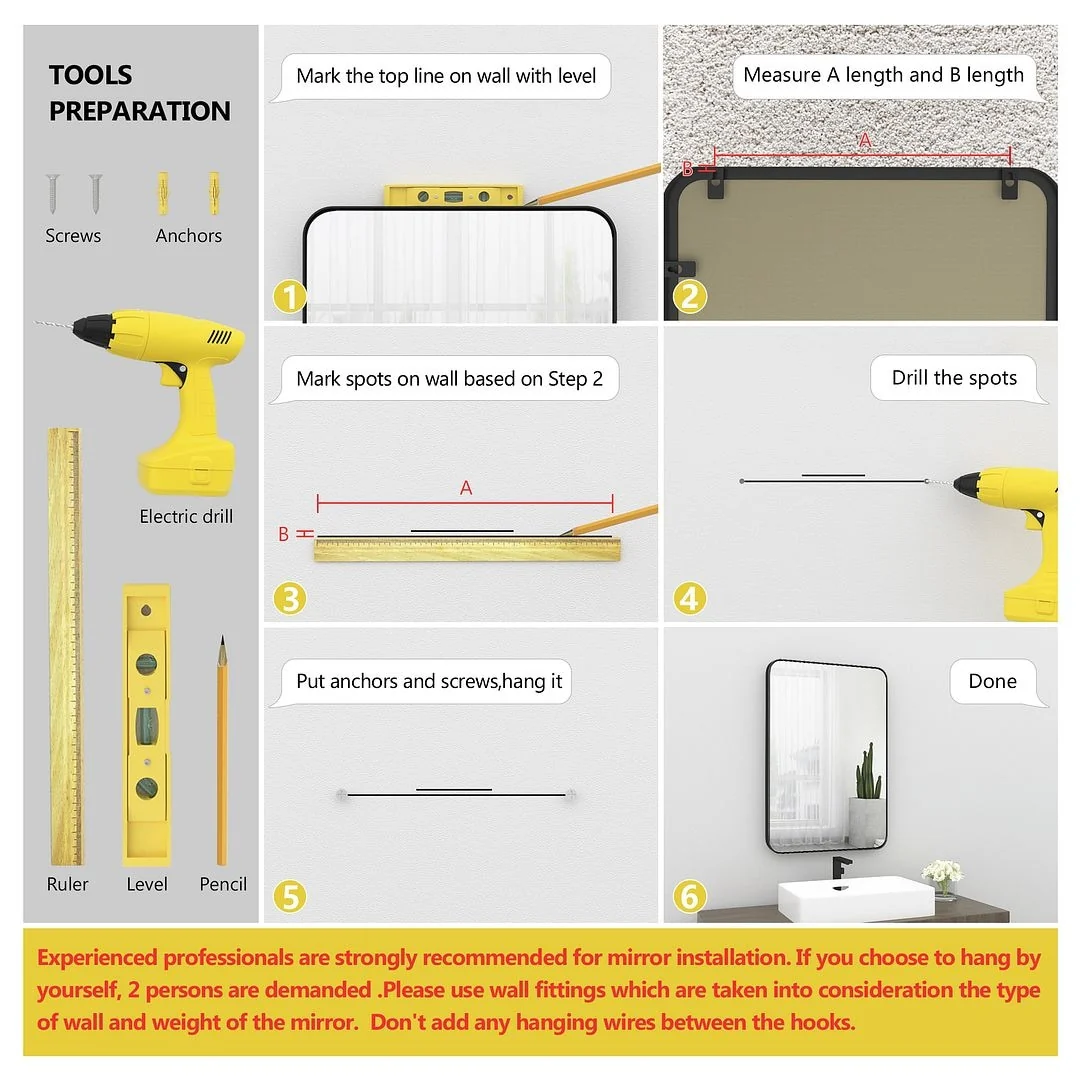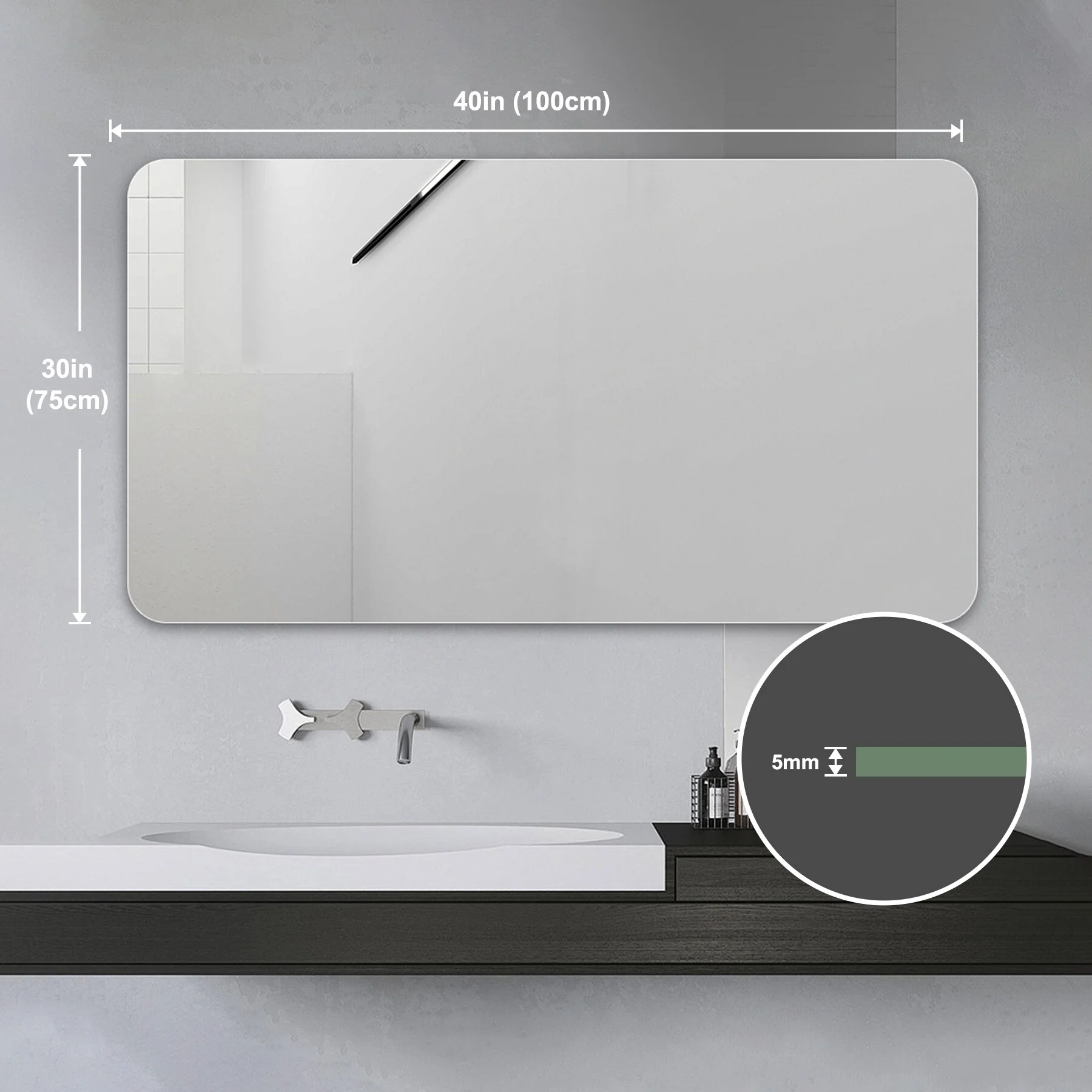 Minimalist Bathroom Wall-Mounted Vanity Mirror, Anti-Corrosion and Shatterproof HD Silver Glass