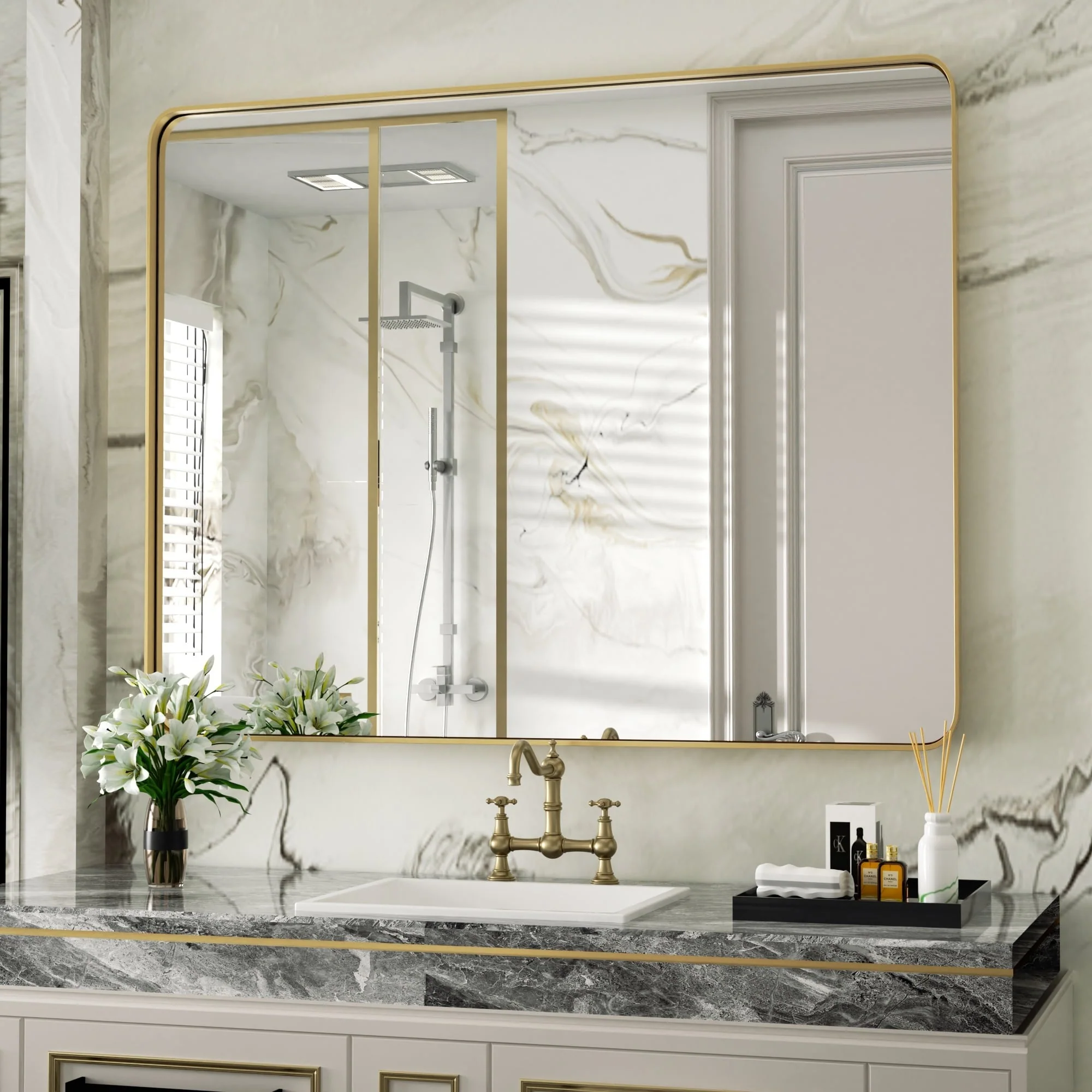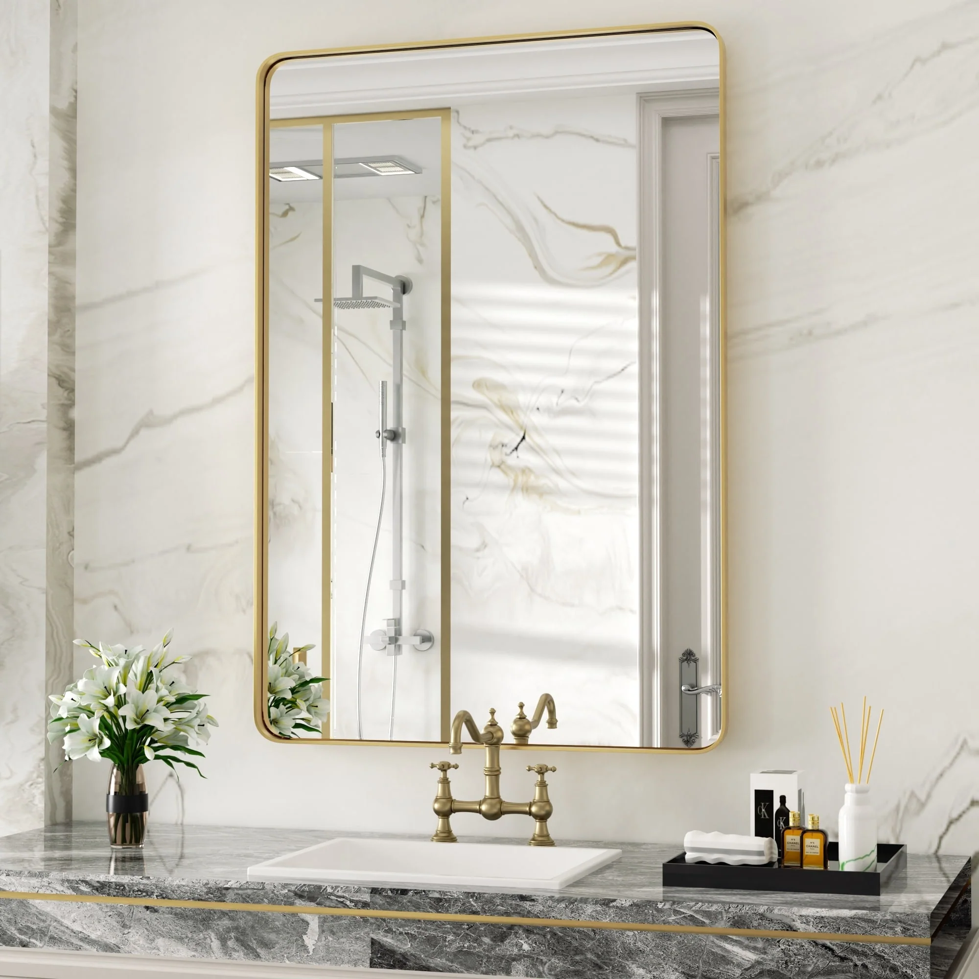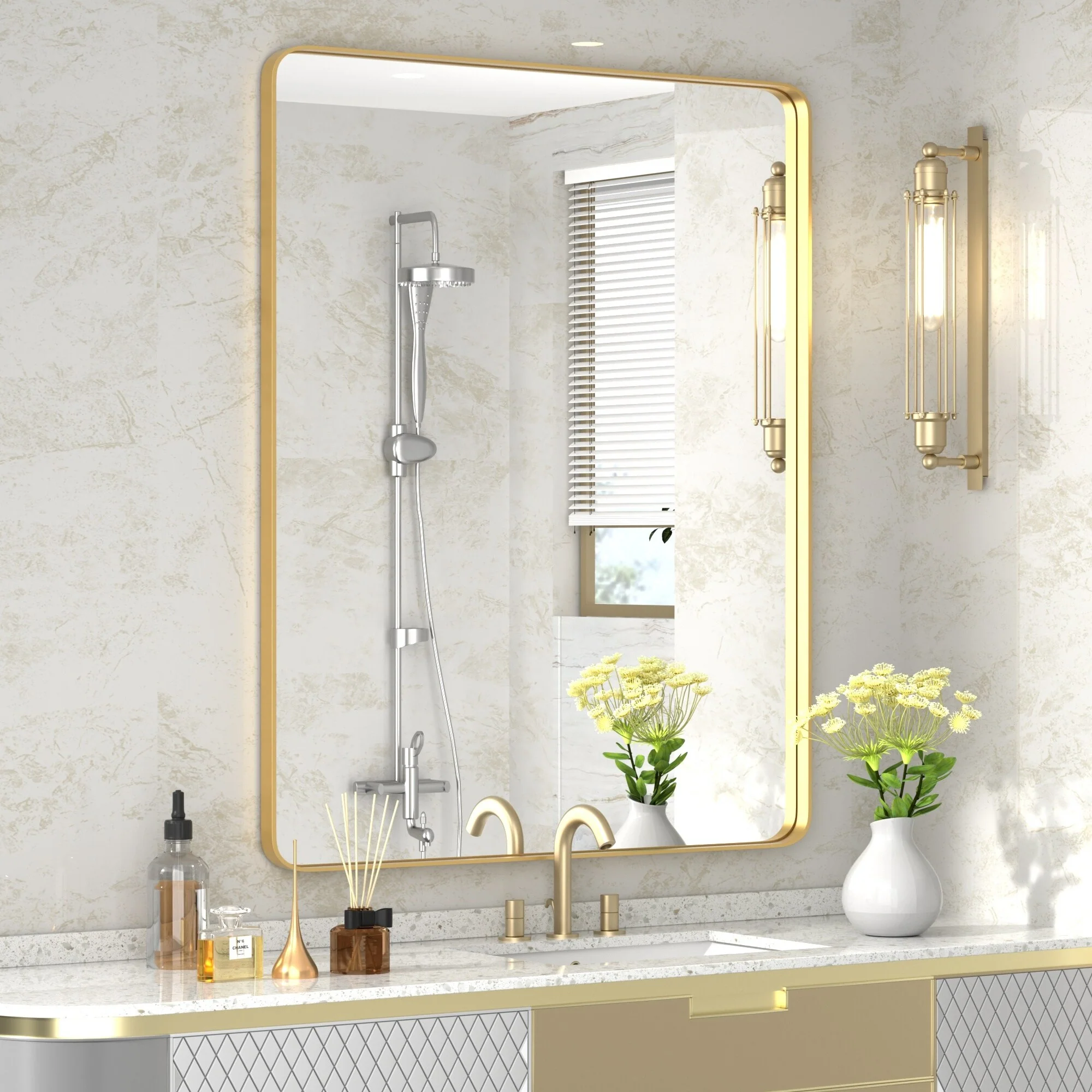 Rectangular Round Corner Bathroom Vanity Mirror