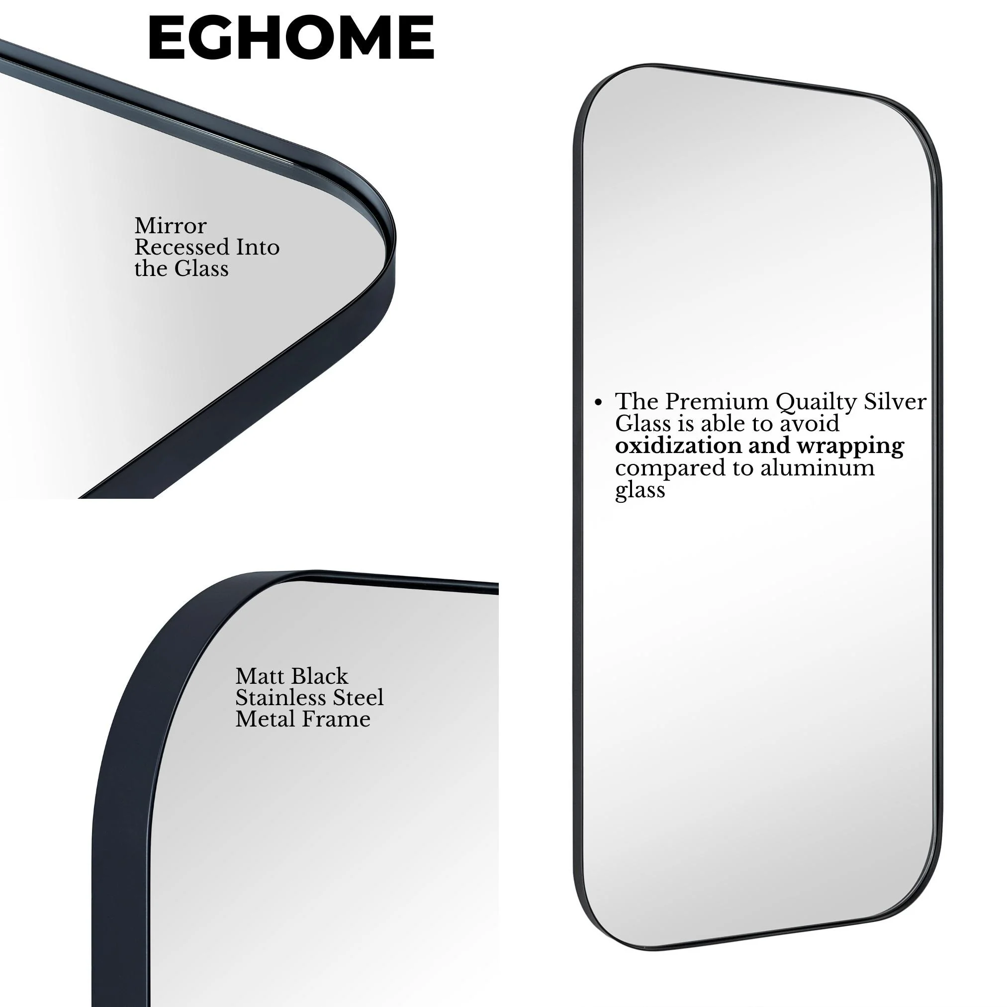 TEHOME Woodvale Rectangle Vertical Metal Wall Mirrors