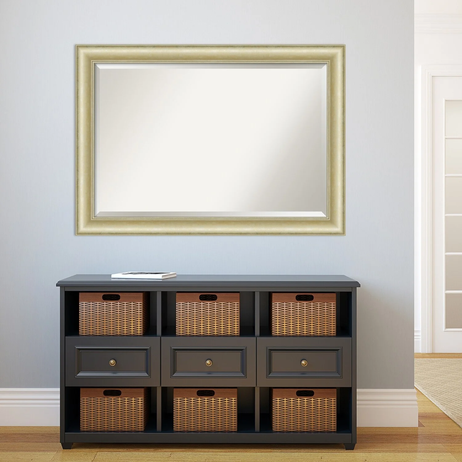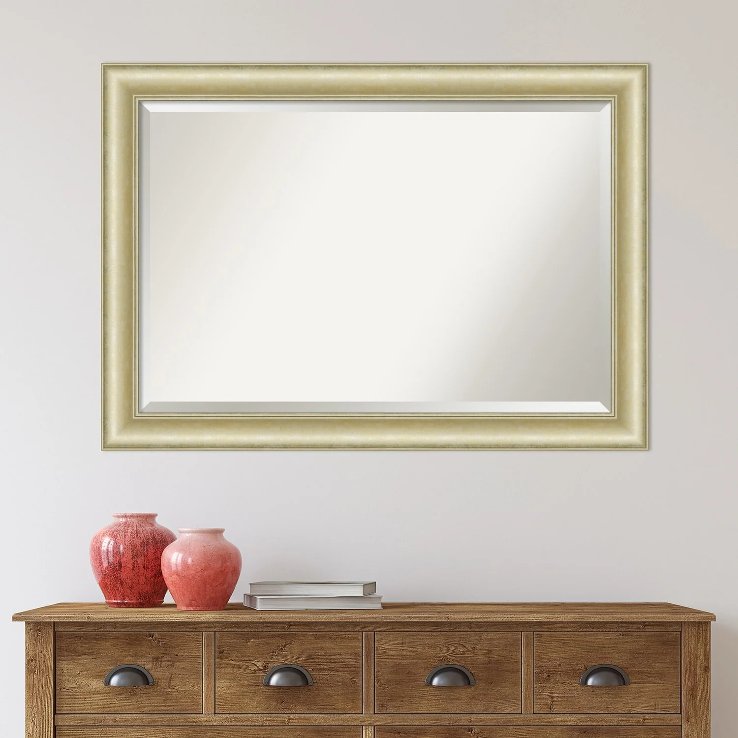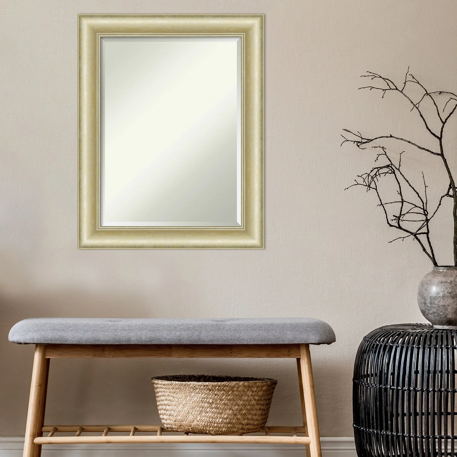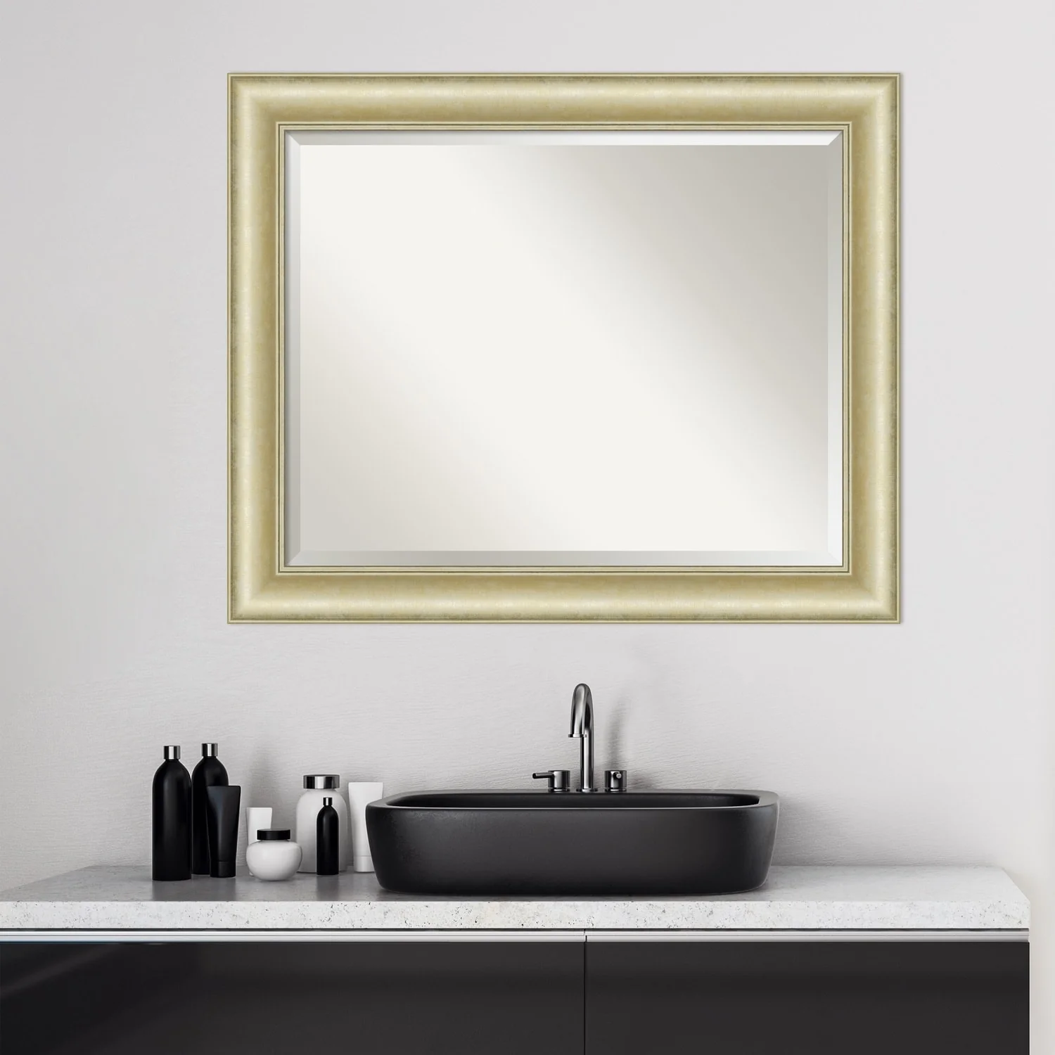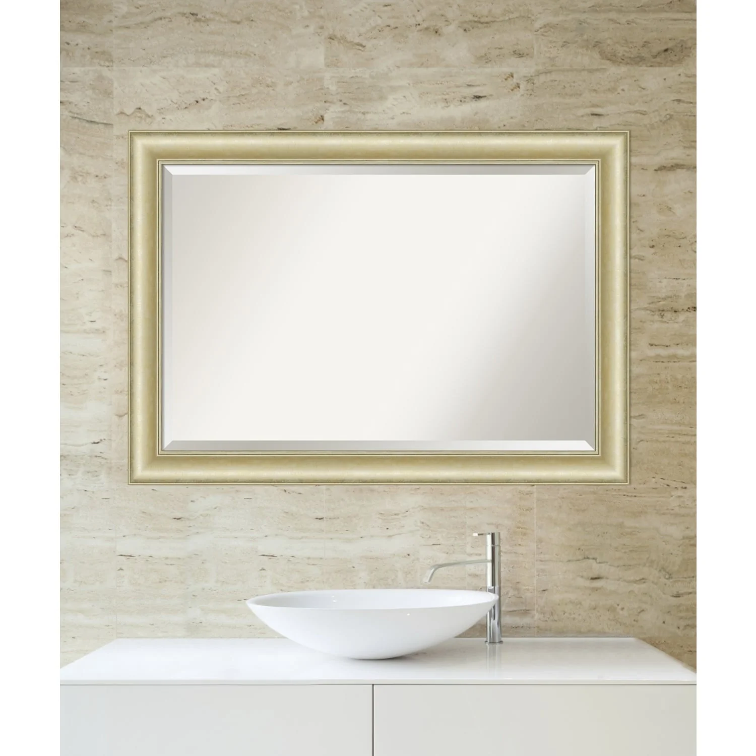 Beveled Bathroom Wall Mirror - Textured Light Gold Frame