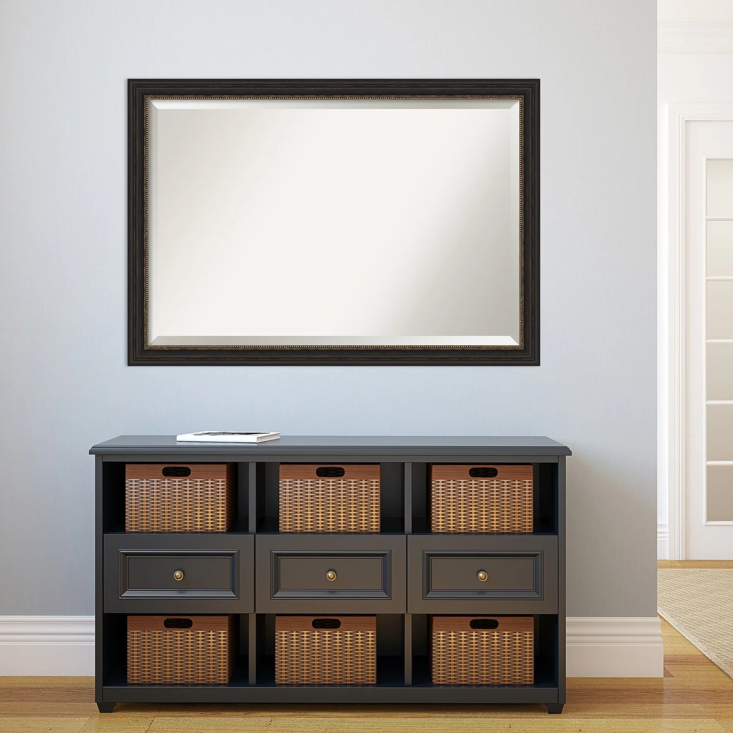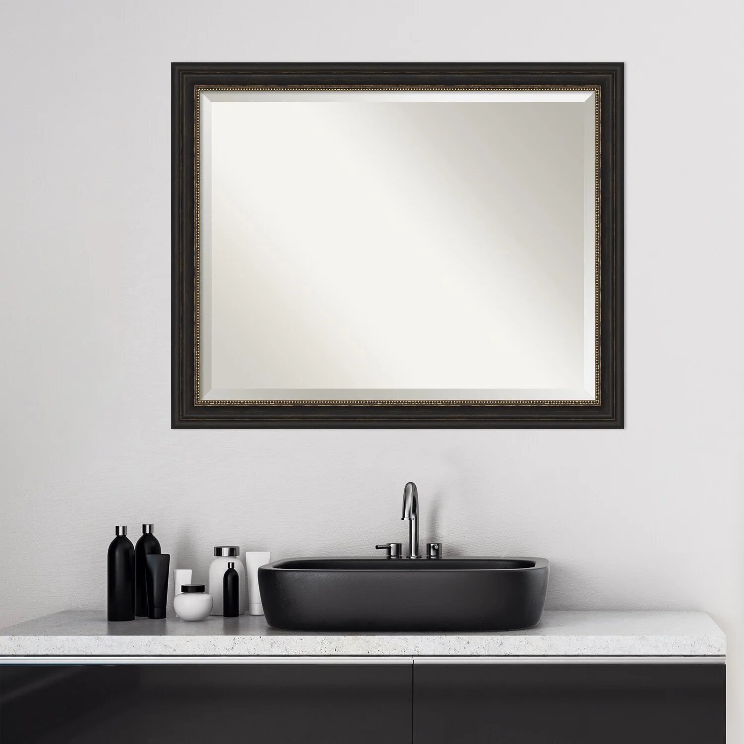Beveled Bathroom Wall Mirror - Accent Bronze Narrow Frame