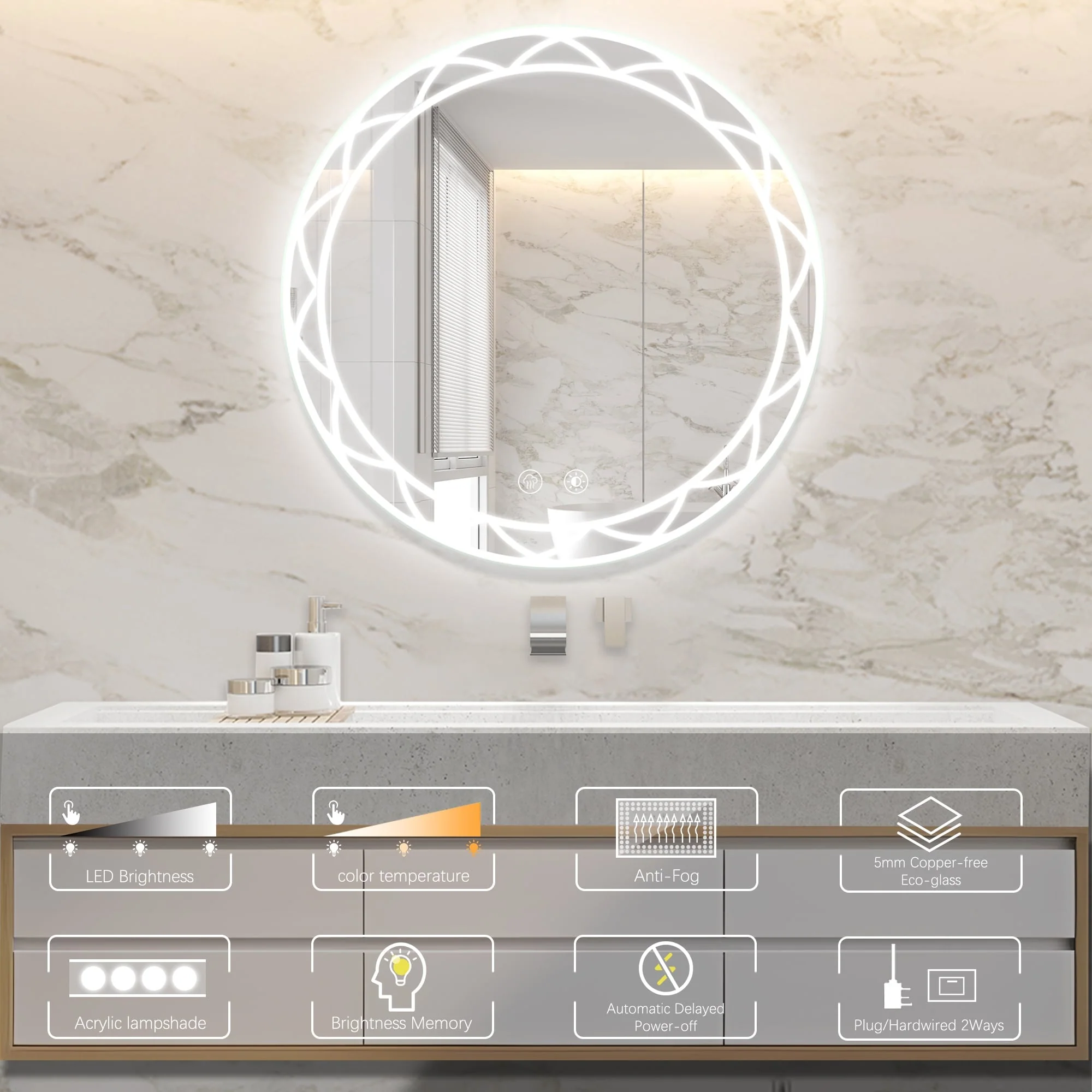 Round Square Bathroom Vanity Mirror