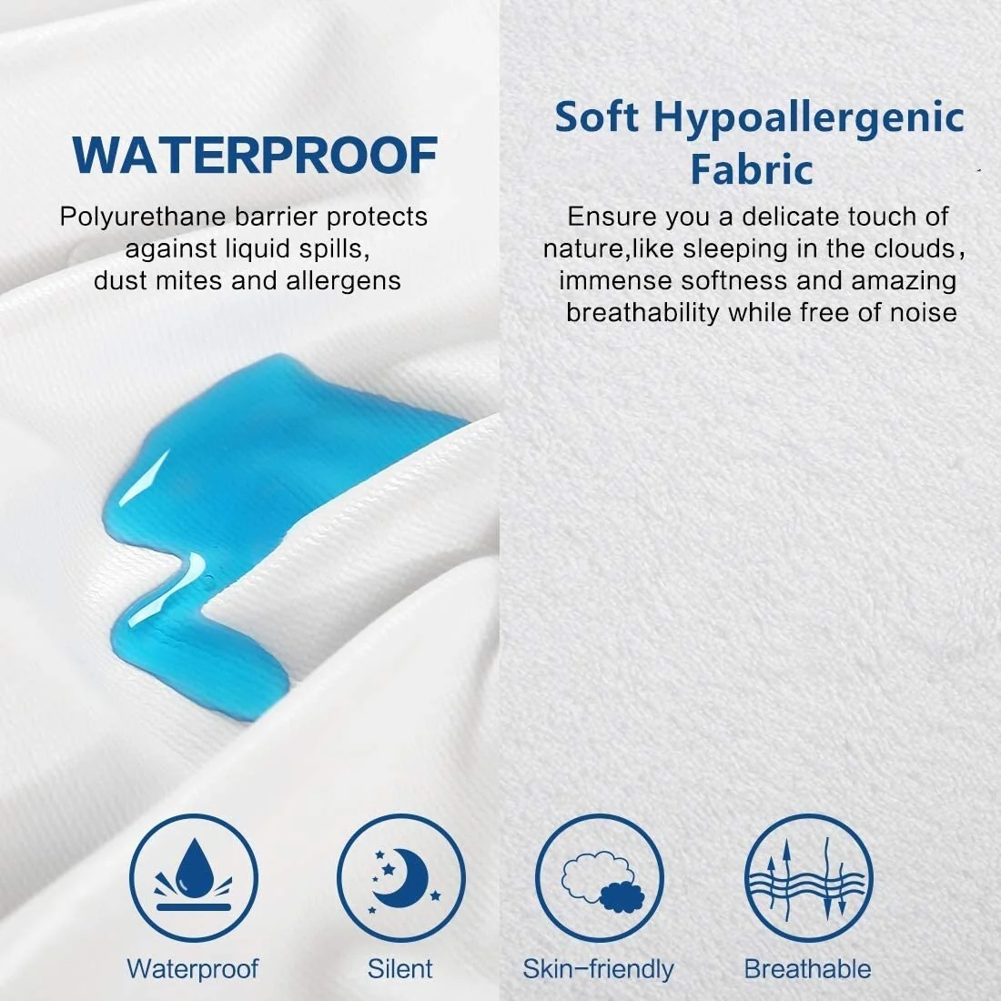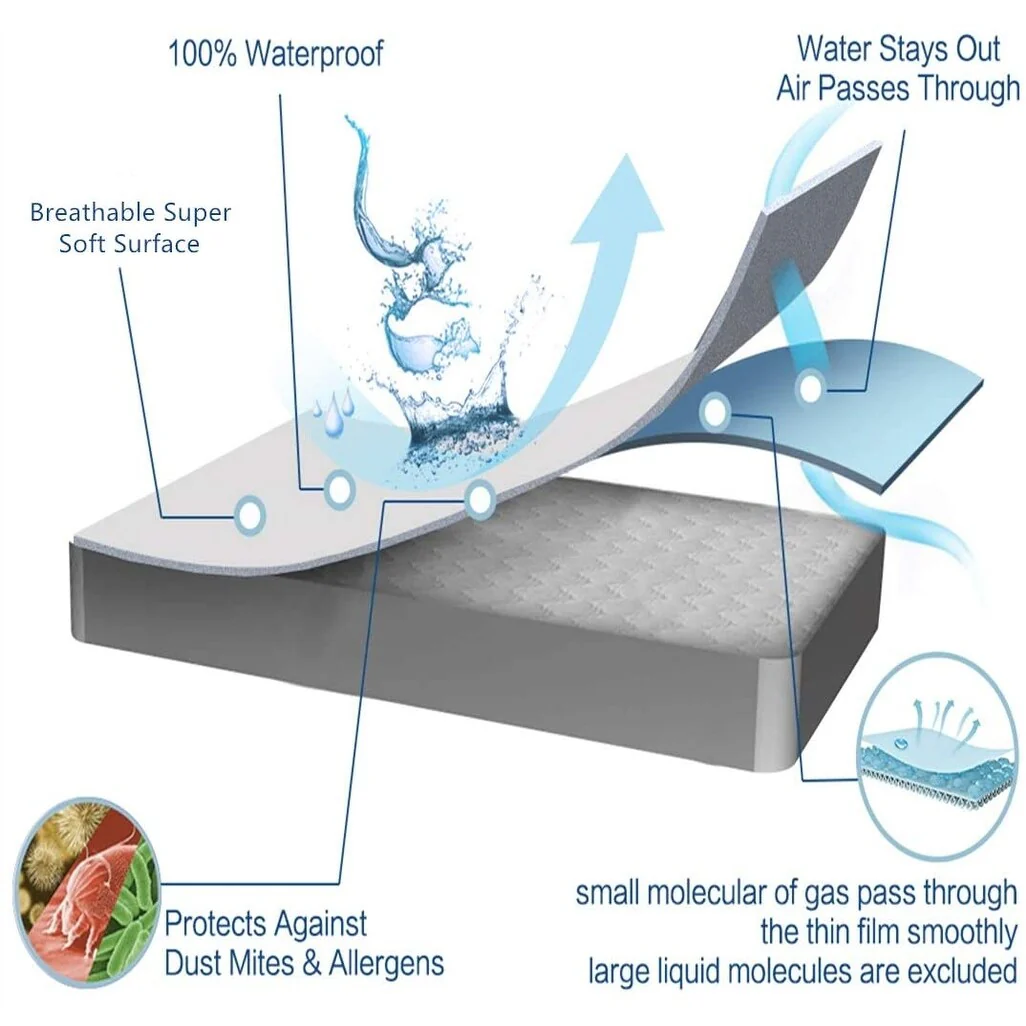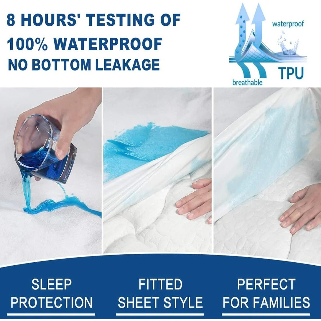 100% Waterproof Super Soft Breathable Noiseless Premium Fitted Mattress Pad Cover Luxury Elastic Deep Pocket Vinyl Free Bed Cove