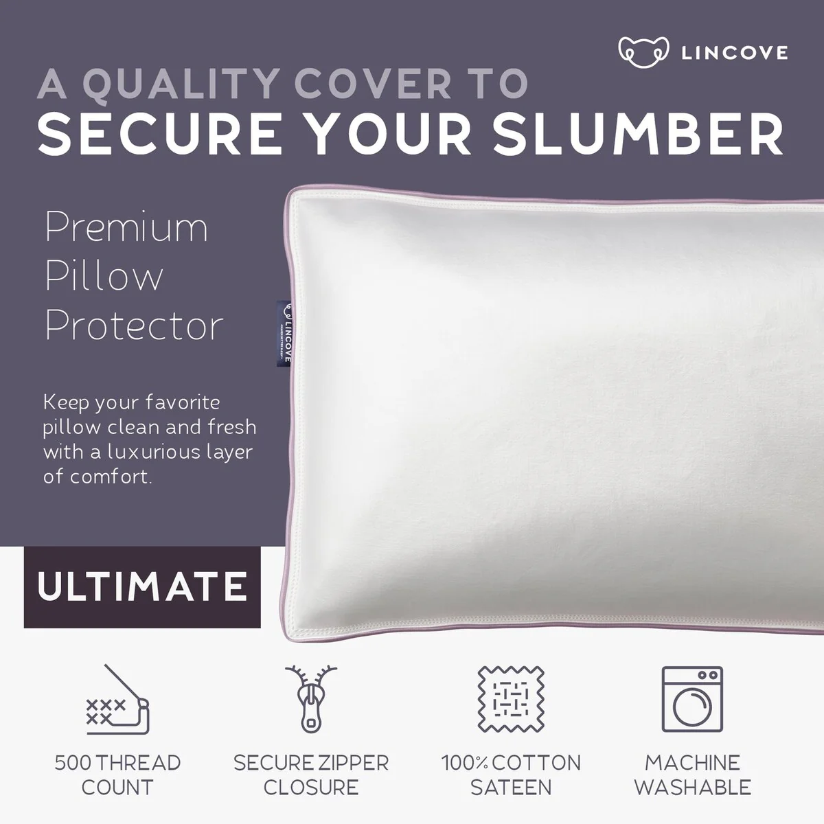 Lincove Cotton Sateen Pillow Protector - Zippered Cover for Pillows - Ideal for Toddler or Travel Pillows 13" x 18"
