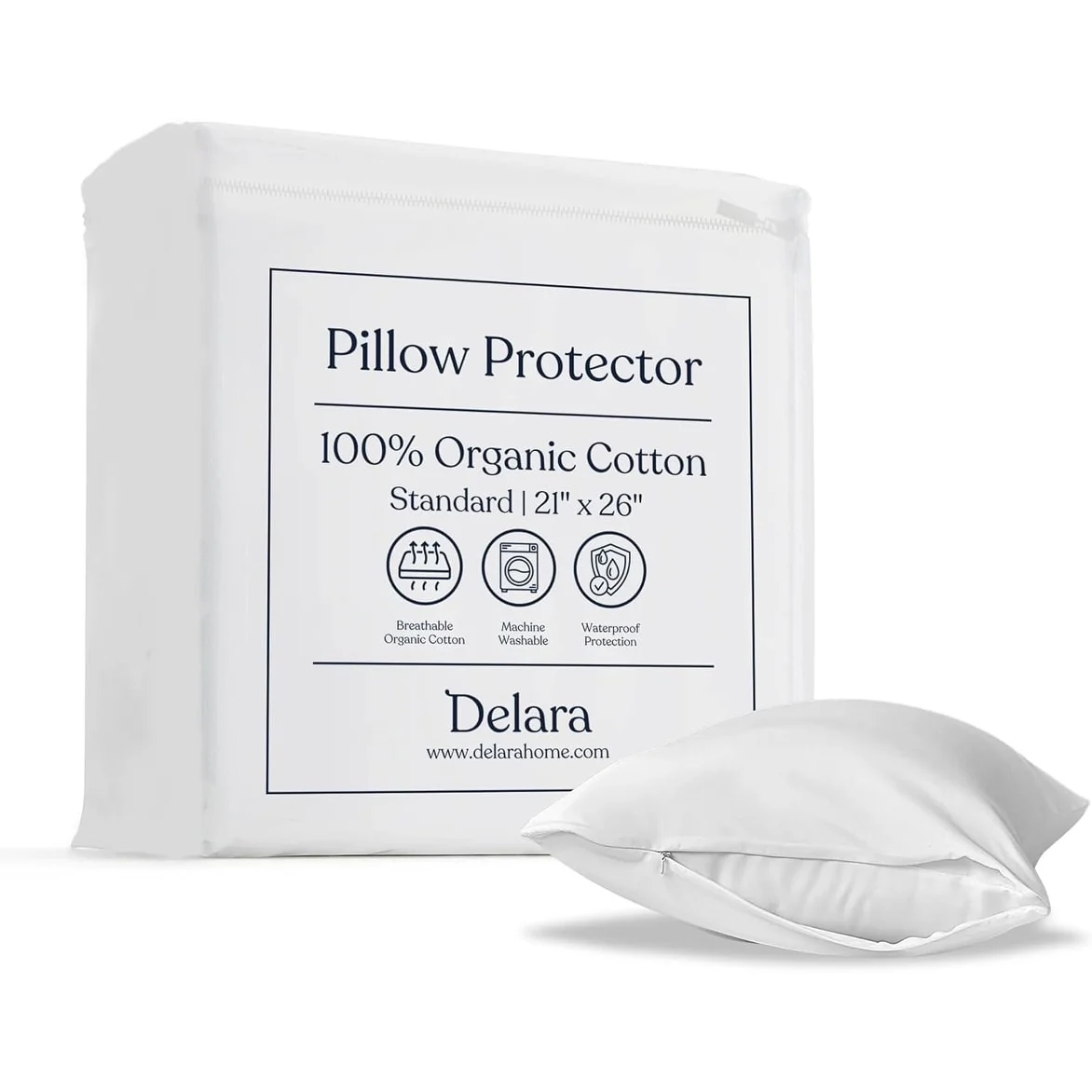 Delara GOTS Certified 100% Organic Cotton Pillow Protector Pack of 2, 300 Thread Count, Long Staple Cotton, Ultra Soft & Smooth