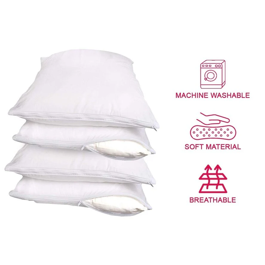 Protect-A-Bed ALLERZIP Smooth STANDARD Pillow Encasement 4 PACK - White