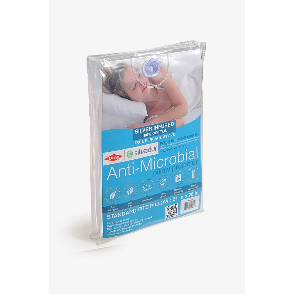 100% Cotton Pillow Protectors with Silvadur Antimicrobial protection, Set of 2