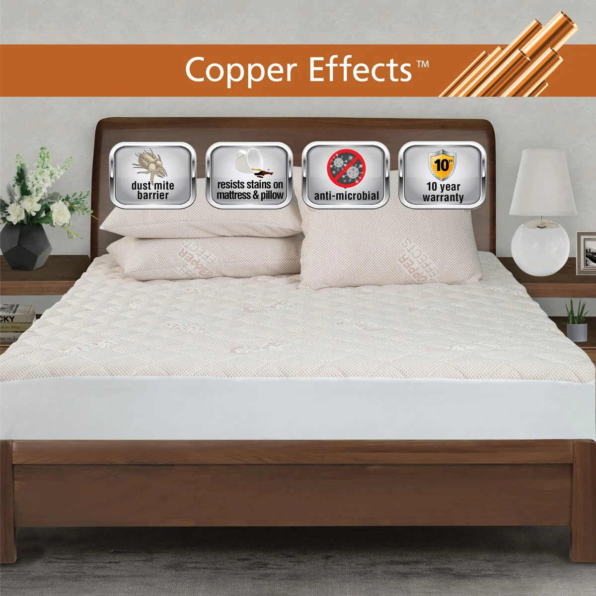 All-In-One Copper Effects Antimicrobial Pillow Protector 2-Pack