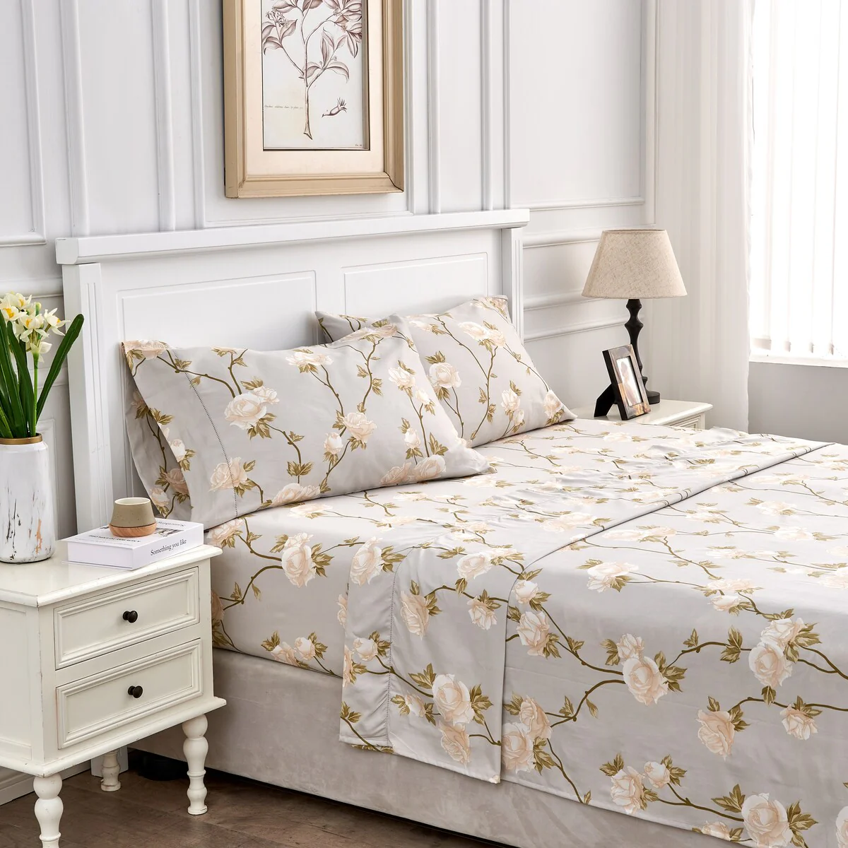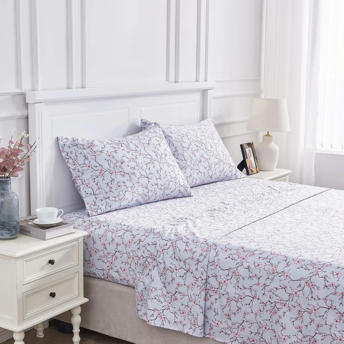 Printed Floral Design Cotton Collection Sheet Set and Pillowcases