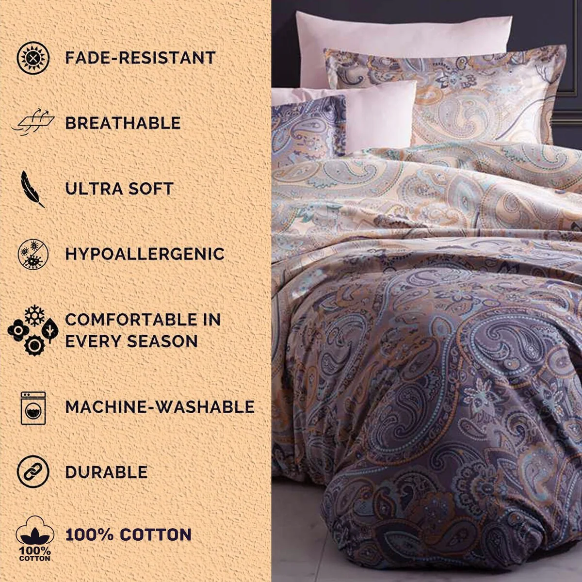 Organic-Club Paisley Night Cotton Sateen Bedding Set of 4