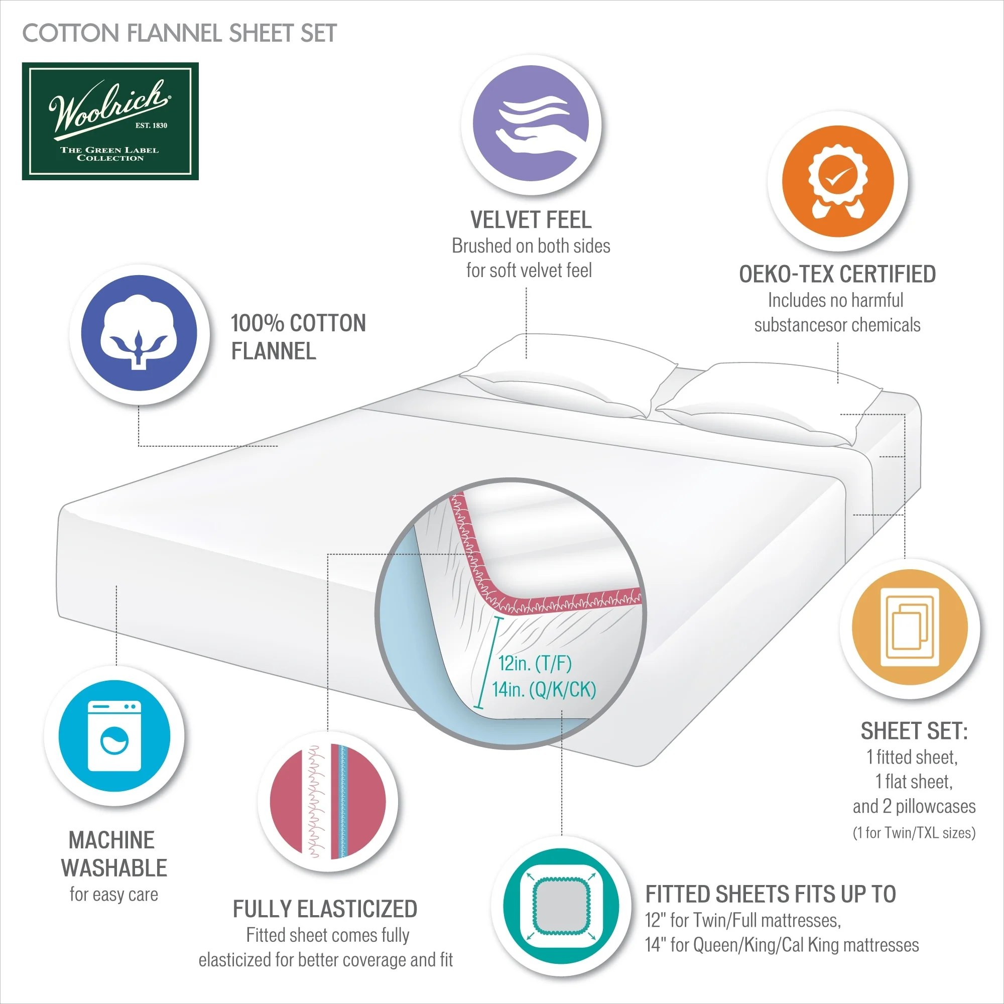 Pointehaven 200 GSM Superior Heavyweight Flannel Cotton Deep Pocket Bed Sheet Set