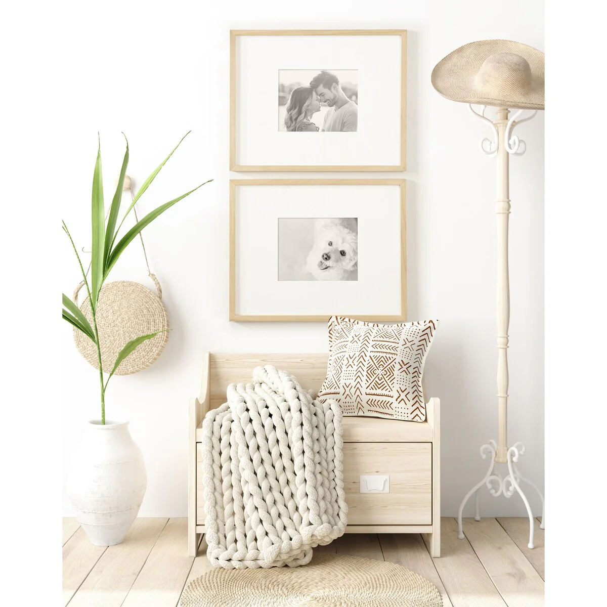 Take it from your favorite home-d��cor magazine - a cluster of smartly displayed photos all presented in stylish wooden frames is the trend that is becoming a classic. What was once a cluttered arrangement gathering dust becomes the main focal point of any room. Capture your cherished photos of family, friends, and special occasions with the DesignOvation Gallery Wood Frame Set. The contemporary look of this satin finish wood frame set will add a modern feel. With this frame collection, you can personalize your display of photos to suit your space and style using any customizable layout that you design. The frames can hang portrait or landscape style and can be mounted securely on a wall with the metal wall hangers that come attached to the back. The white mat creates an additional decoration and brings the viewers focus on what matters - your photos. It's a simple way to create drama or fun in your home or office.