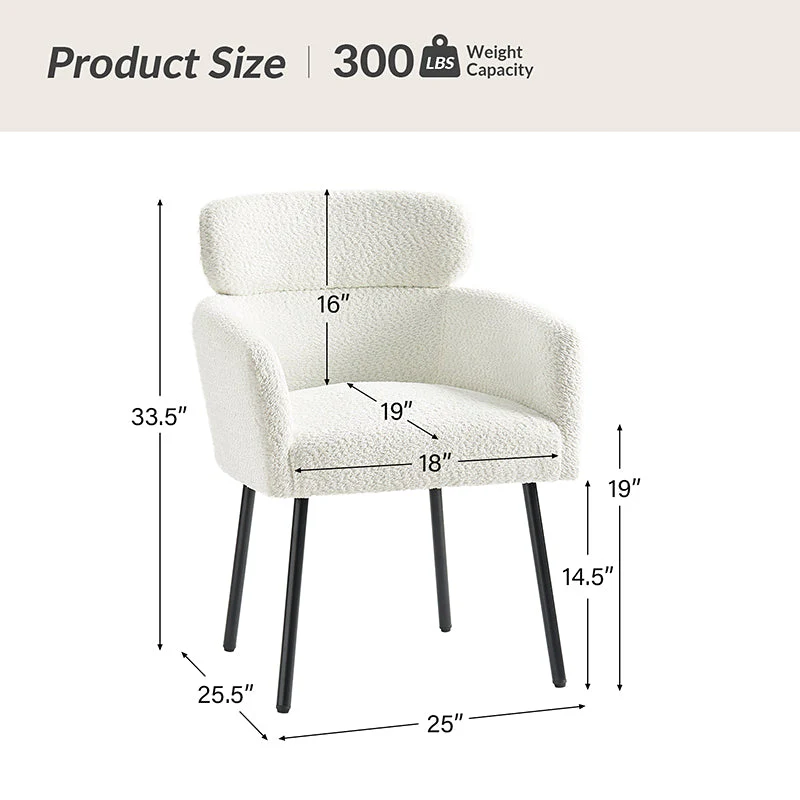 Anastasius Modern Boucle Dining Chair with Lambswool and Adjustable Feet