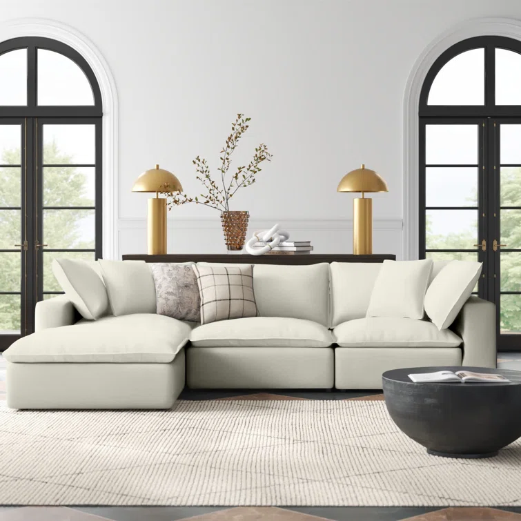 Raquel Sectional Four-Seat Storage Wide Armrests Sofa With Two Ottomans