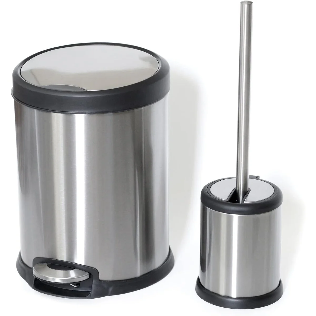 ToiletTree Products Toilet Brush with Lid and 5L Trash Can Combo Set - 13.4 x 10.6 x 10.5