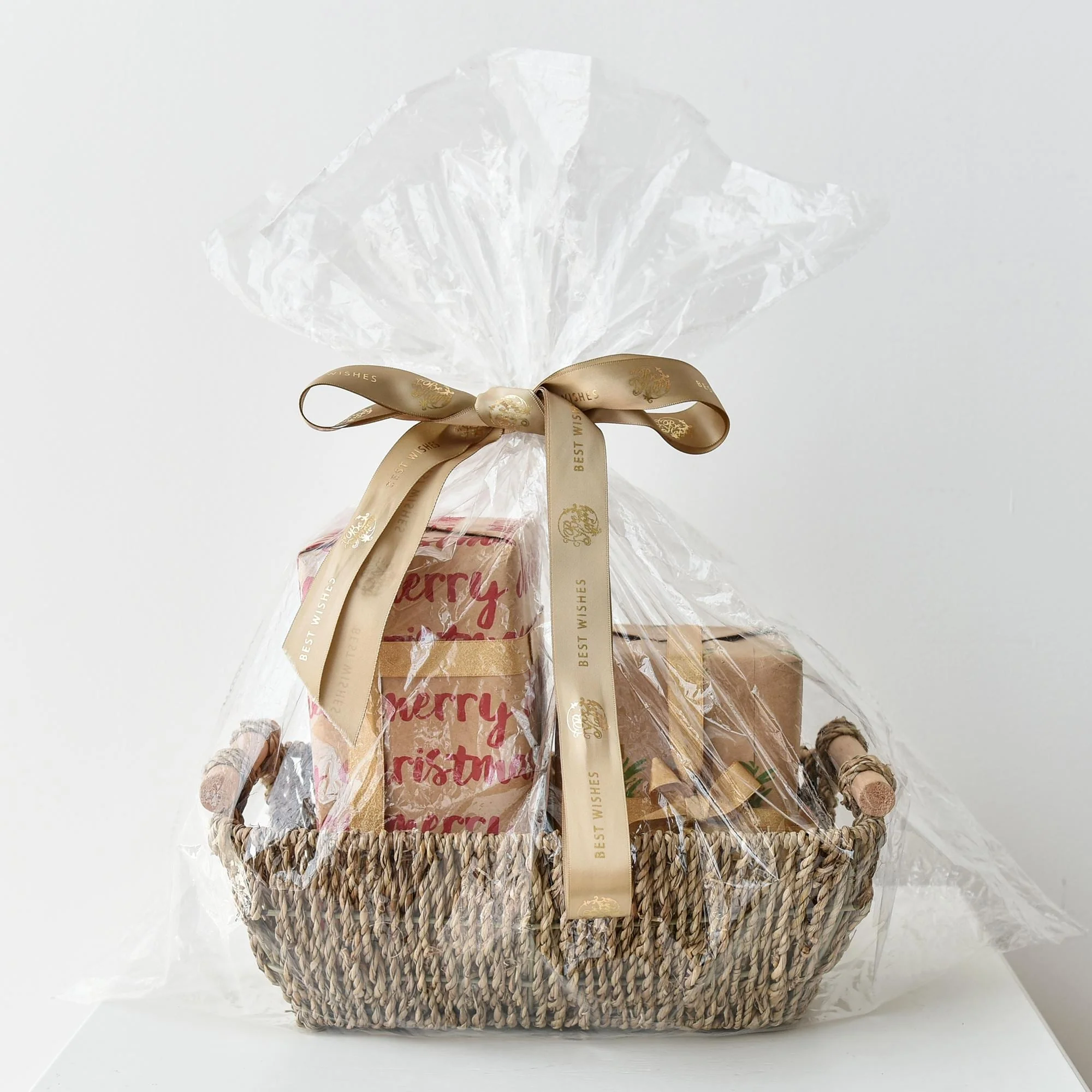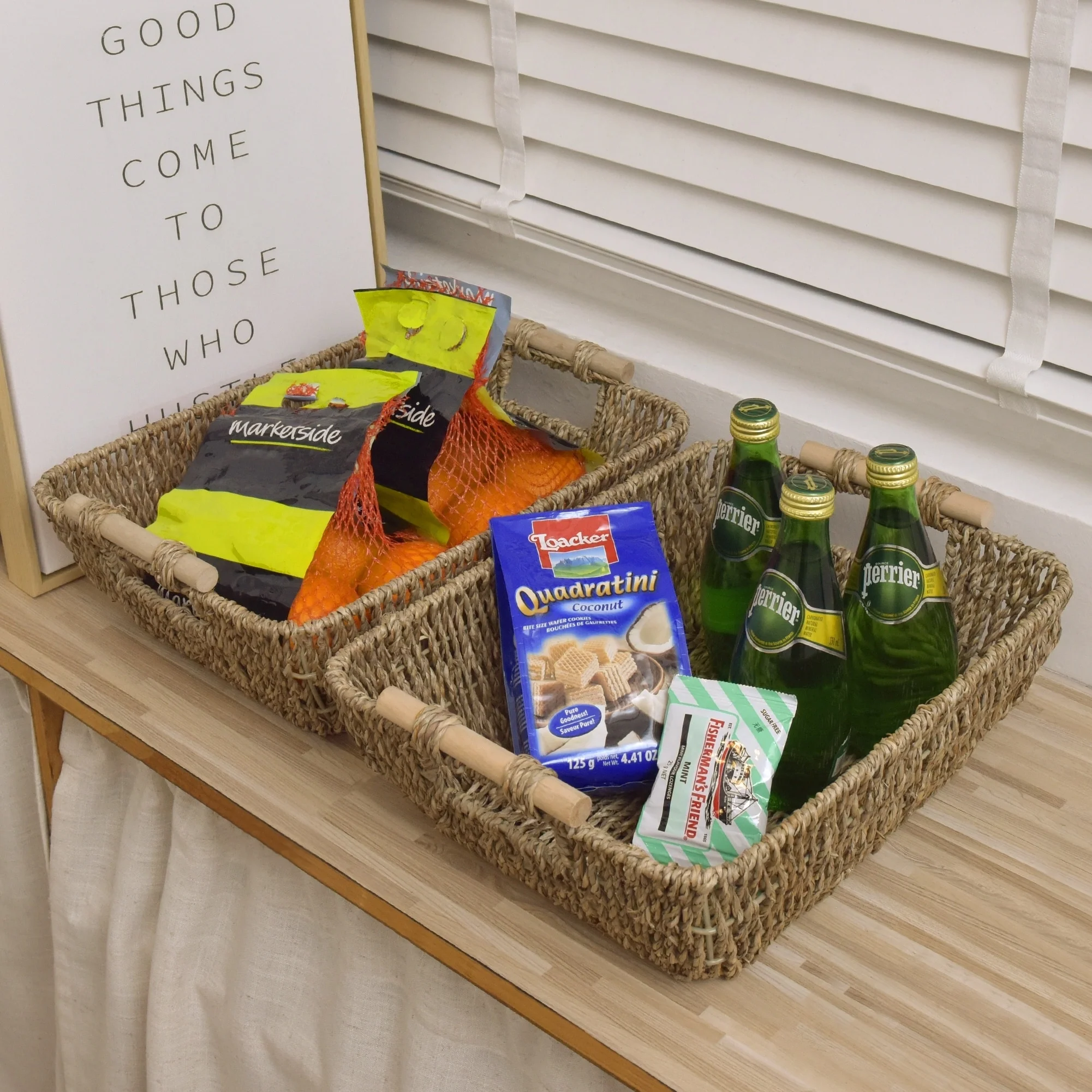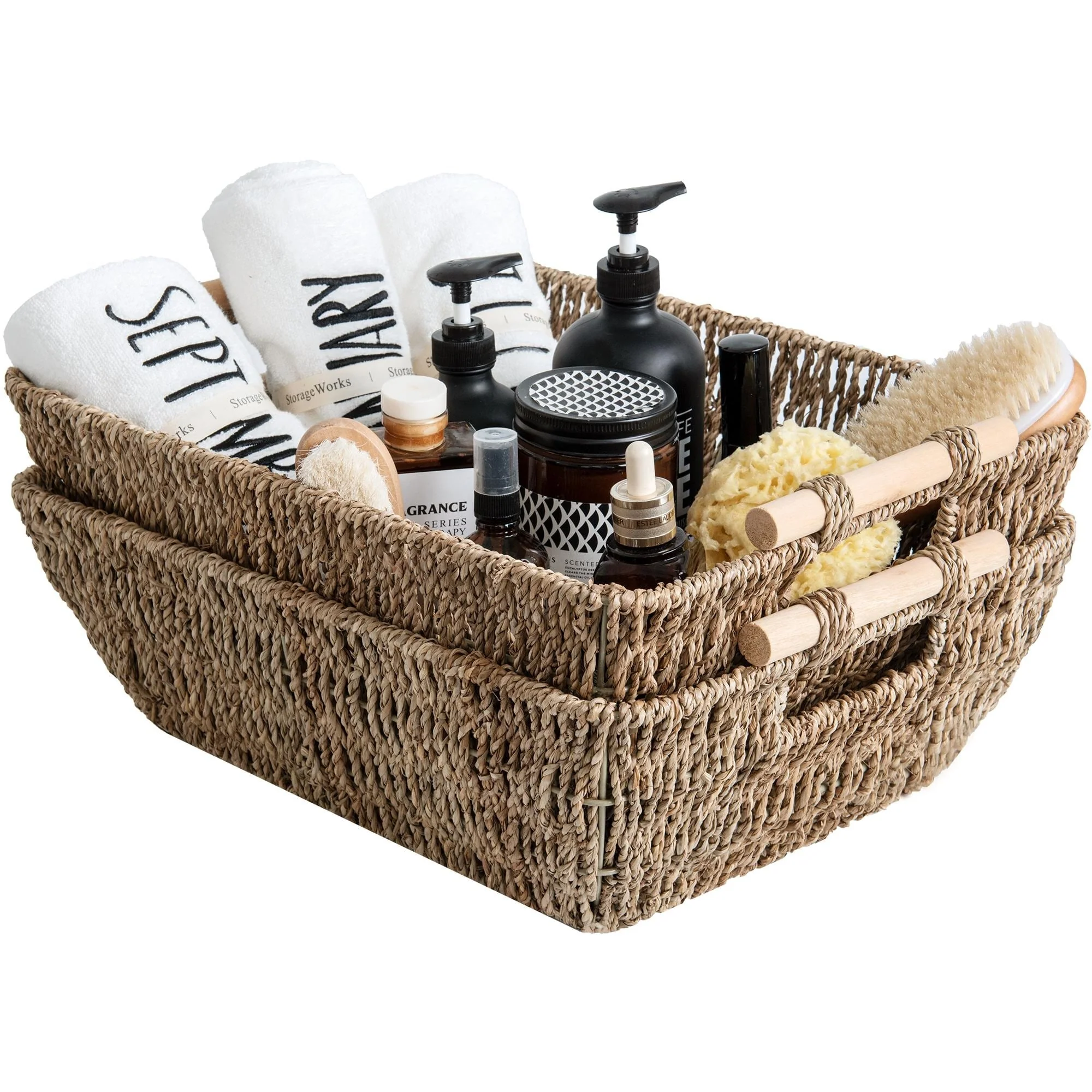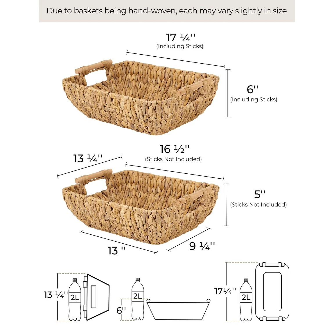 2-Pack Hand-Woven Storage Baskets with Wooden Handles, Wicker Basket for Organizing, Gift Choice