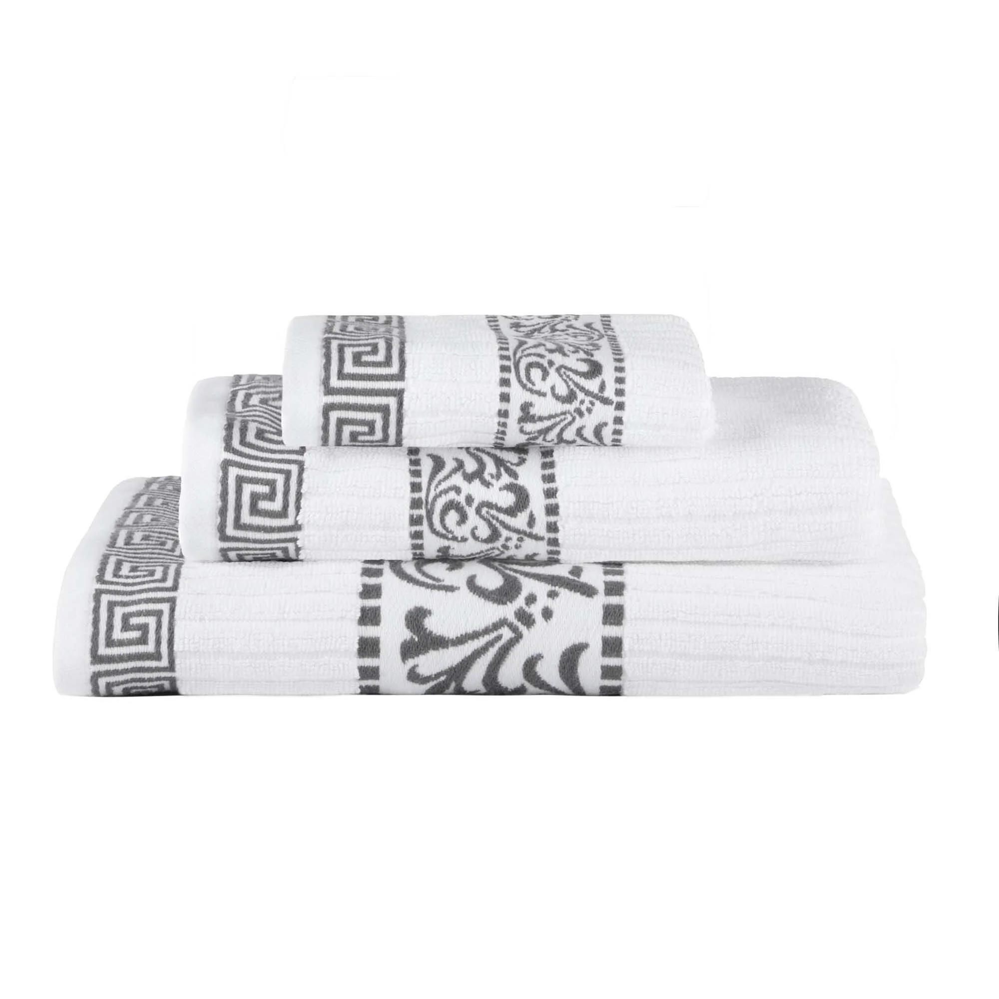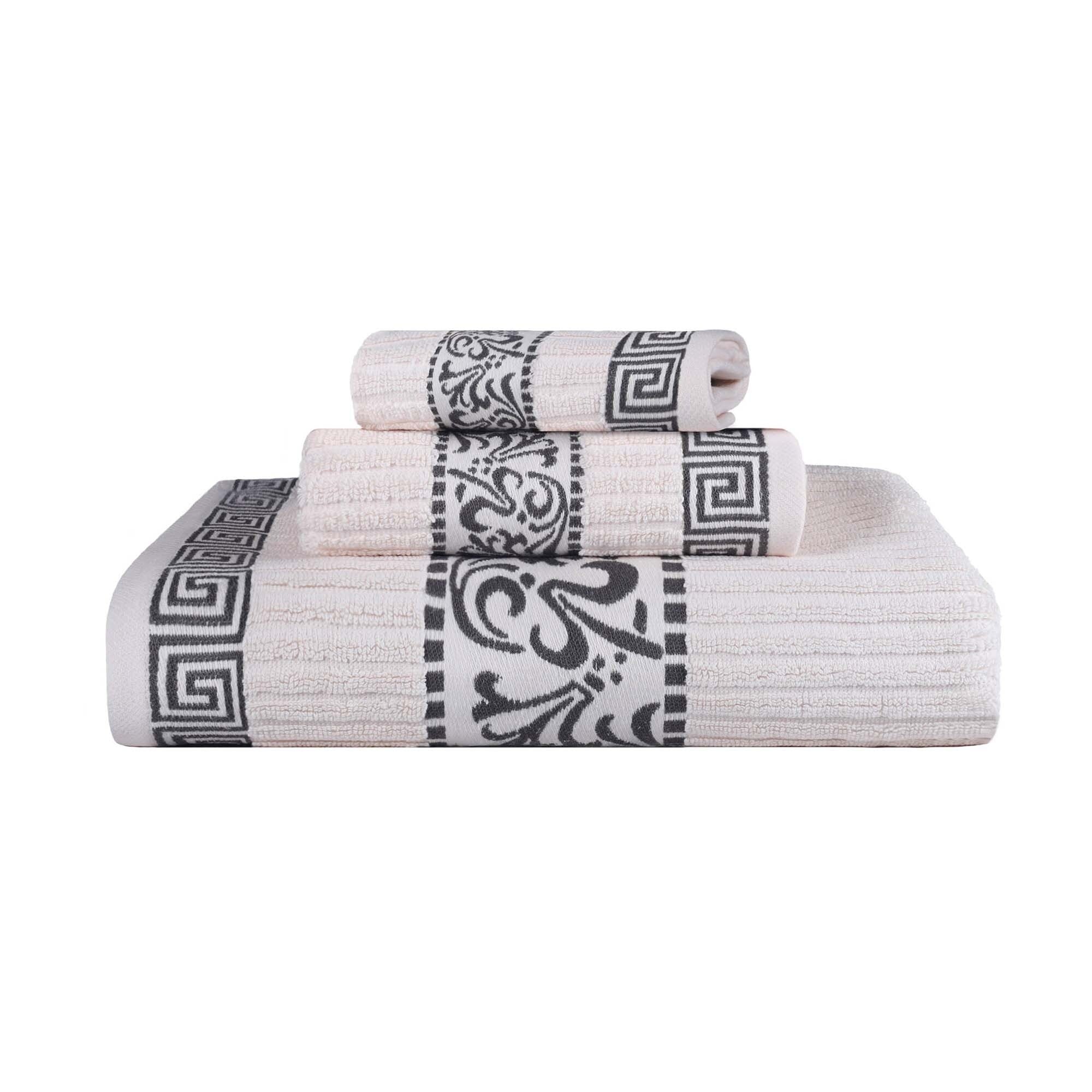 Superior Athens Cotton Floral Border Greek Key 3-Piece Towel Set