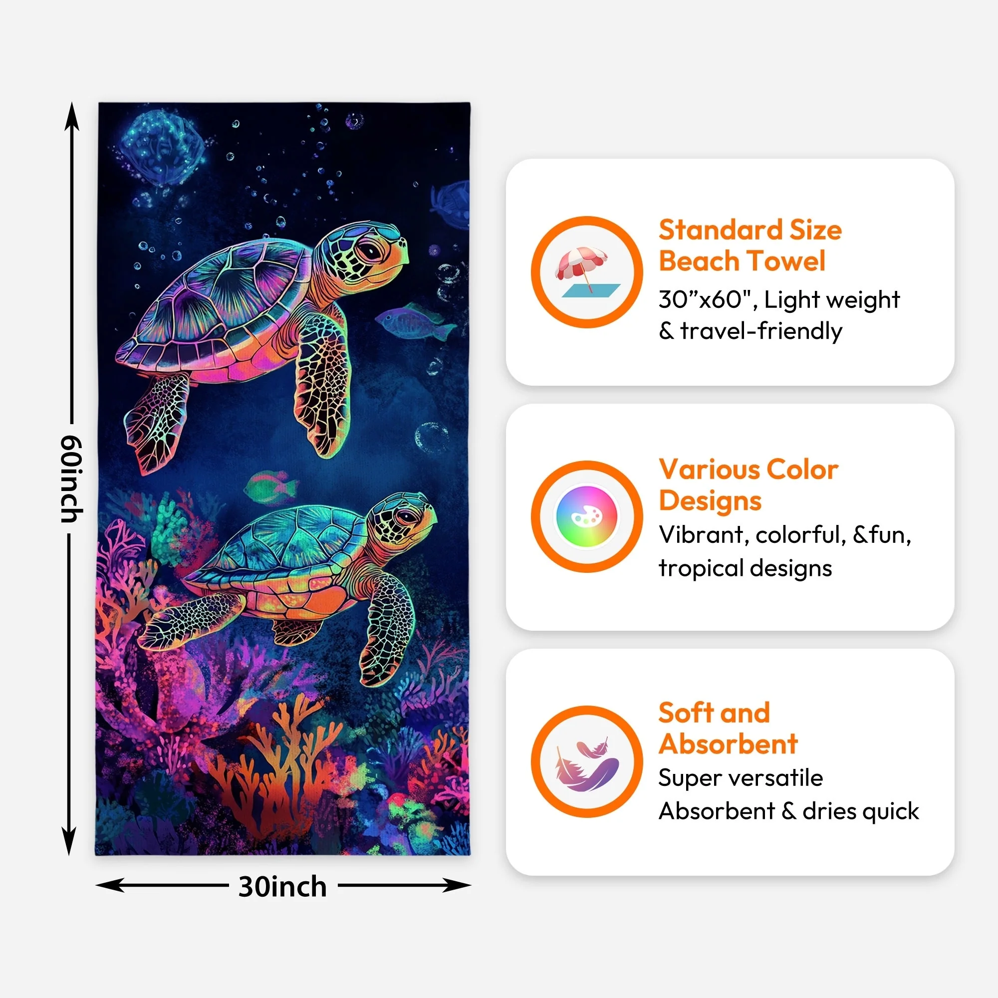 Sea Turtle Dolphin Large Beach Towel Quick Dry Absorbent 30"x60"/35"x70"