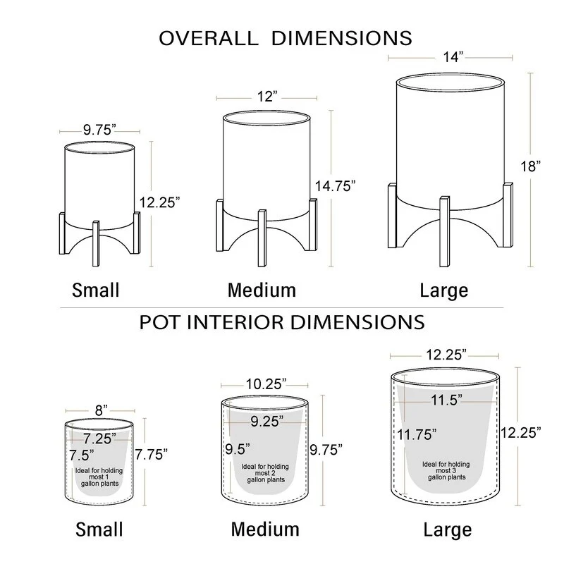 Everett Black Mid-Century Modern Indoor Metal Pot Planter with Arch Wood Base