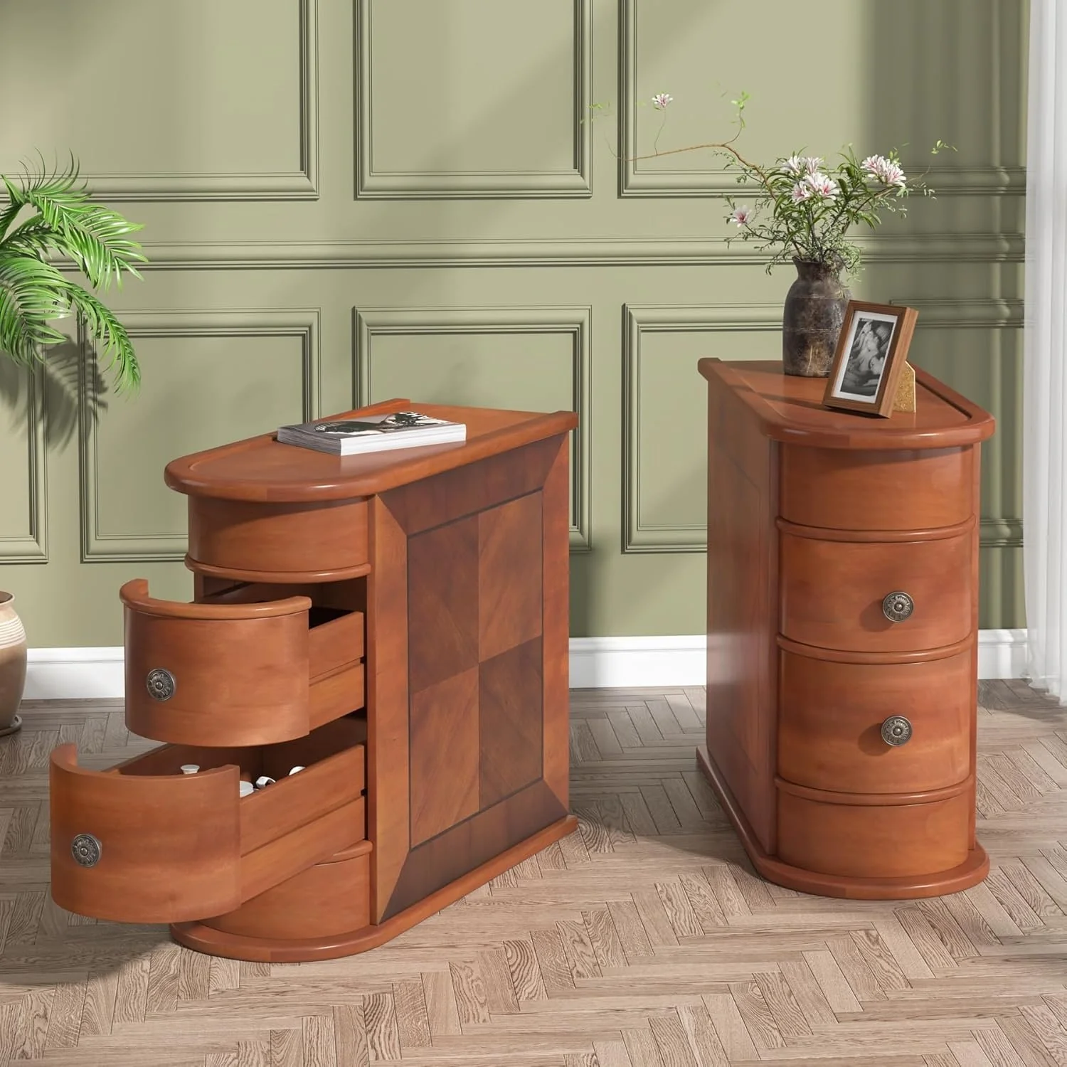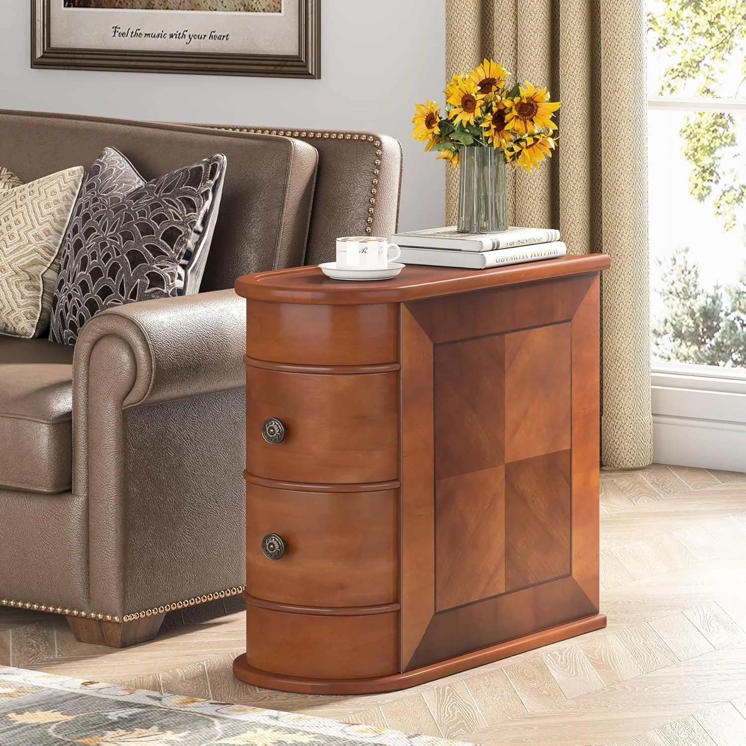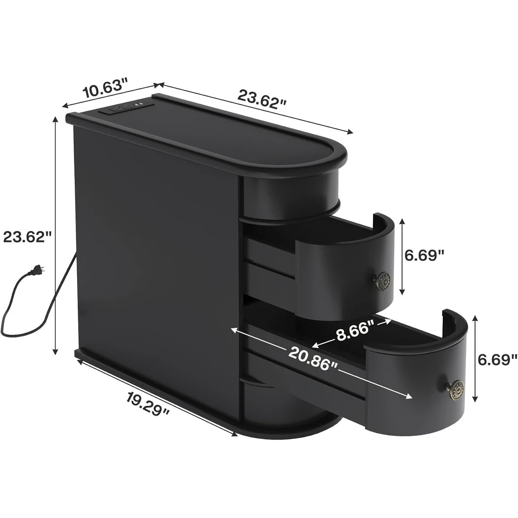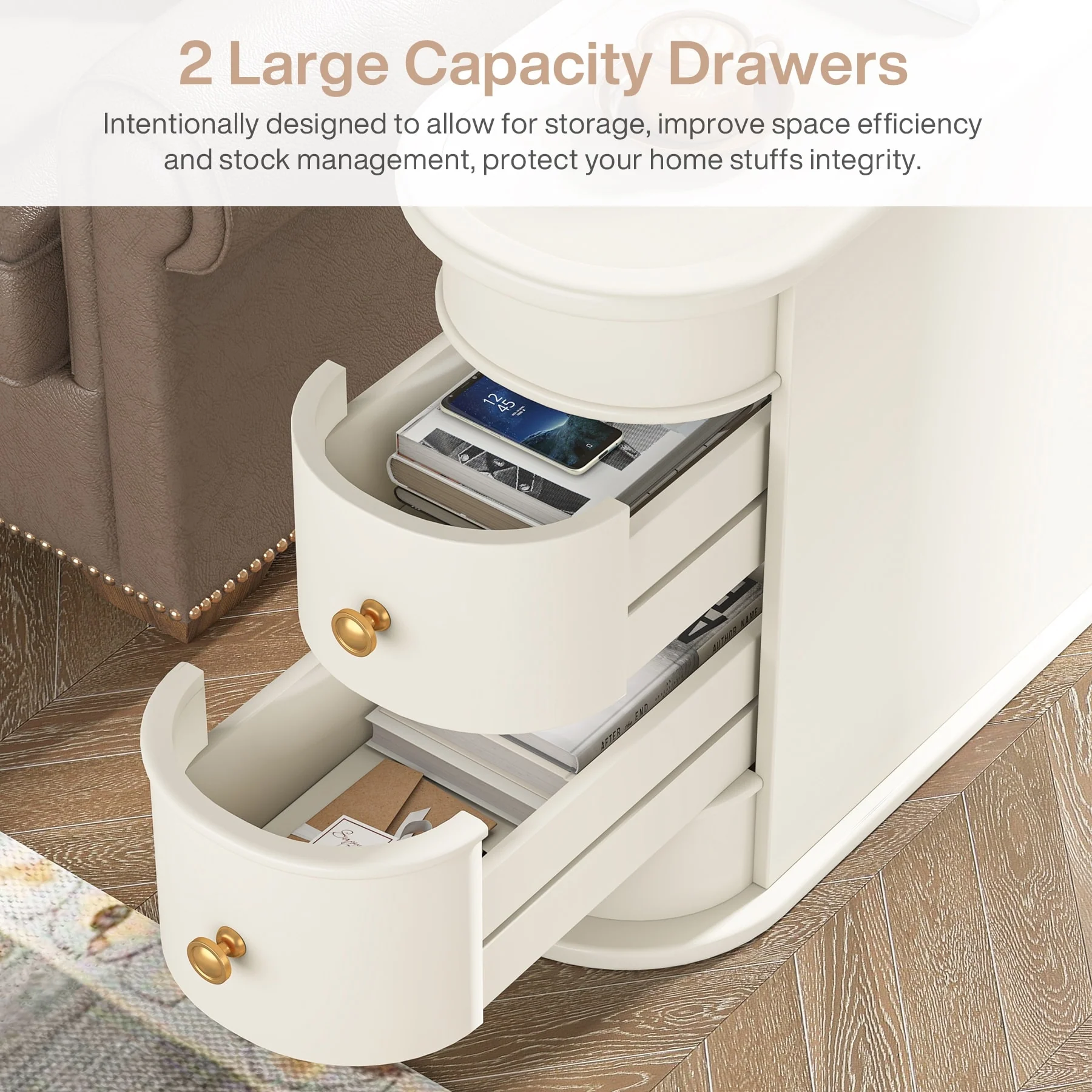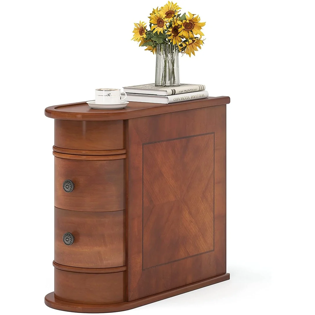 Sofa End Table, Wood Nightstand with 2 Drawers No Assembly Required
