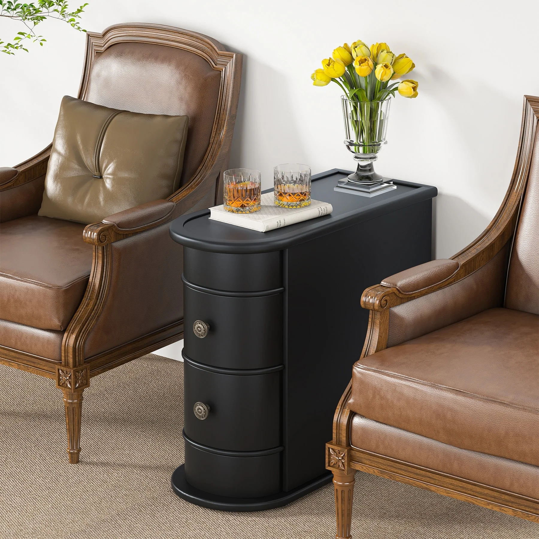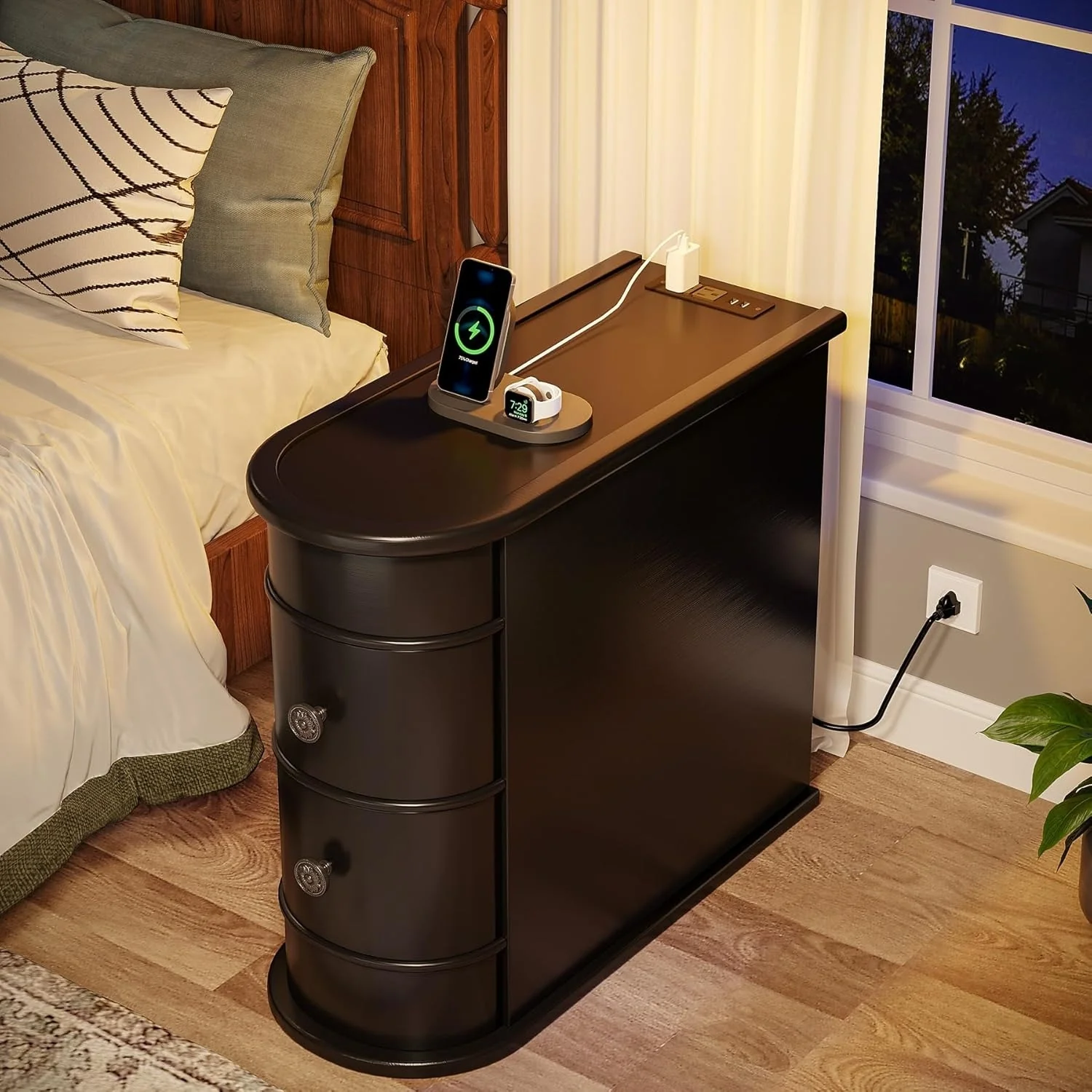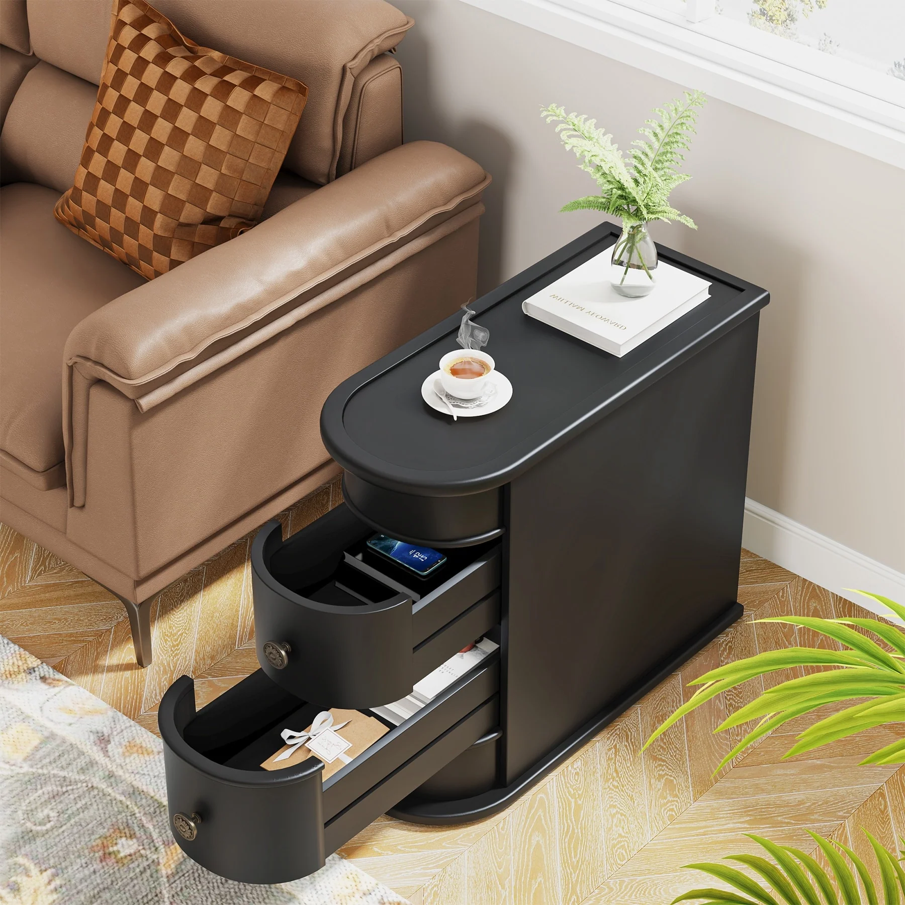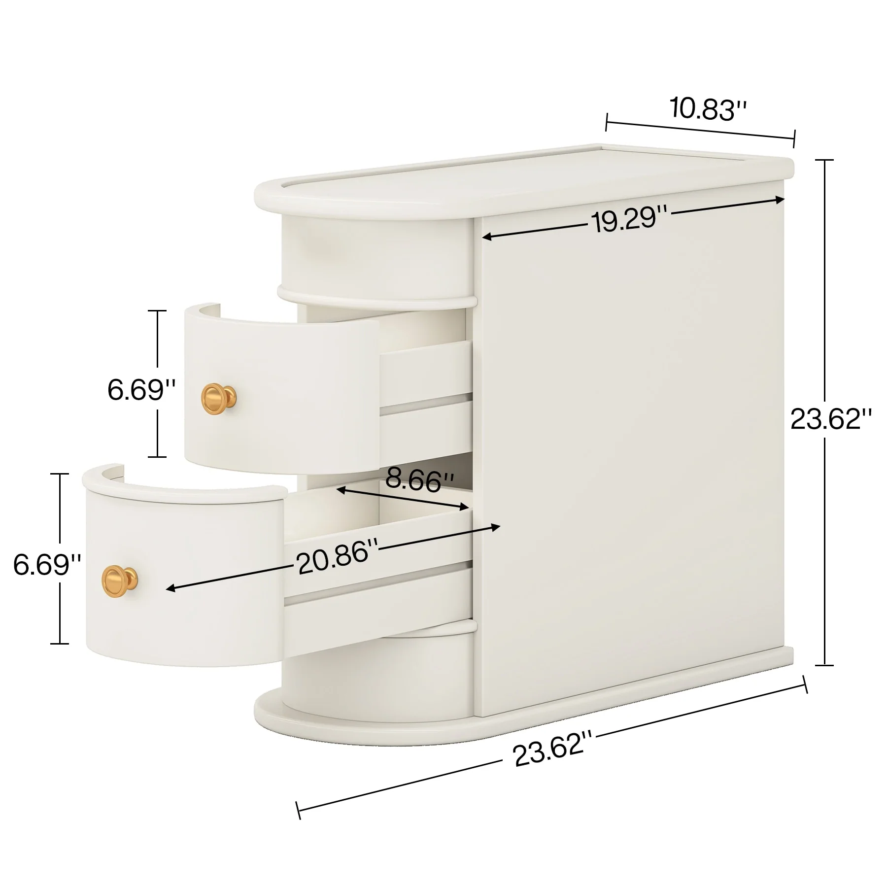 Sofa End Table, Wood Nightstand with 2 Drawers No Assembly Required