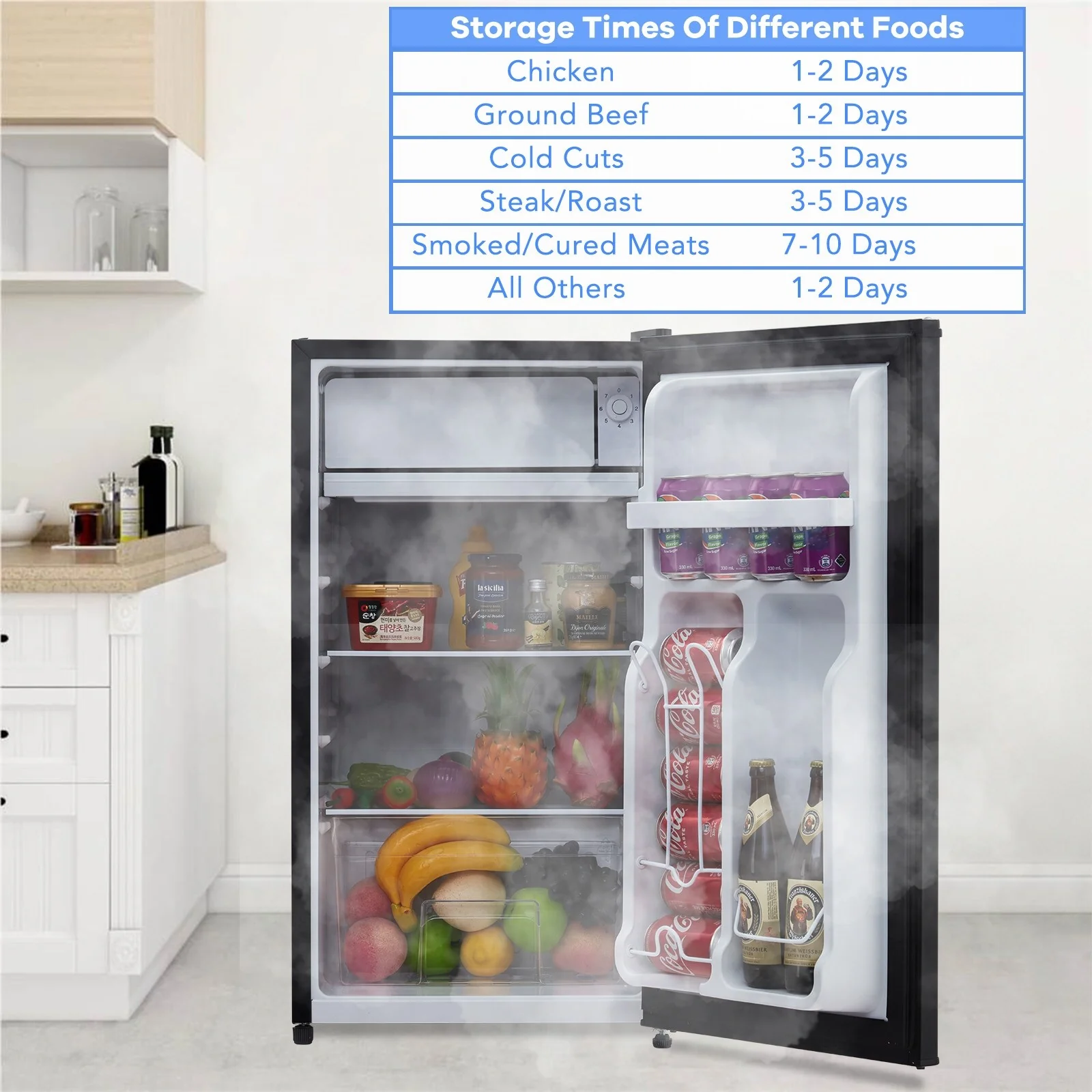3.2 Cu.Ft Compact Refrigerator with Freezer, Single Door Mini Fridge