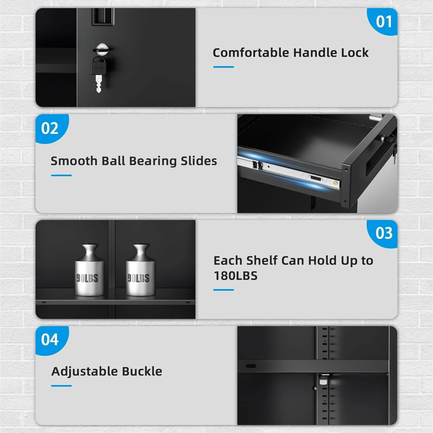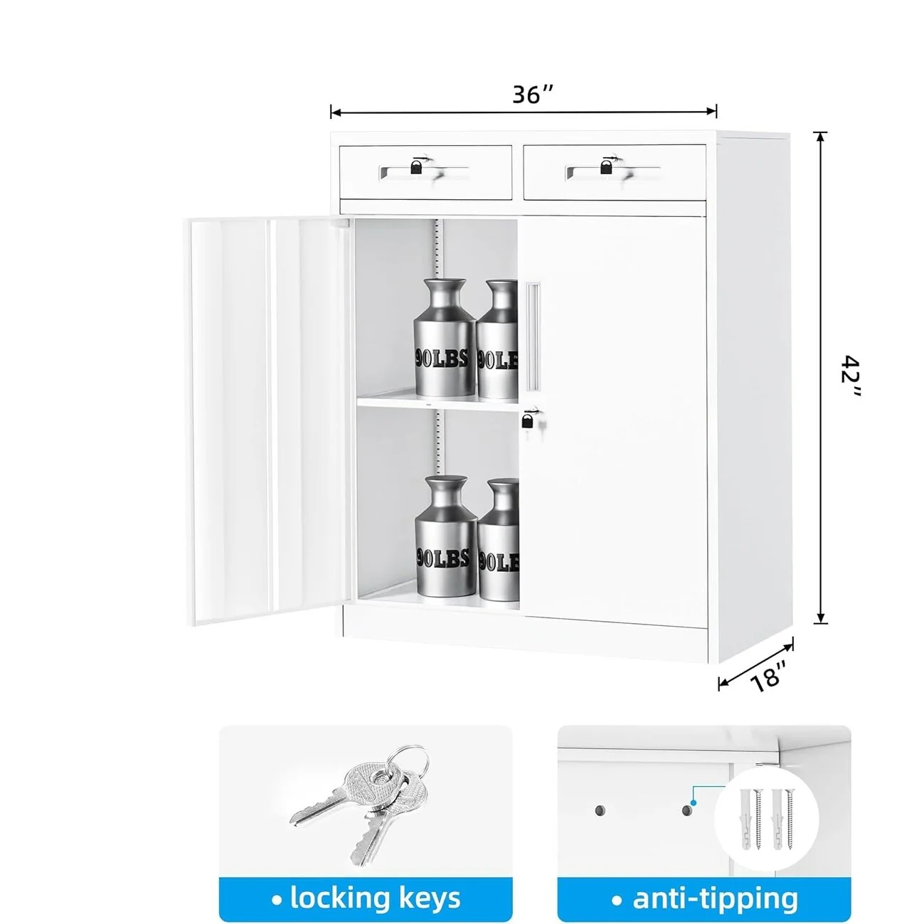 42'' Locking Metal Storage File Cabinet with Drawers and Adjustable Shelves for Home Office, Garage