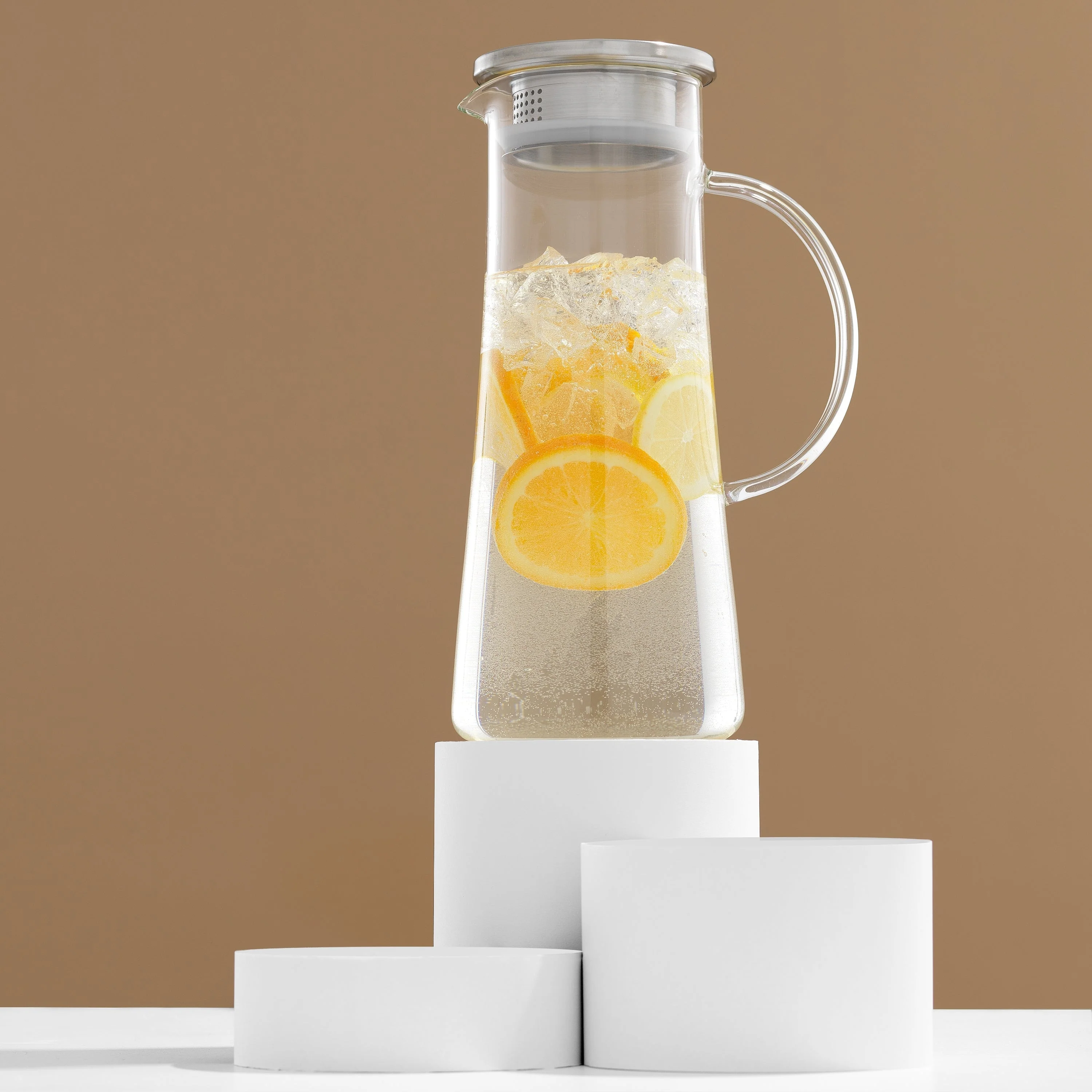JoyJolt Breeze Glass Drink Water Pitcher with Stainless Steel Lid - 50 oz