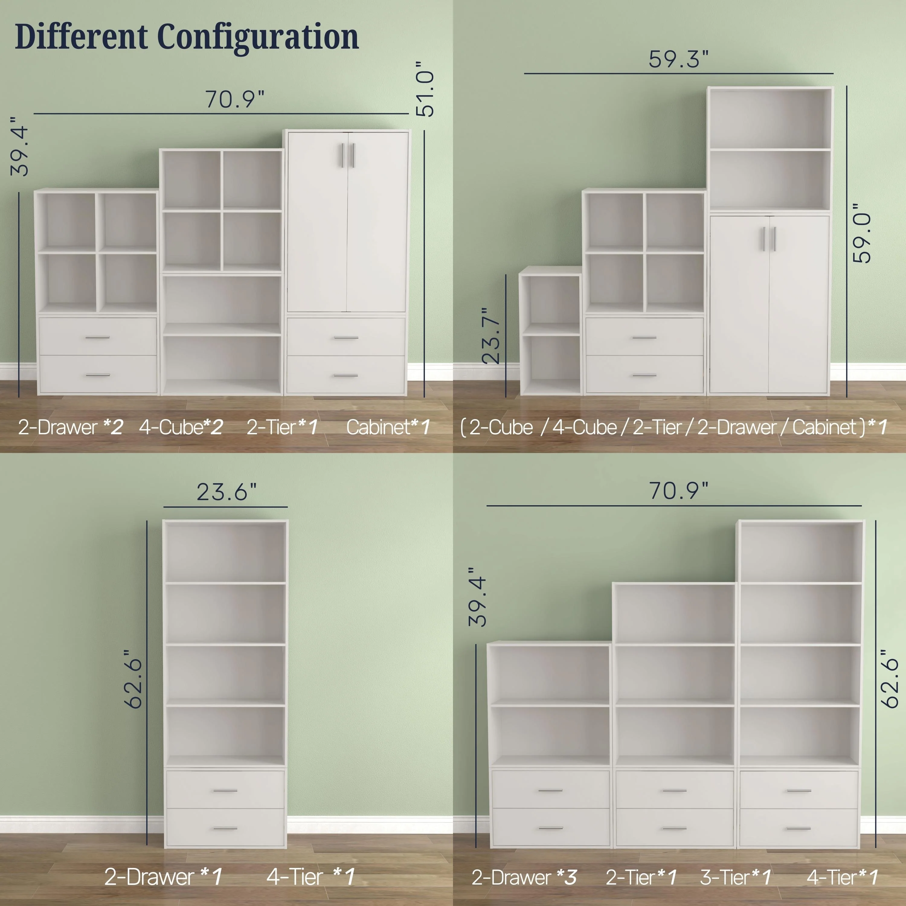 DH BASIC Modern Wood Customizable Stackable Storage Organizer - Cube Shelves, Drawer Cabinet, Bookcase with Doors by Denhour