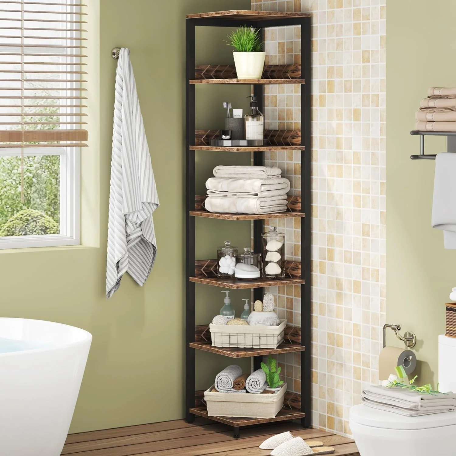 6-Tier Corner Shelf, 76.7-Inch Tall Narrow Bookshelf Storage Rack