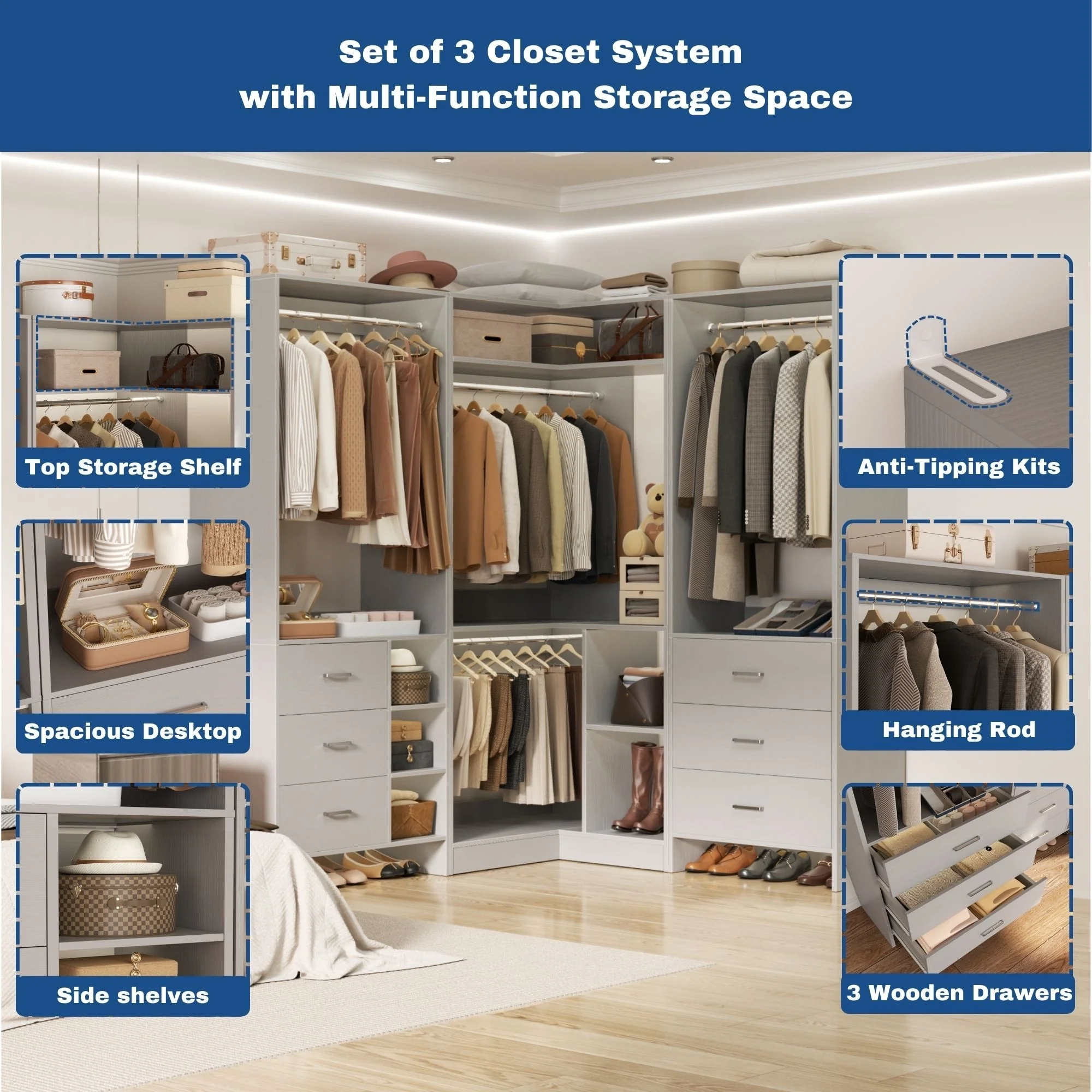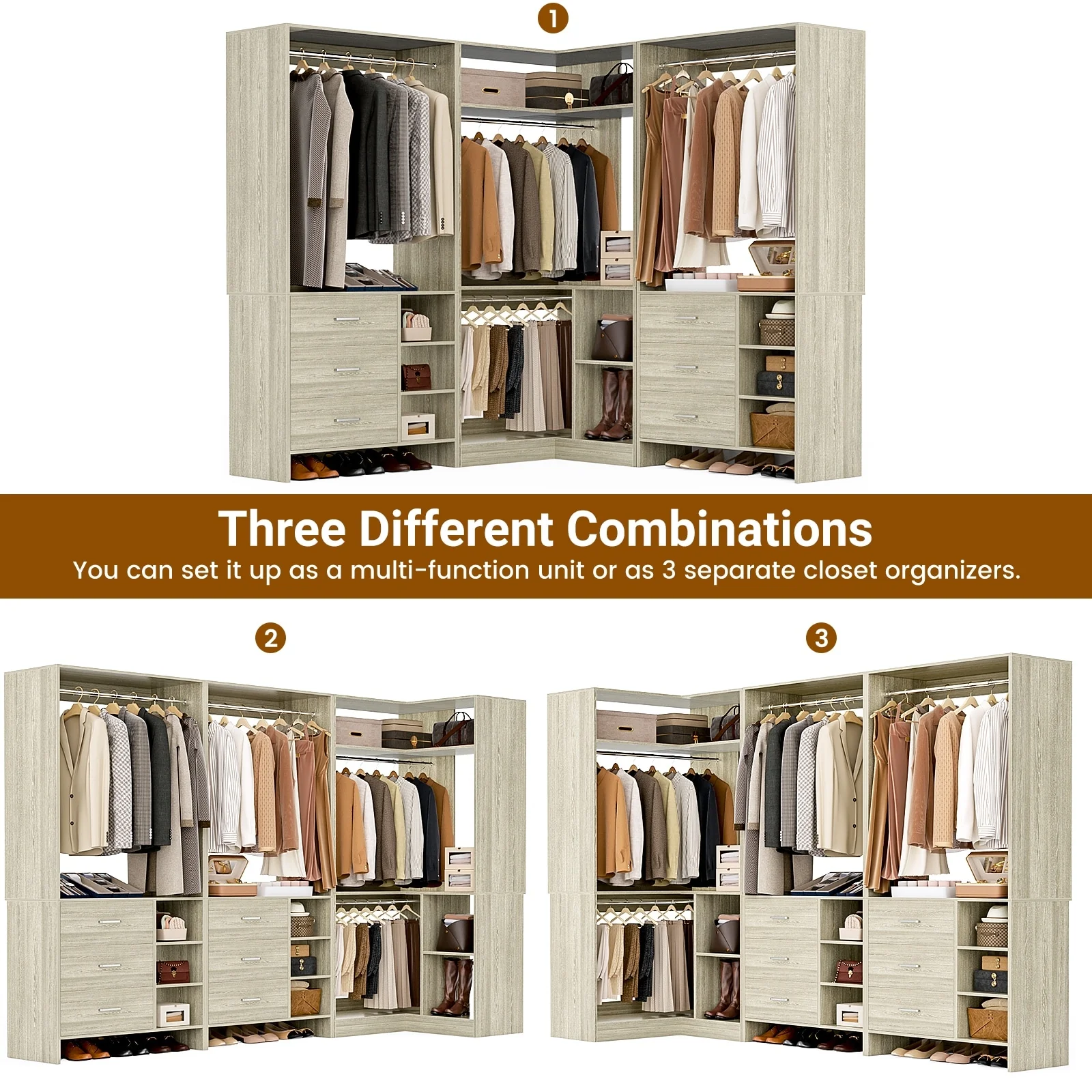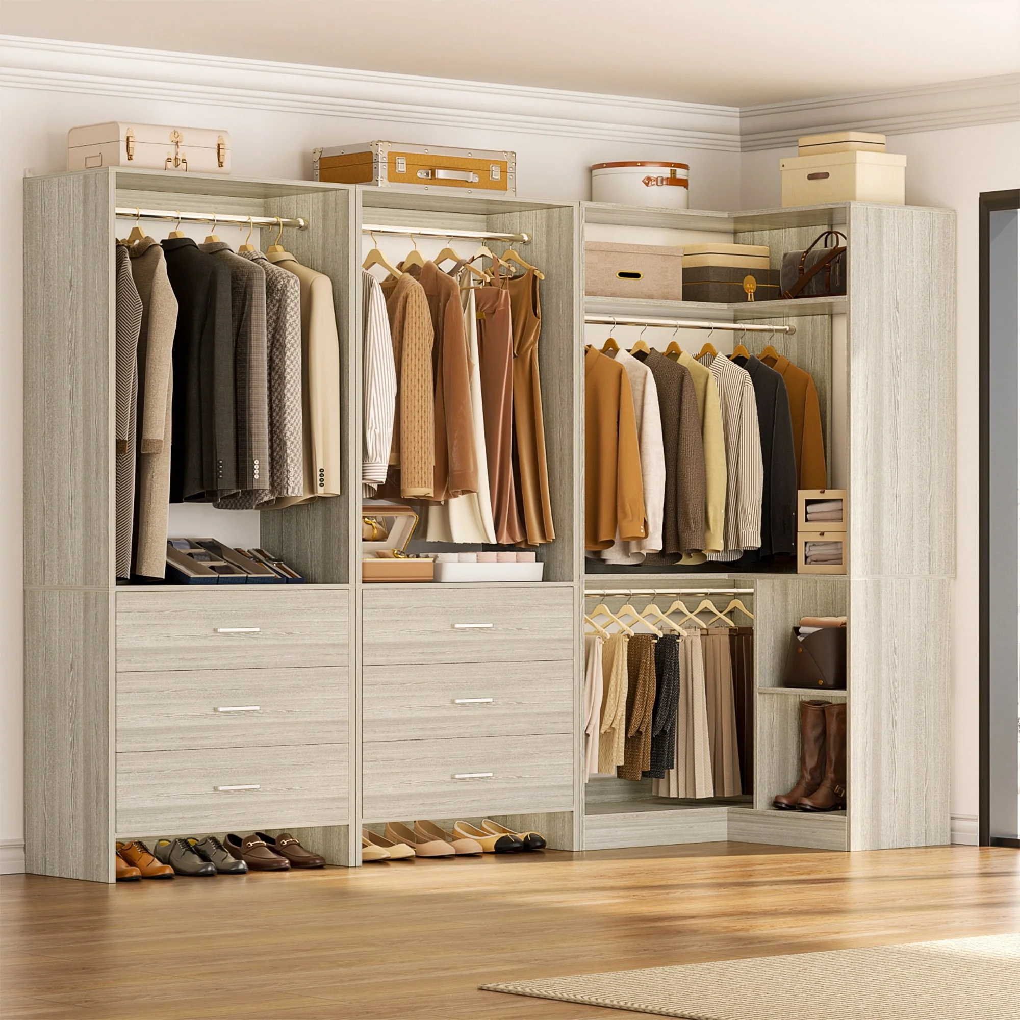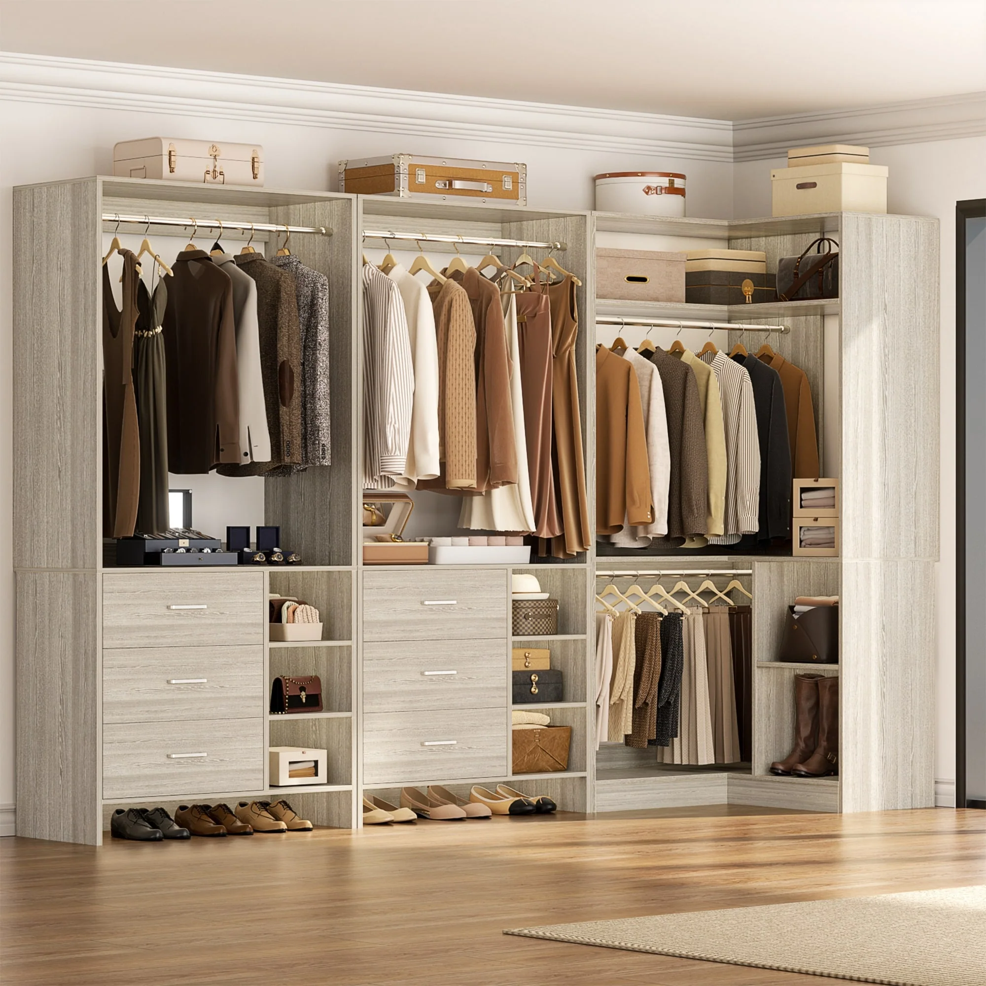 Cimly Set of 3 Freestanding Corner Closet System, Space-saving Closet Organizer for Walk-in/ Reach-in Closet