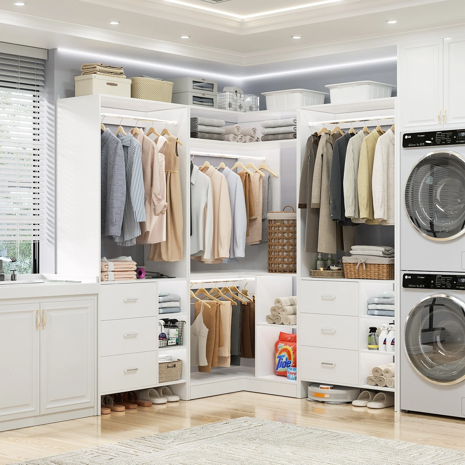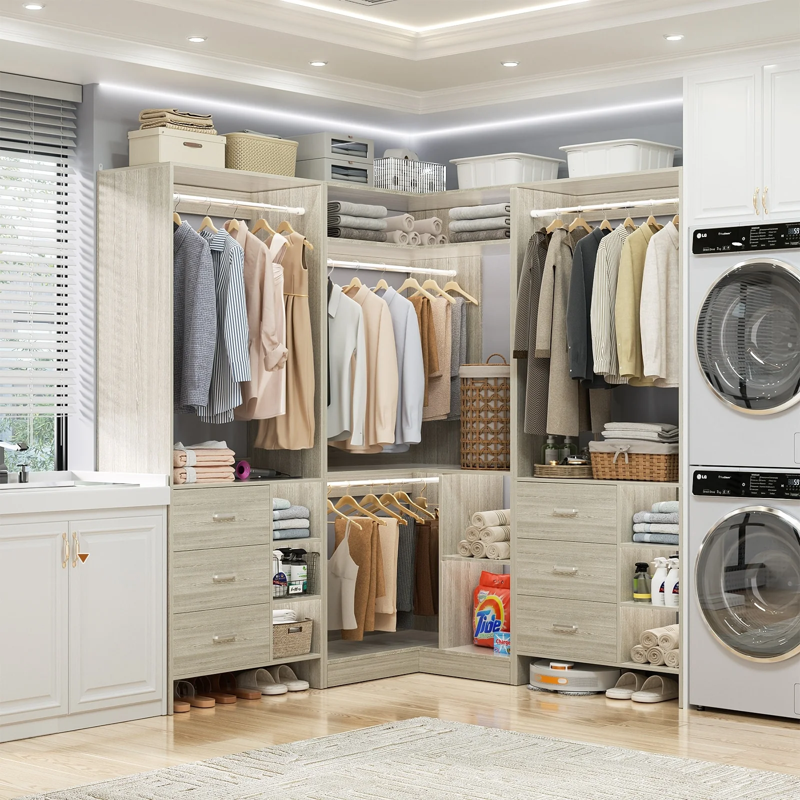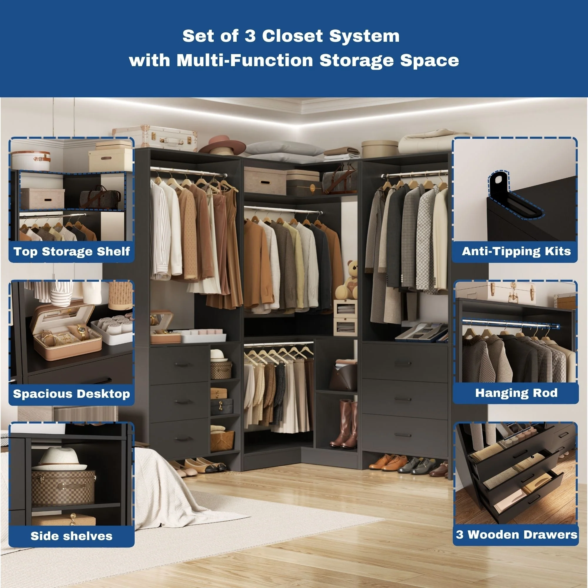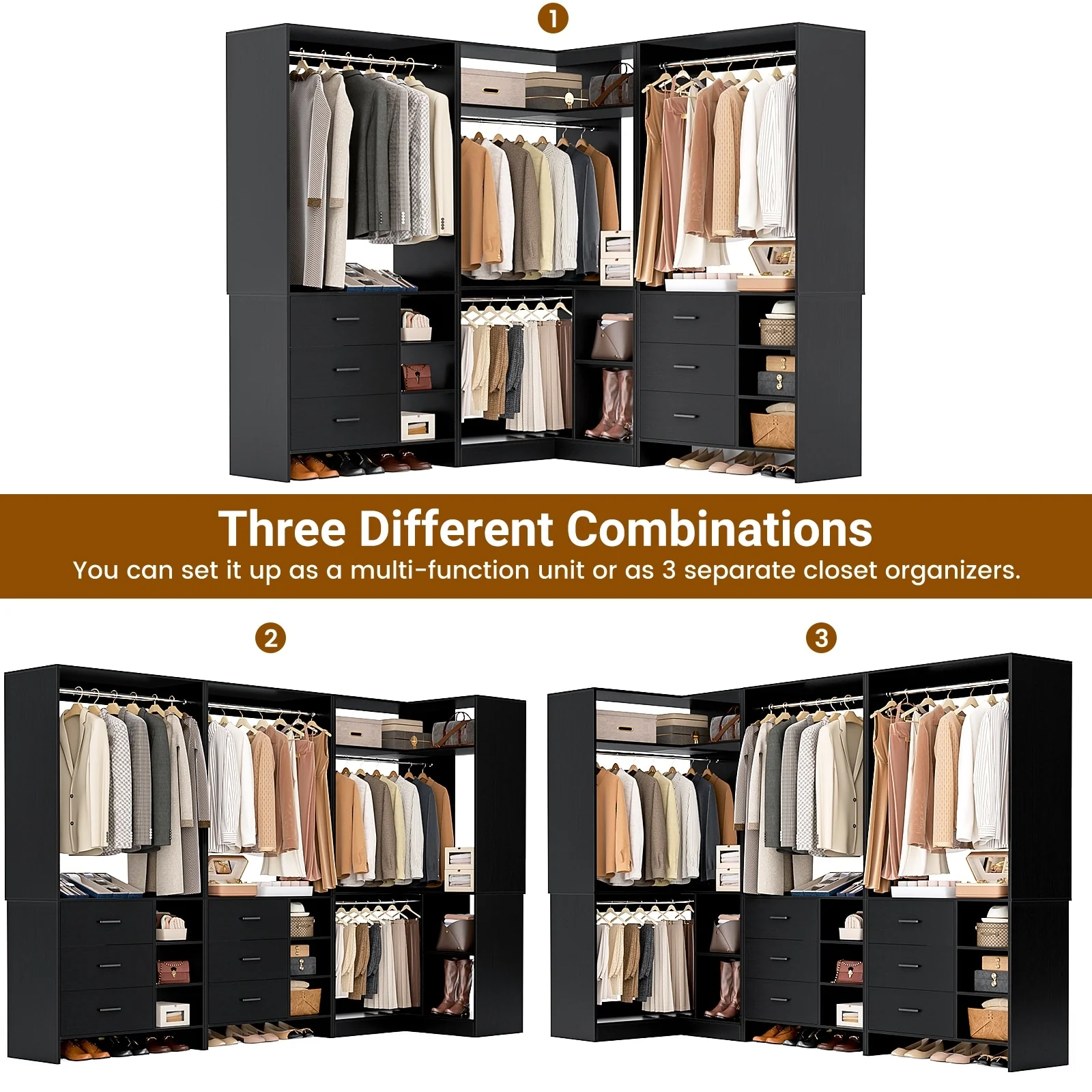 Cimly Set of 3 Freestanding Corner Closet System, Space-saving Closet Organizer for Walk-in/ Reach-in Closet