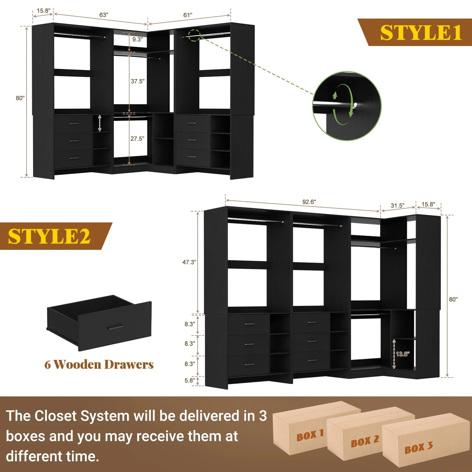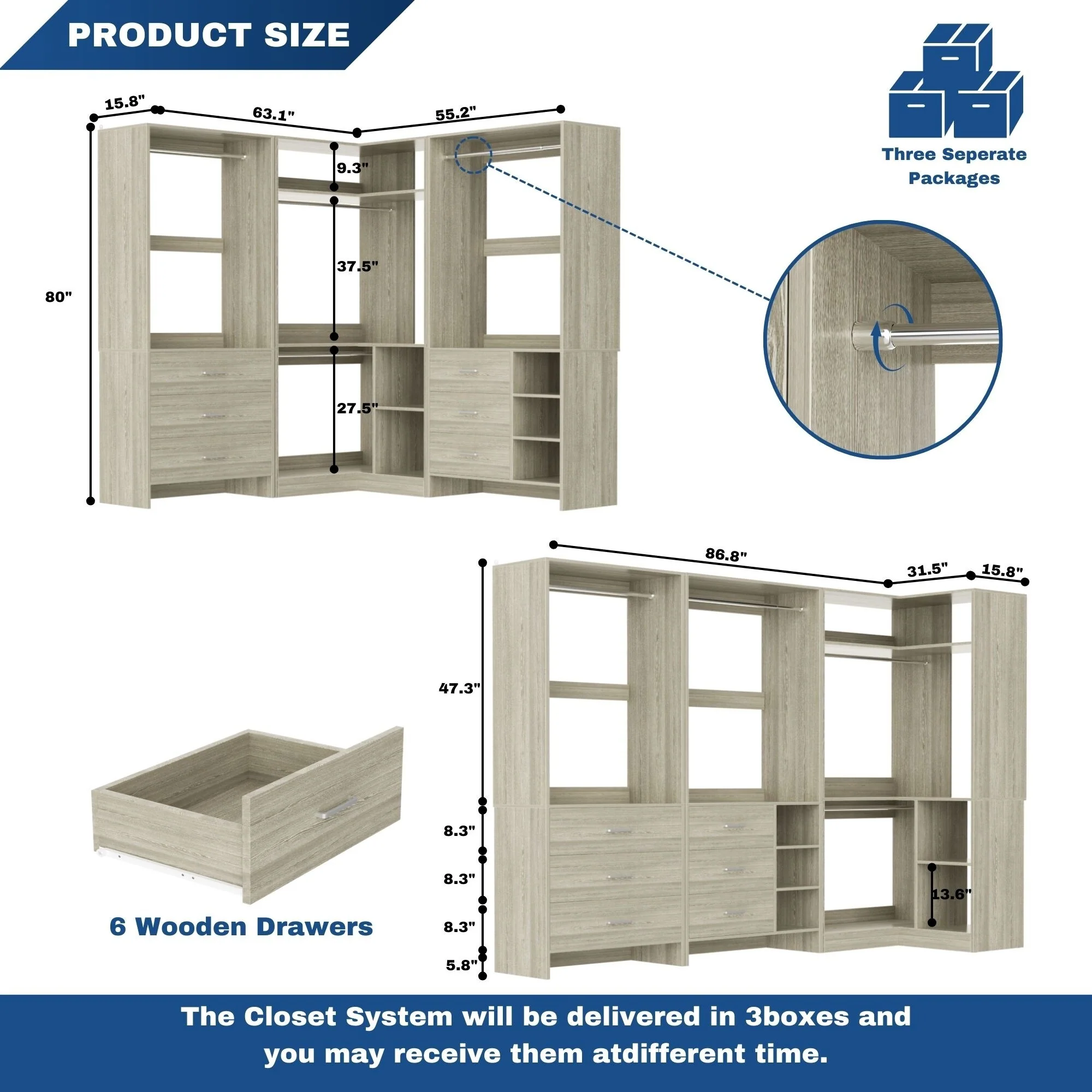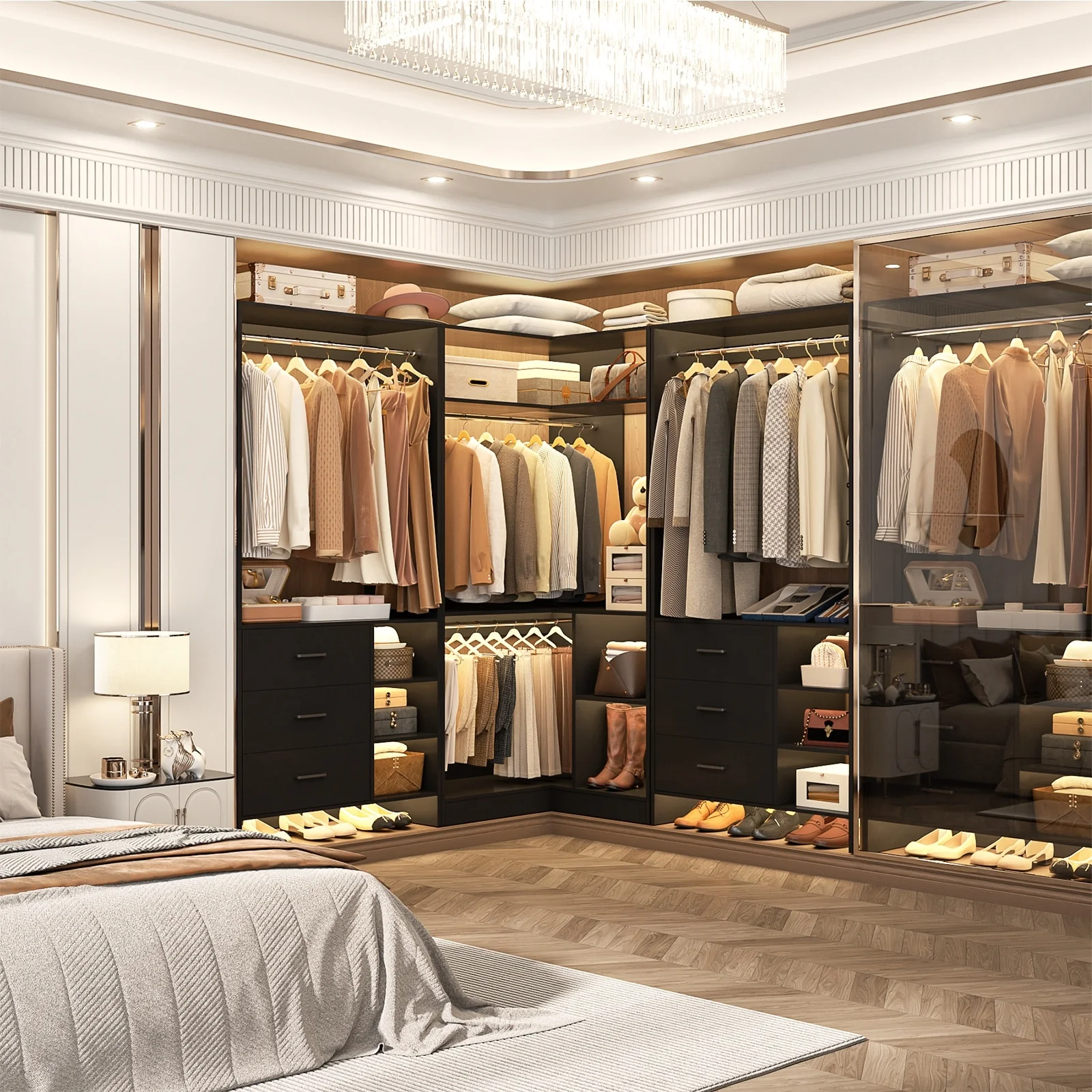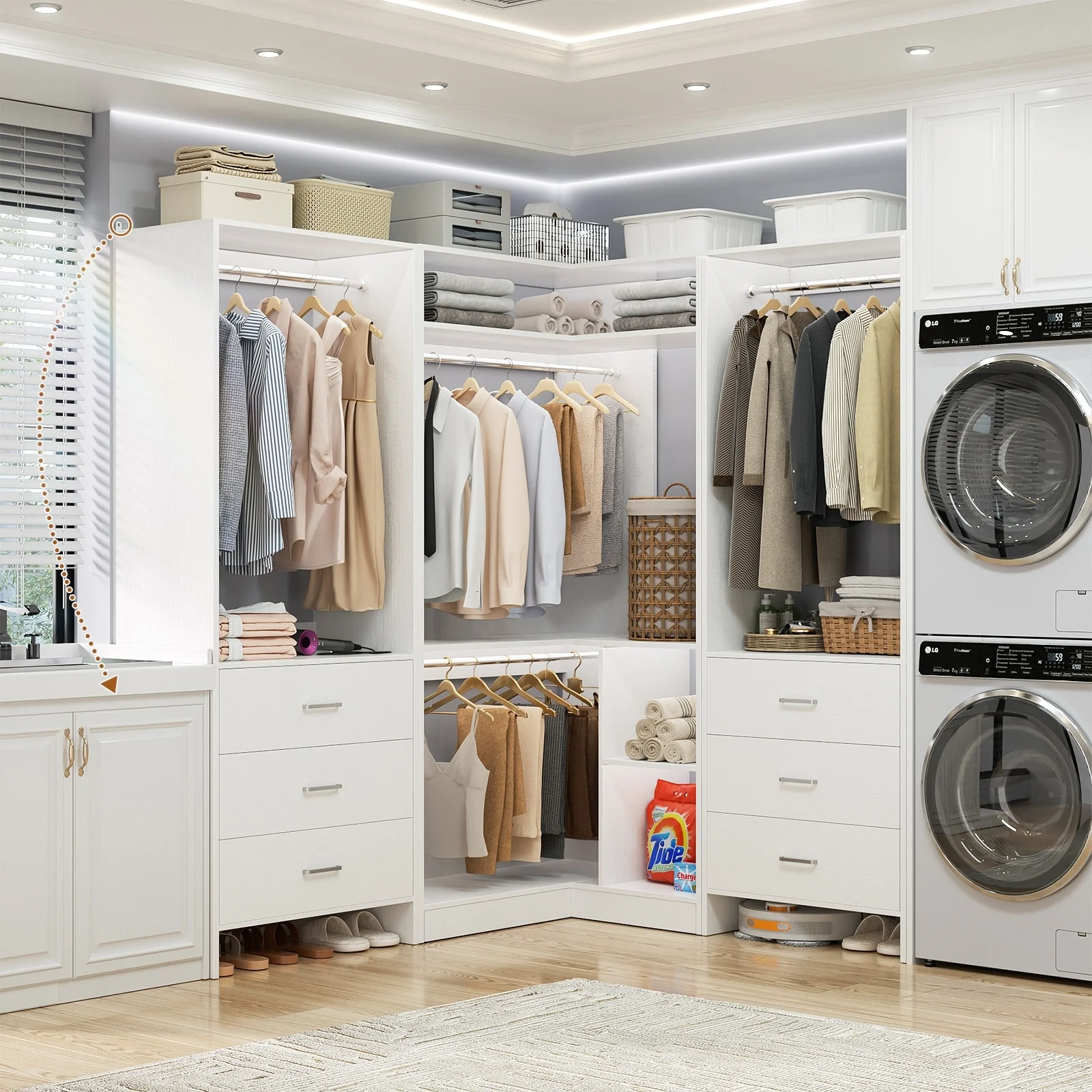 Cimly Set of 3 Freestanding Corner Closet System, Space-saving Closet Organizer for Walk-in/ Reach-in Closet