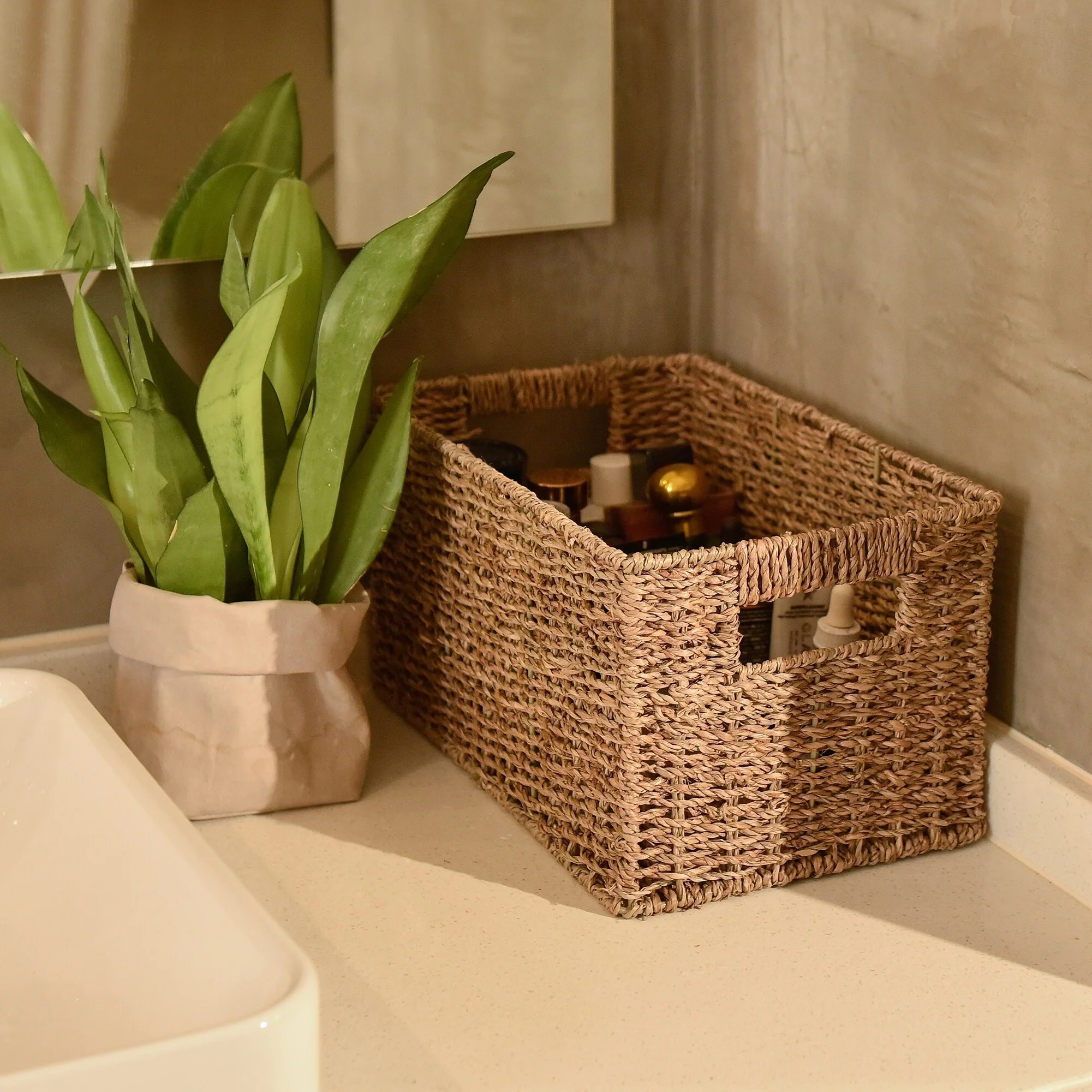 StorageWorks 2-Pack Wicker Storage Basket with Built-in Handle - 8.25"D x 13.25"W x 7"H