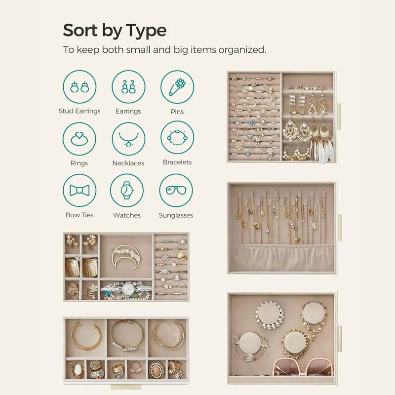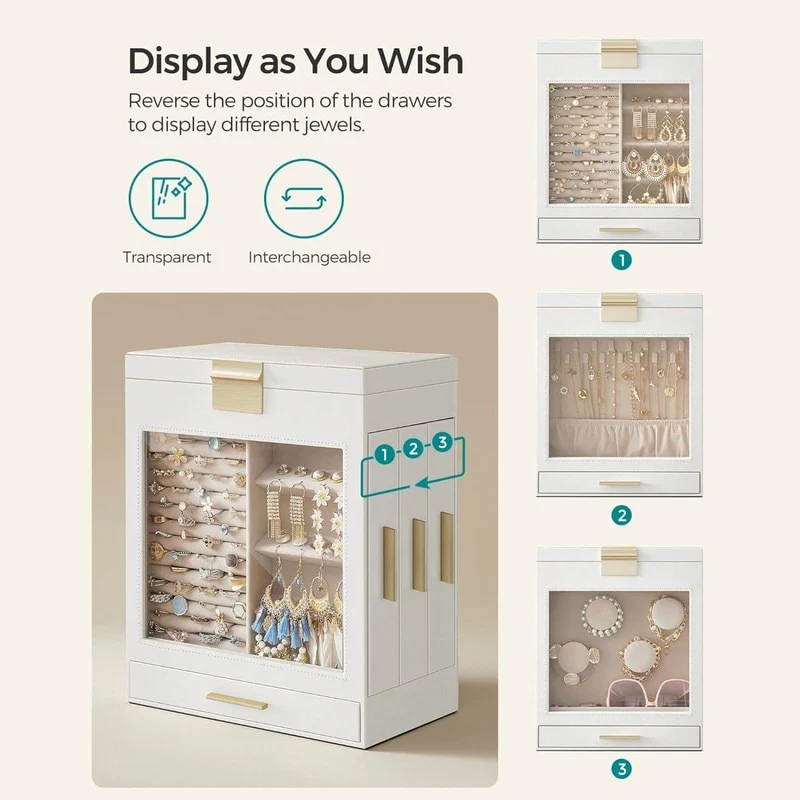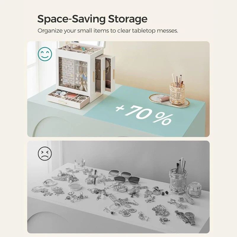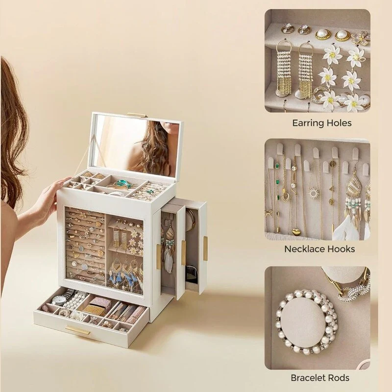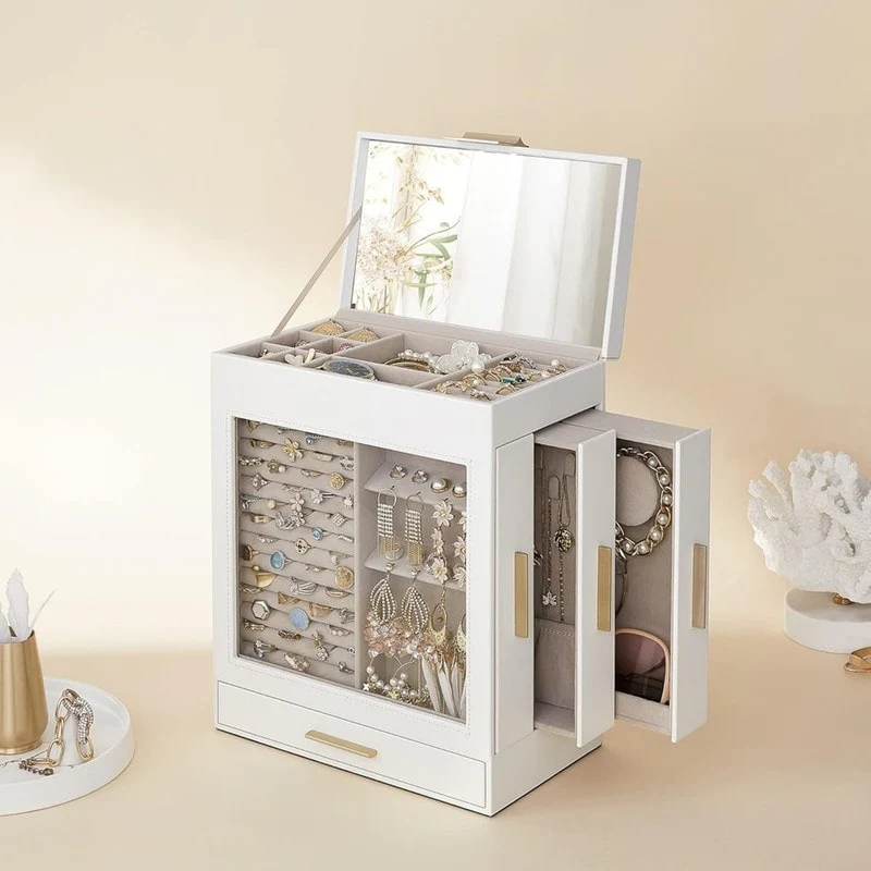 5-Layer Jewelry Box with 3 Side Drawers and Big Mirror