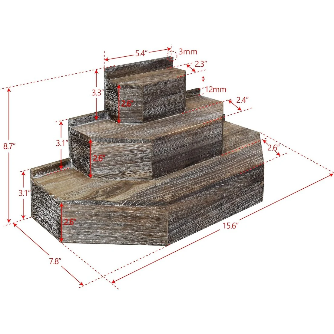 3-Tier Wood Stair Step Shelf Display Stand - S