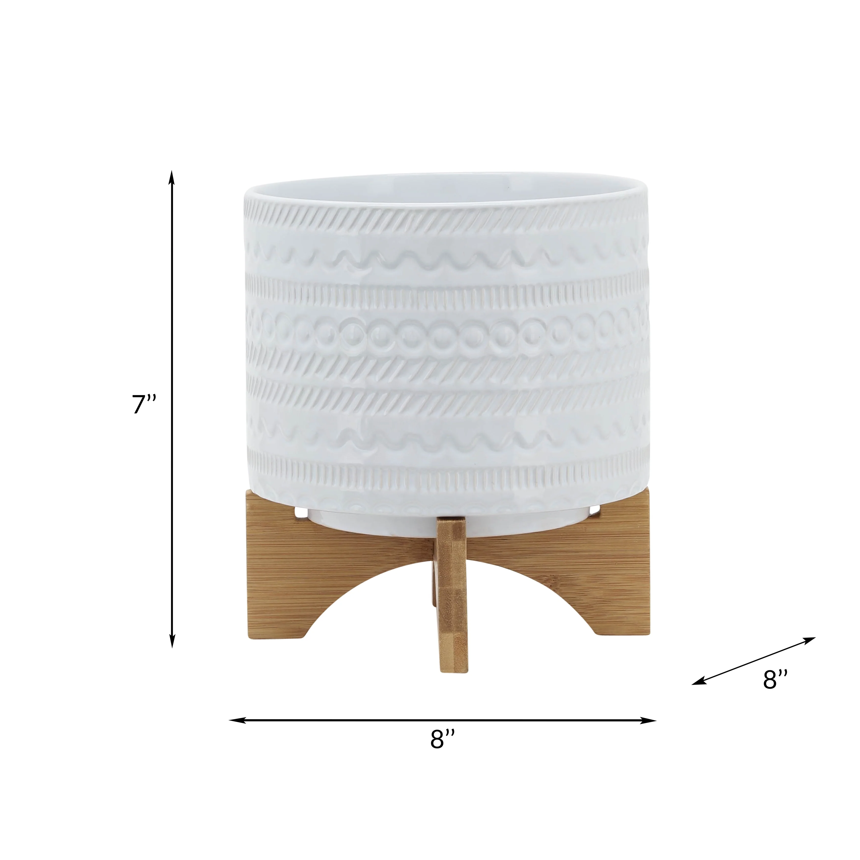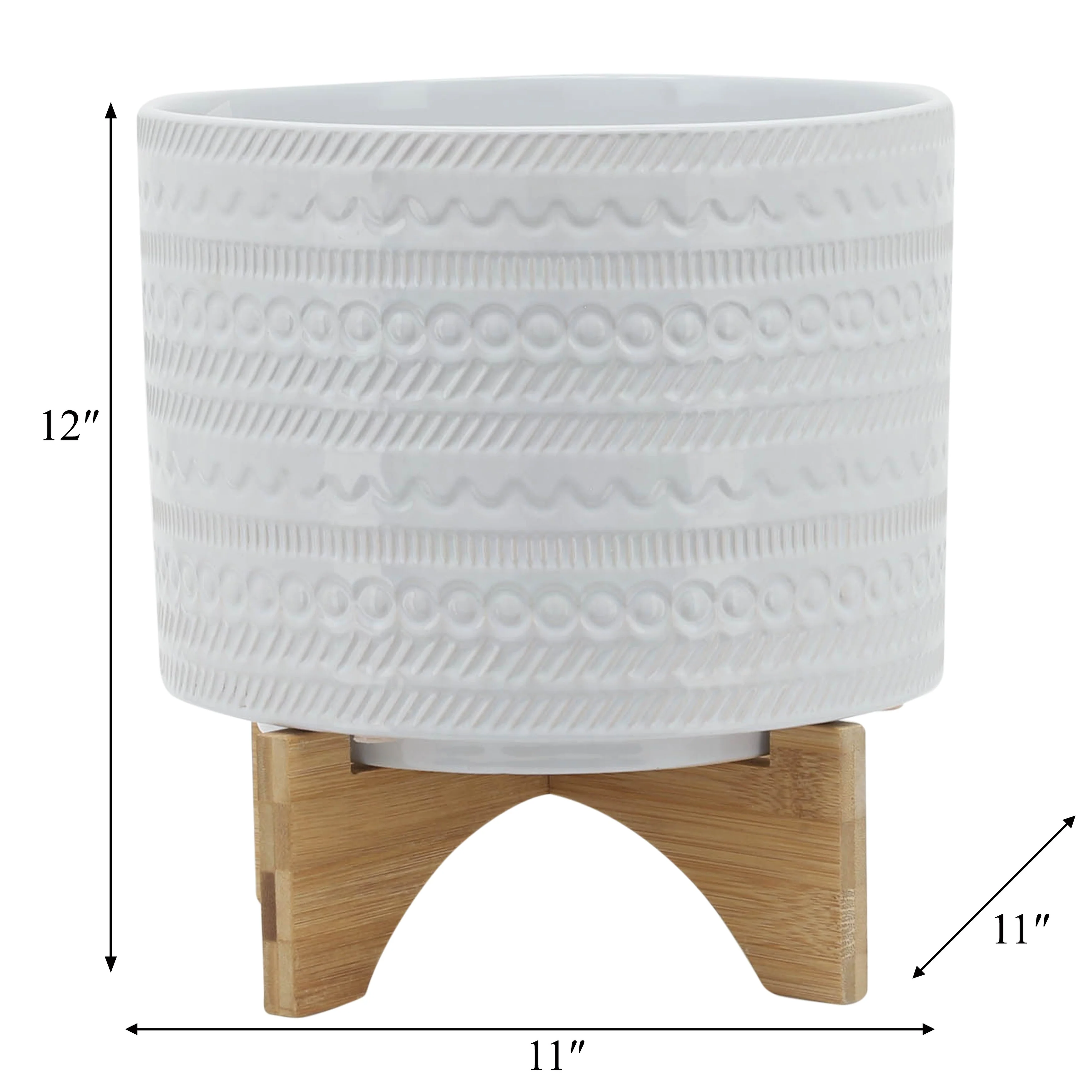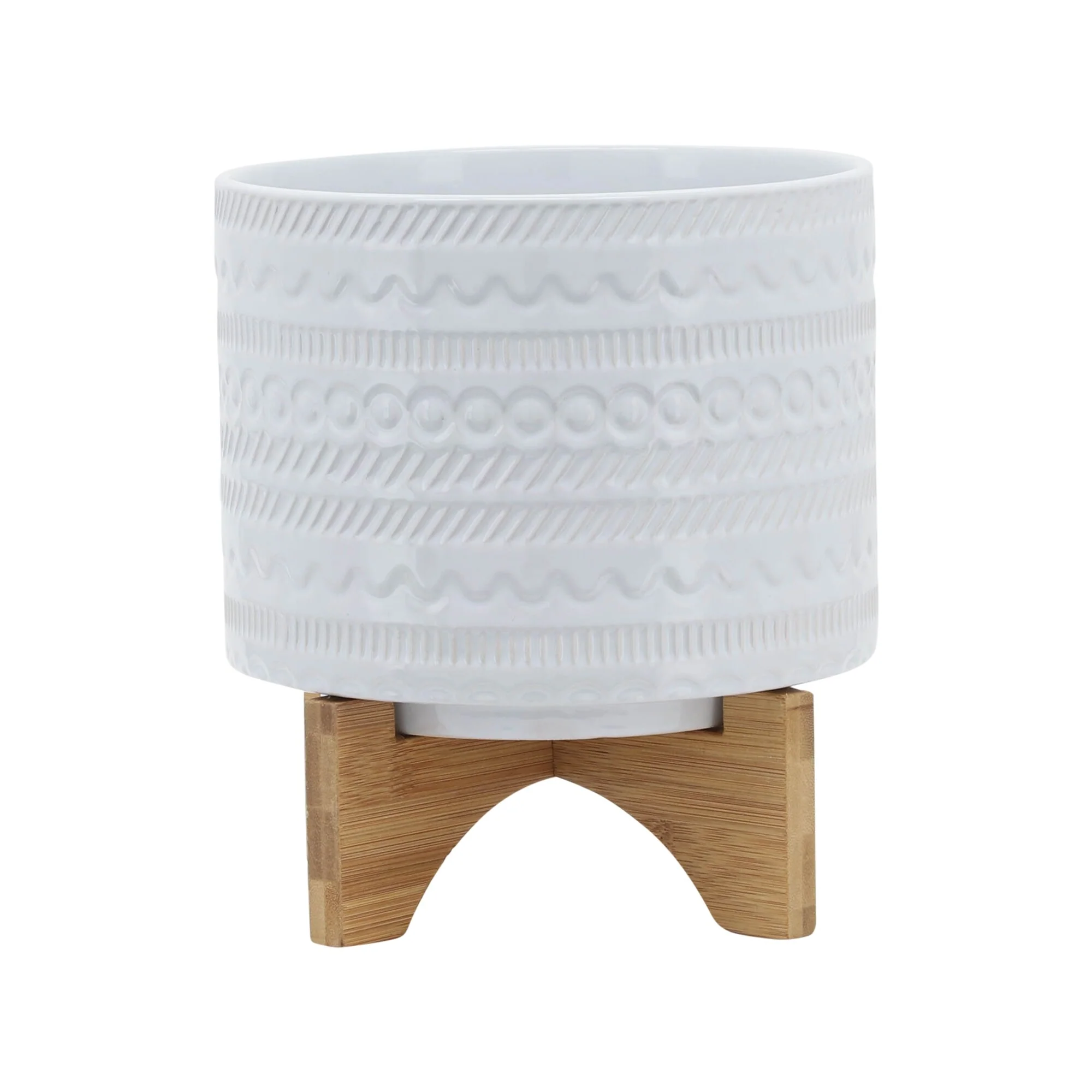 Sagebrook Home Tribal Ceramic Planter Pot with Natural Wood Stand