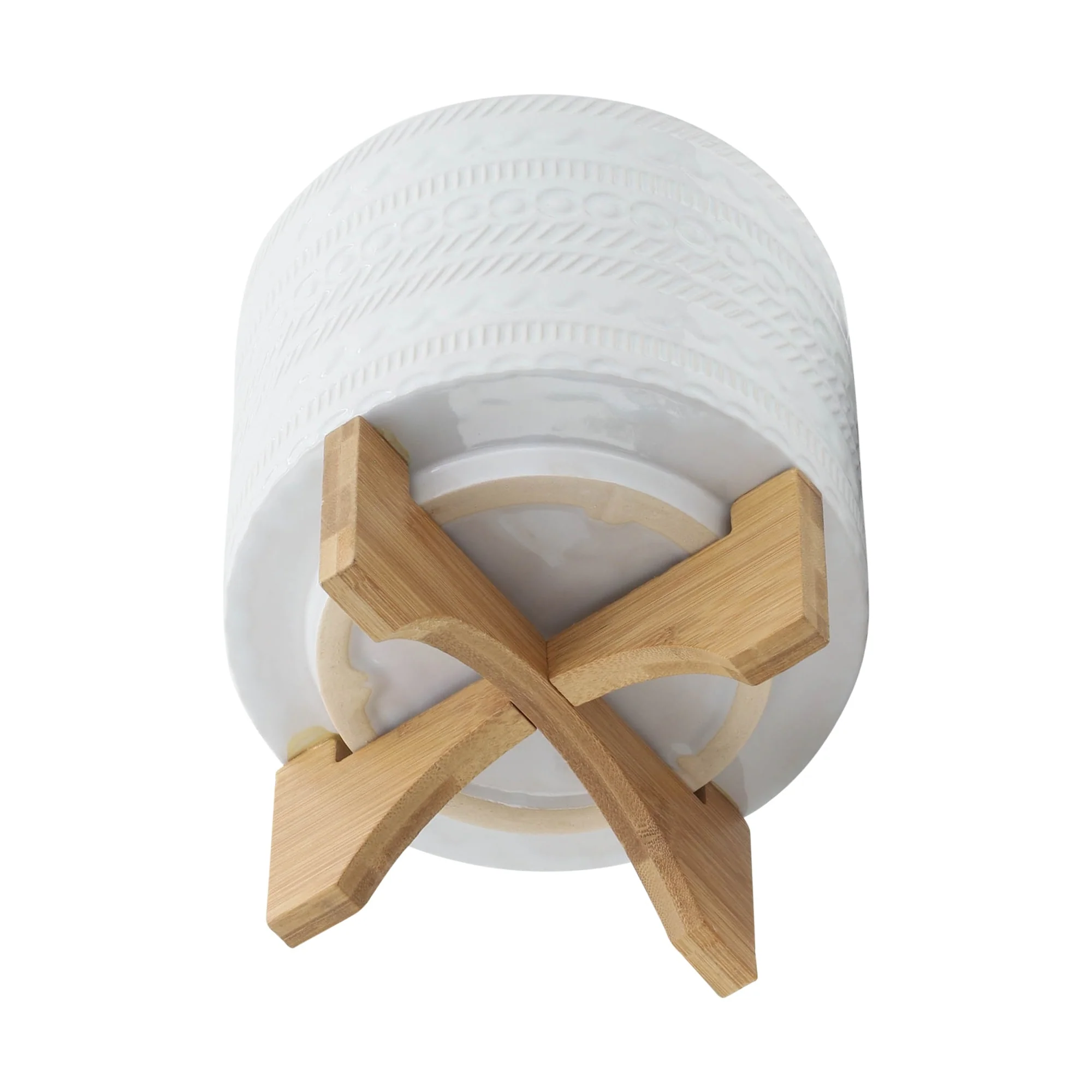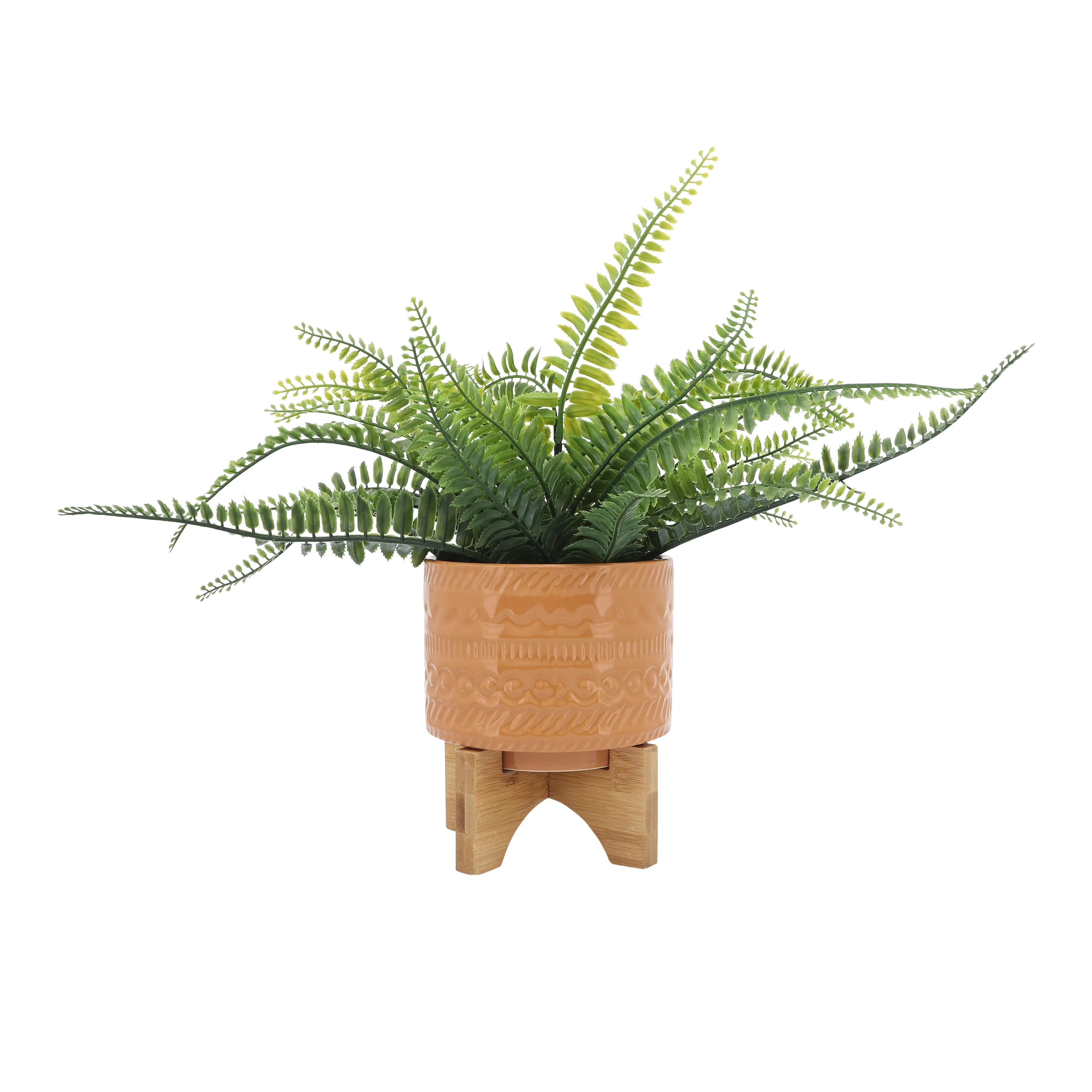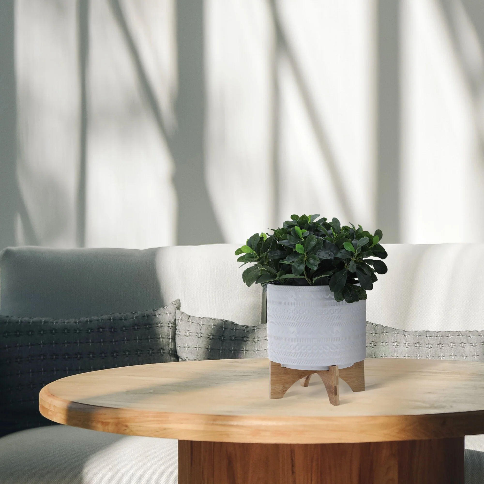 Sagebrook Home Tribal Ceramic Planter Pot with Natural Wood Stand