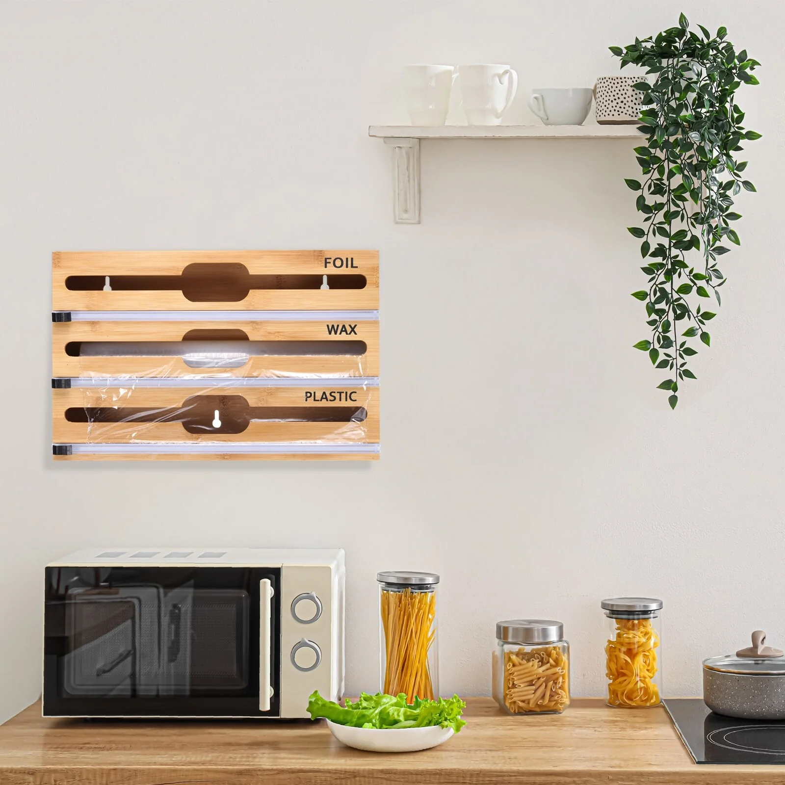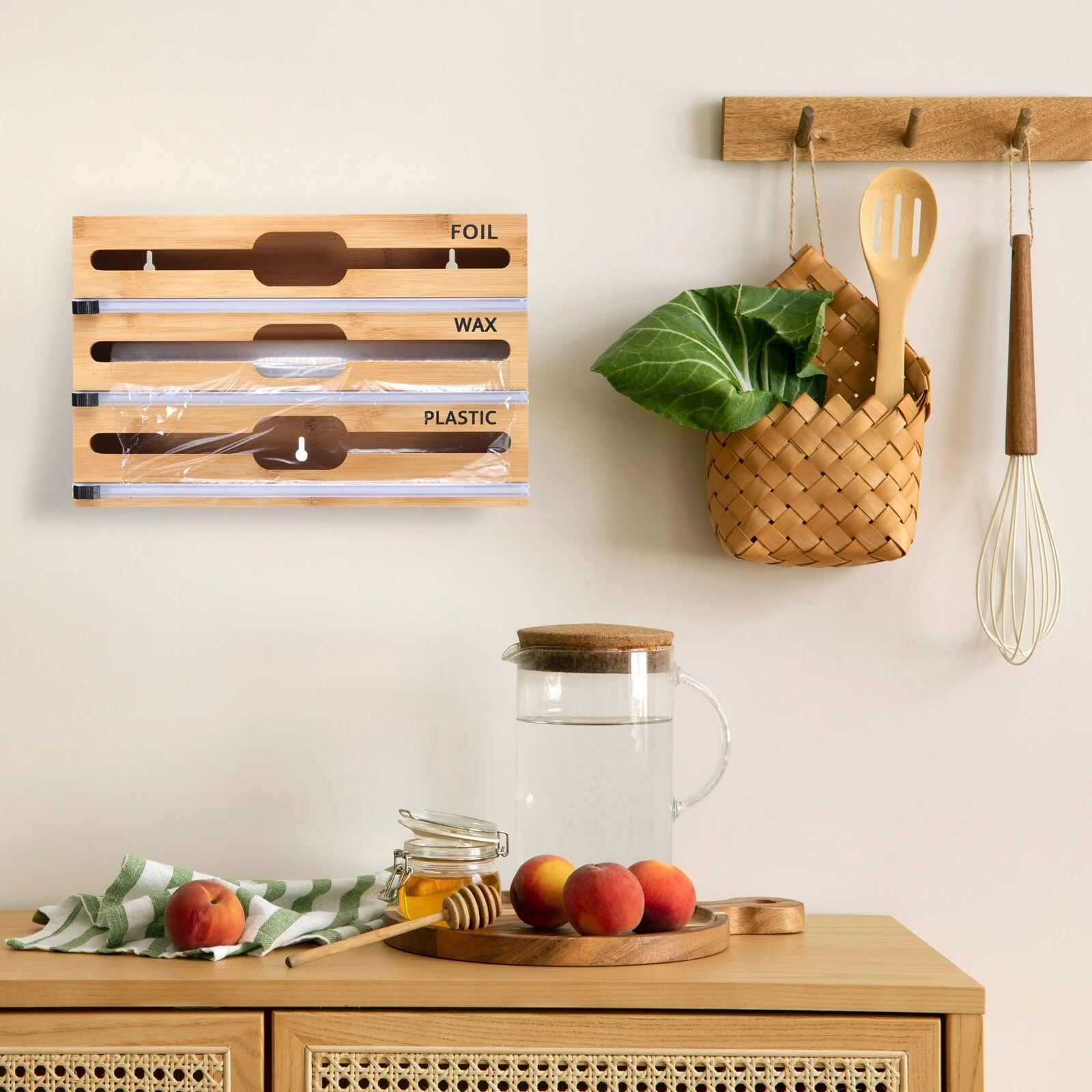 Bamboo 3 in 1 Wrap Organizer with Cutter and Labels - Natural